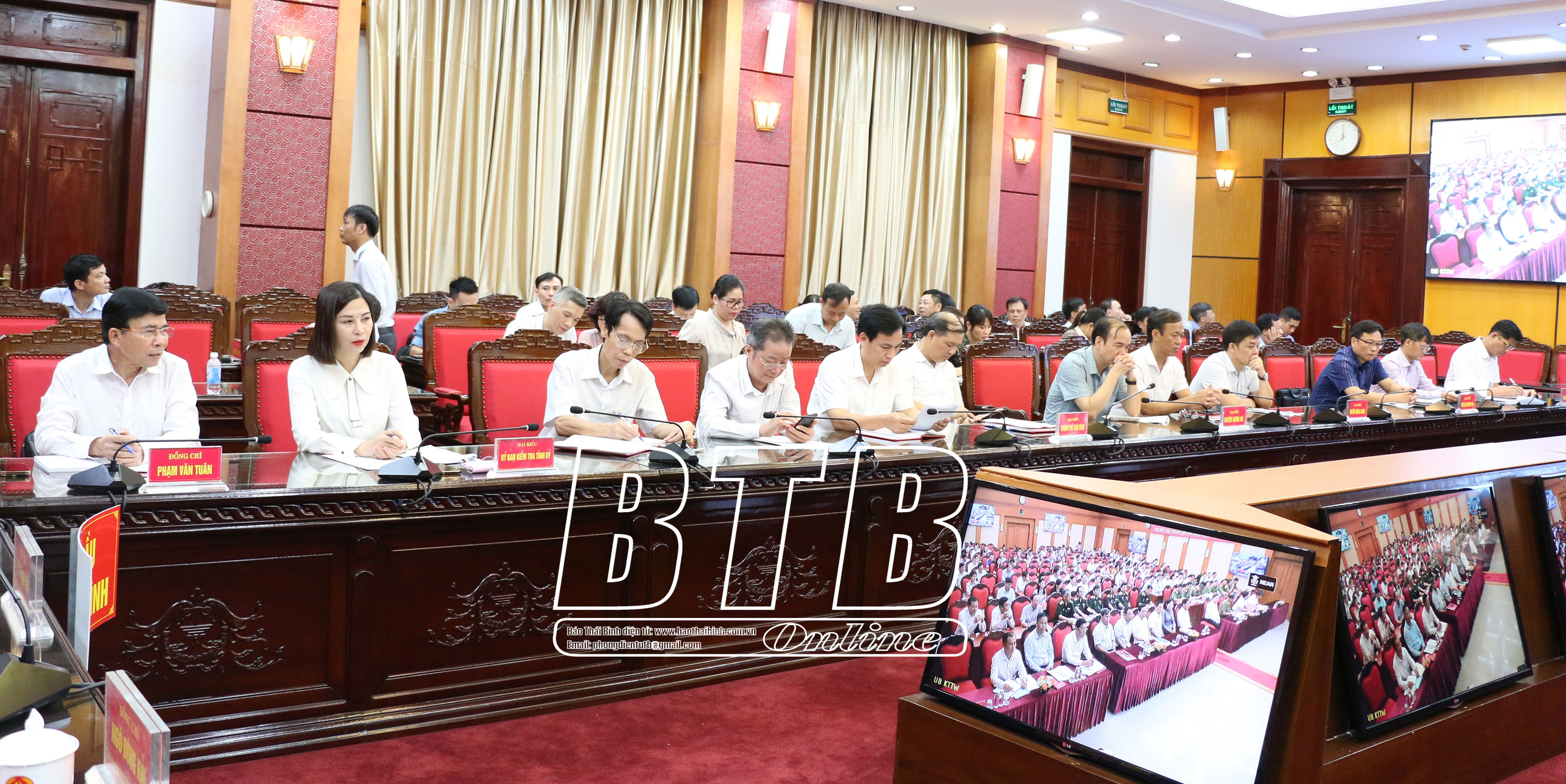 Dự hội nghị tại điểm cầu Thái Bình có các đồng chí: Ngô Đông Hải, Ủy viên Ban Chấp hành Trung ương Đảng, Bí thư Tỉnh ủy; Ngô Thị Kim Hoàn, Ủy viên Ban Thường vụ, Chủ nhiệm UBKT Tỉnh ủy; Phạm Văn Tuân, Ủy viên Ban Thường vụ, Trưởng ban Tổ chức Tỉnh ủy.