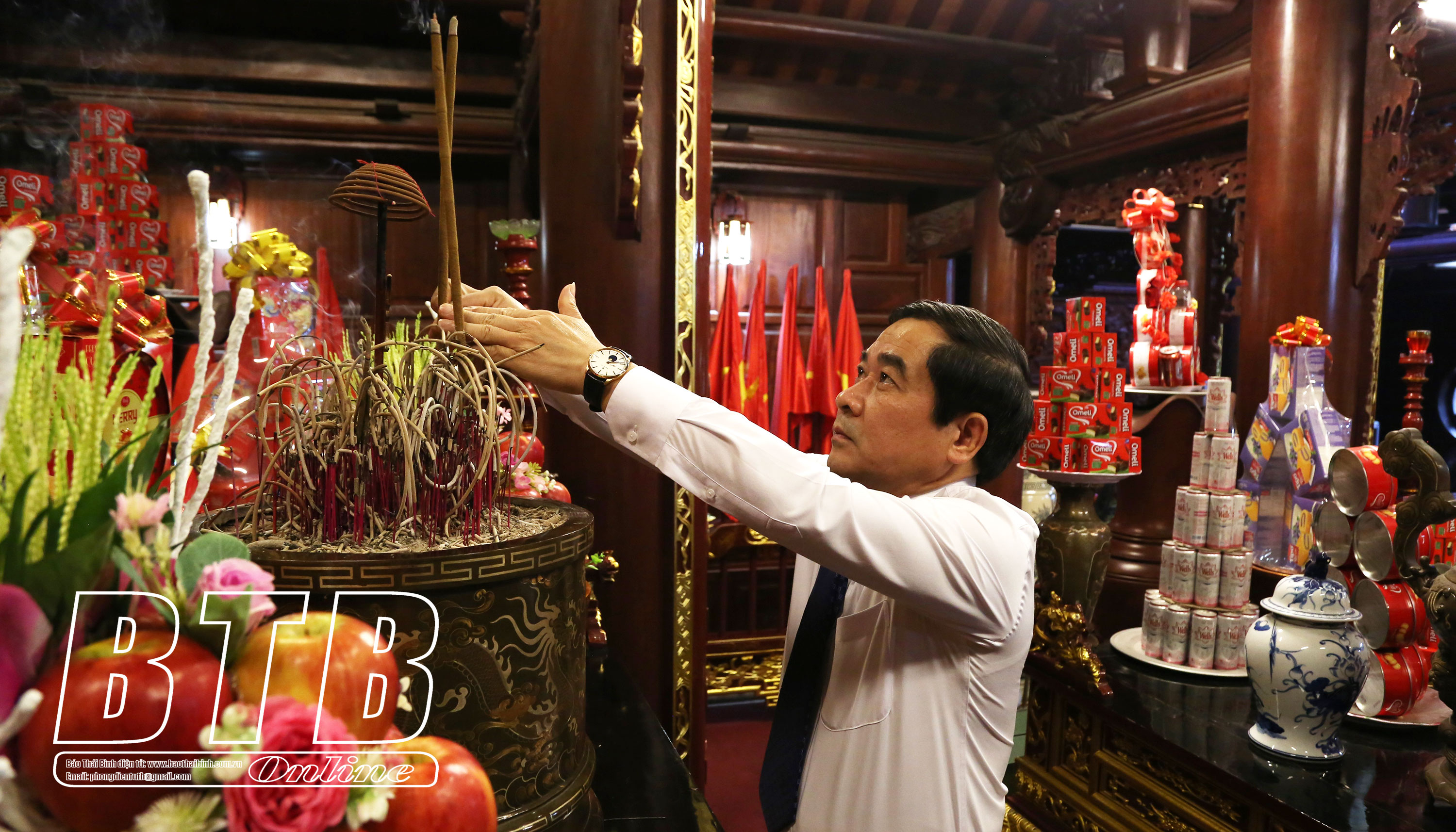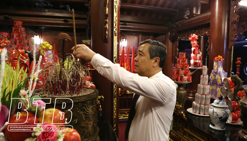 Dự lễ dâng hương có các đồng chí: Ngô Đông Hải, Ủy viên Ban Chấp hành Trung ương Đảng, Bí thư Tỉnh ủy; Nguyễn Tiến Thành, Phó Bí thư thường trực Tỉnh ủy, Chủ tịch HĐND tỉnh; các đồng chí Ủy viên Ban Thường vụ Tỉnh ủy; lãnh đạo HĐND, UBND tỉnh, Ủy ban MTTQ tỉnh; Đoàn đại biểu Quốc hội tỉnh; lãnh đạo các sở, ban, ngành, đoàn thể và thành phố Thái Bình.