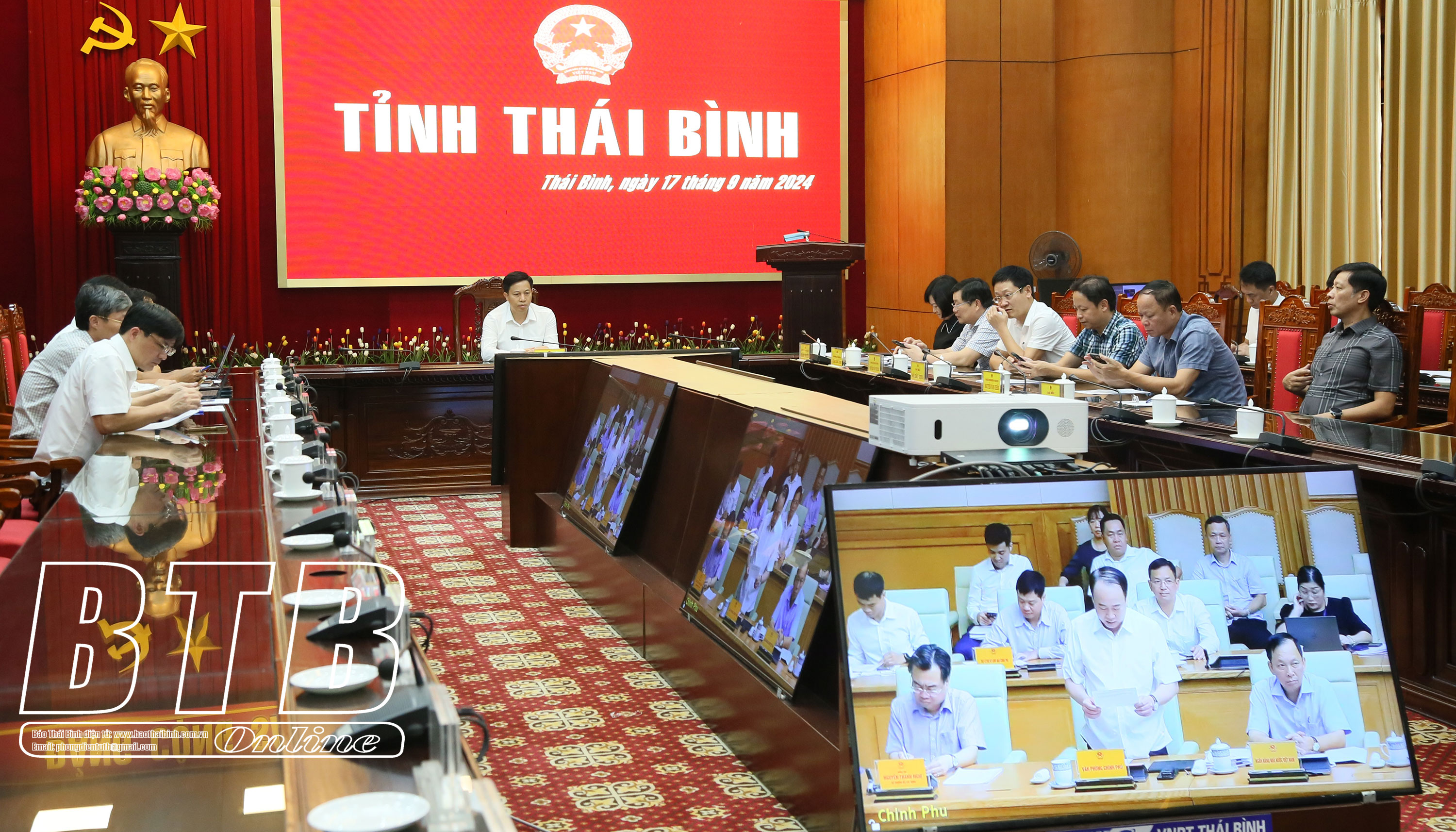 Dự họp tại điểm cầu Thái Bình có các đồng chí: Nguyễn Khắc Thận, Phó Bí thư Tỉnh uỷ, Chủ tịch UBND tỉnh; Lại Văn Hoàn, Tỉnh ủy viên, Phó Chủ tịch UBND tỉnh; đại diện lãnh đạo một số sở, ngành, địa phương.