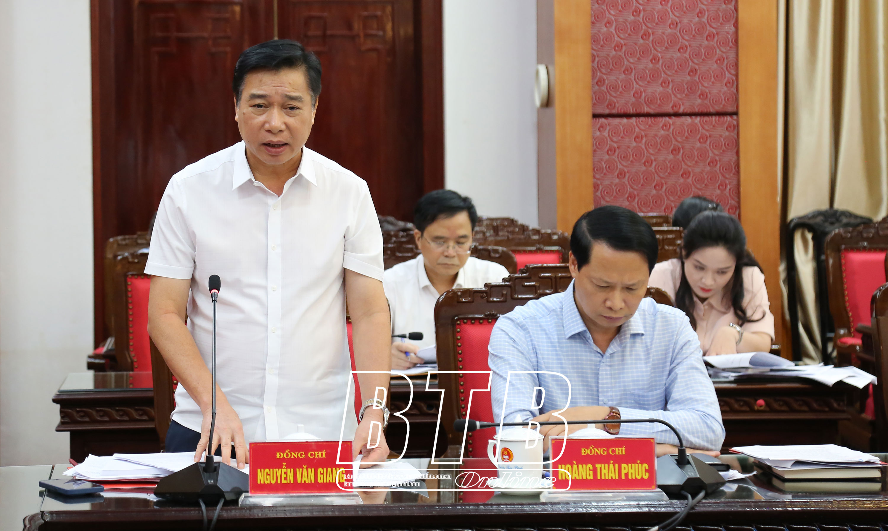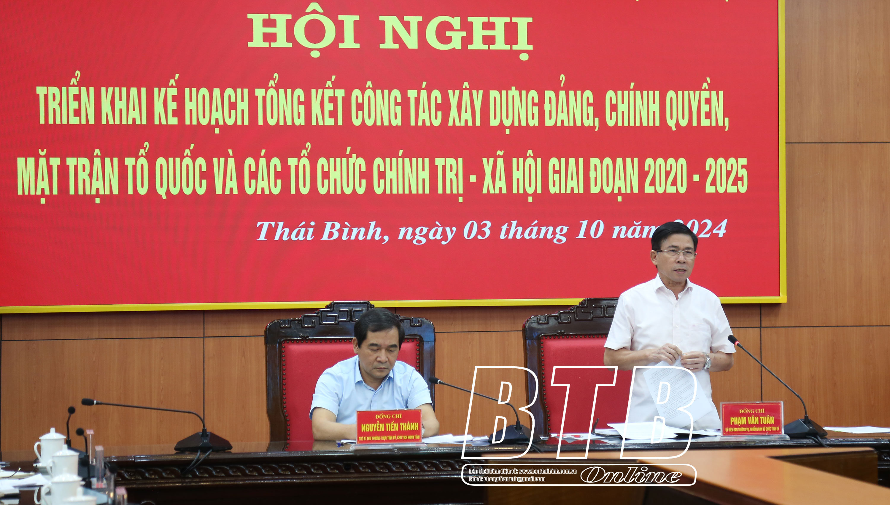 Các đồng chí: Nguyễn Tiến Thành, Phó Bí thư thường trực Tỉnh ủy, Chủ tịch HĐND tỉnh, Trưởng Tiểu ban; Phạm Văn Tuân, Ủy viên Ban Thường vụ, Trưởng ban Tổ chức Tỉnh ủy, Phó Trưởng Tiểu ban chủ trì hội nghị.