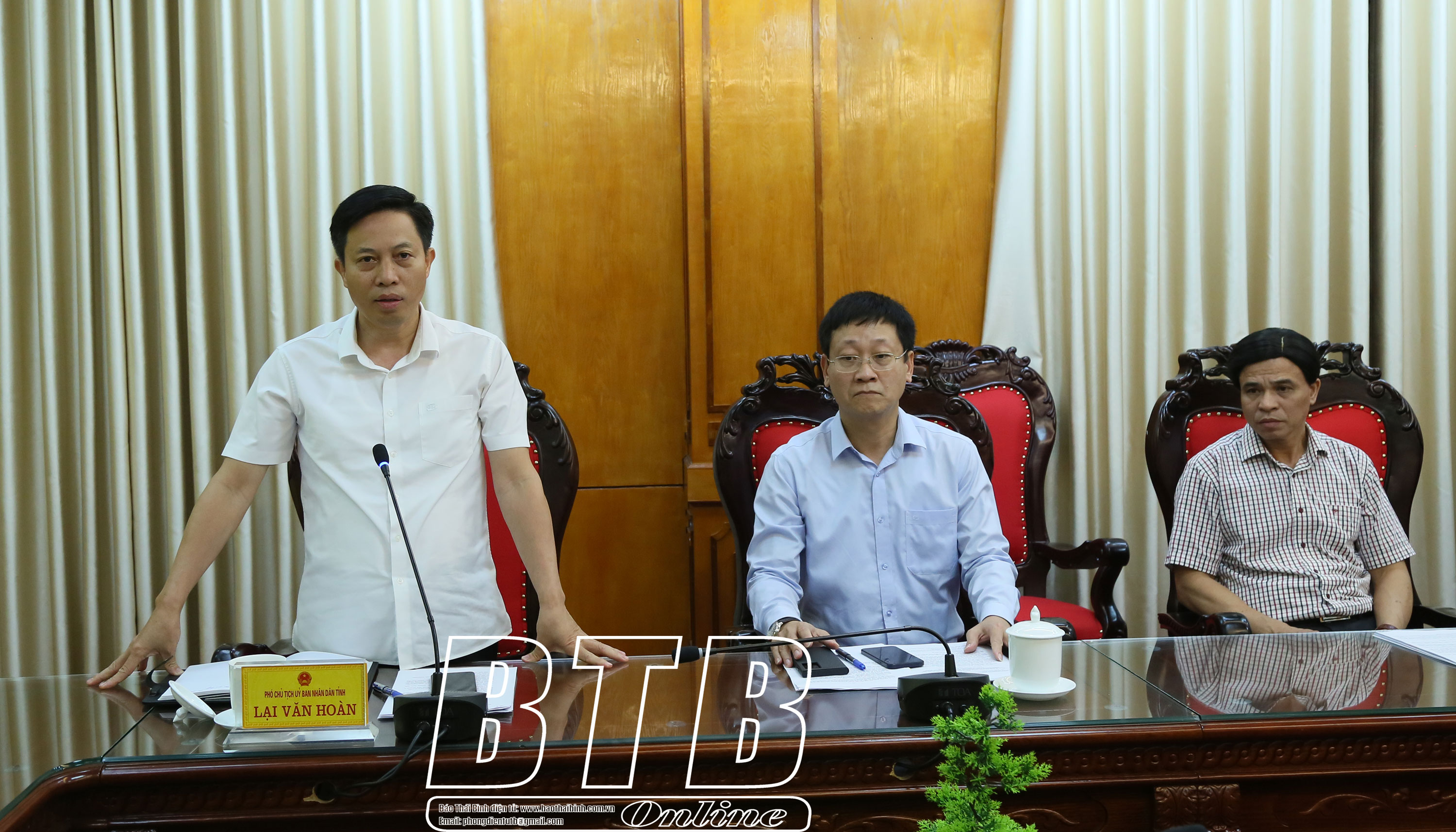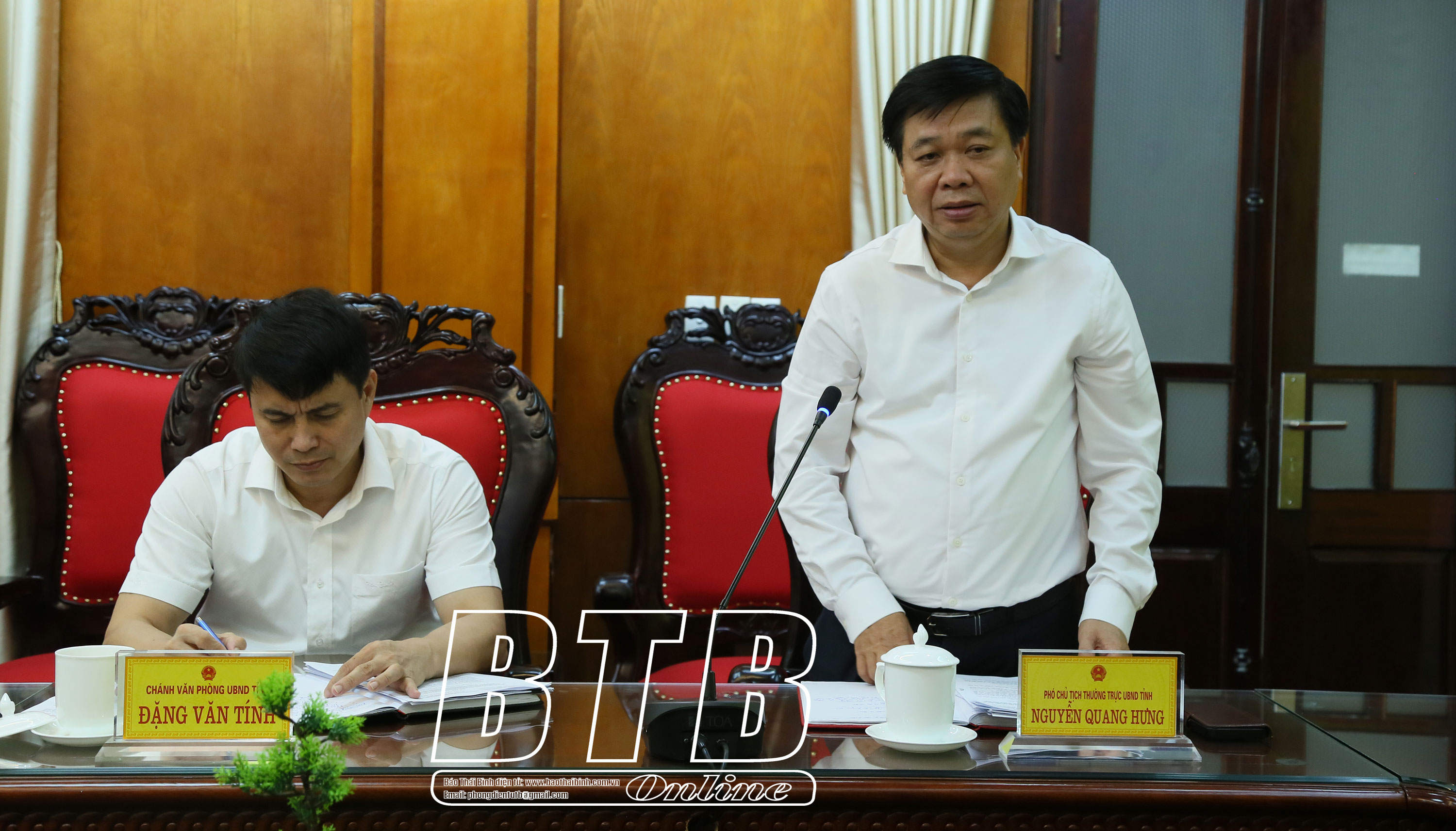 Đồng chí Nguyễn Quang Hưng, Ủy viên Ban Thường vụ Tỉnh ủy, Phó Bí thư Ban Cán sự đảng, Phó Chủ tịch thường trực UBND tỉnh phát biểu tại cuộc họp.Đồng chí Lại Văn Hoàn, Tỉnh ủy viên, Phó Chủ tịch UBND tỉnh phát biểu tại cuộc họp.