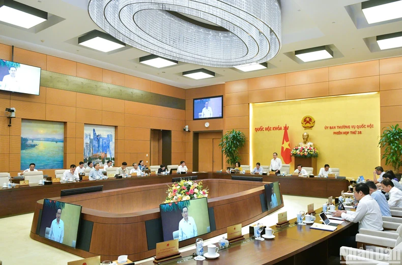 Tiếp tục Phiên họp thứ 38, sáng 14/10, dưới sự chủ trì của Chủ tịch Quốc hội Trần Thanh Mẫn, Ủy ban Thường vụ Quốc hội cho ý kiến về việc chuẩn bị Kỳ họp thứ 8, Quốc hội khóa XV.