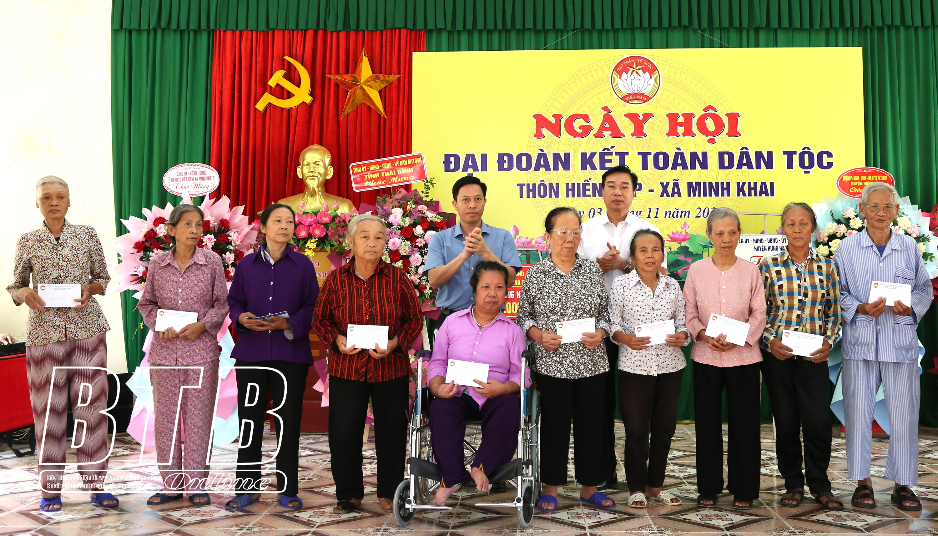 Sáng ngày 3/11, đồng chí Nguyễn Tiến Thành, Phó Bí thư thường trực Tỉnh ủy, Chủ tịch HĐND tỉnh tới chung vui ngày hội đại đoàn kết toàn dân tộc với cán bộ, nhân dân thôn Hiến Nạp, xã Minh Khai (Hưng Hà). Cùng dự có các đồng chí: Nguyễn Văn Giang, Ủy viên Ban Thường vụ, Trưởng ban Dân vận Tỉnh ủy; Lại Văn Hoàn, Tỉnh ủy viên, Phó Chủ tịch UBND tỉnh; lãnh đạo một số sở, ban, ngành của tỉnh và huyện Hưng Hà.