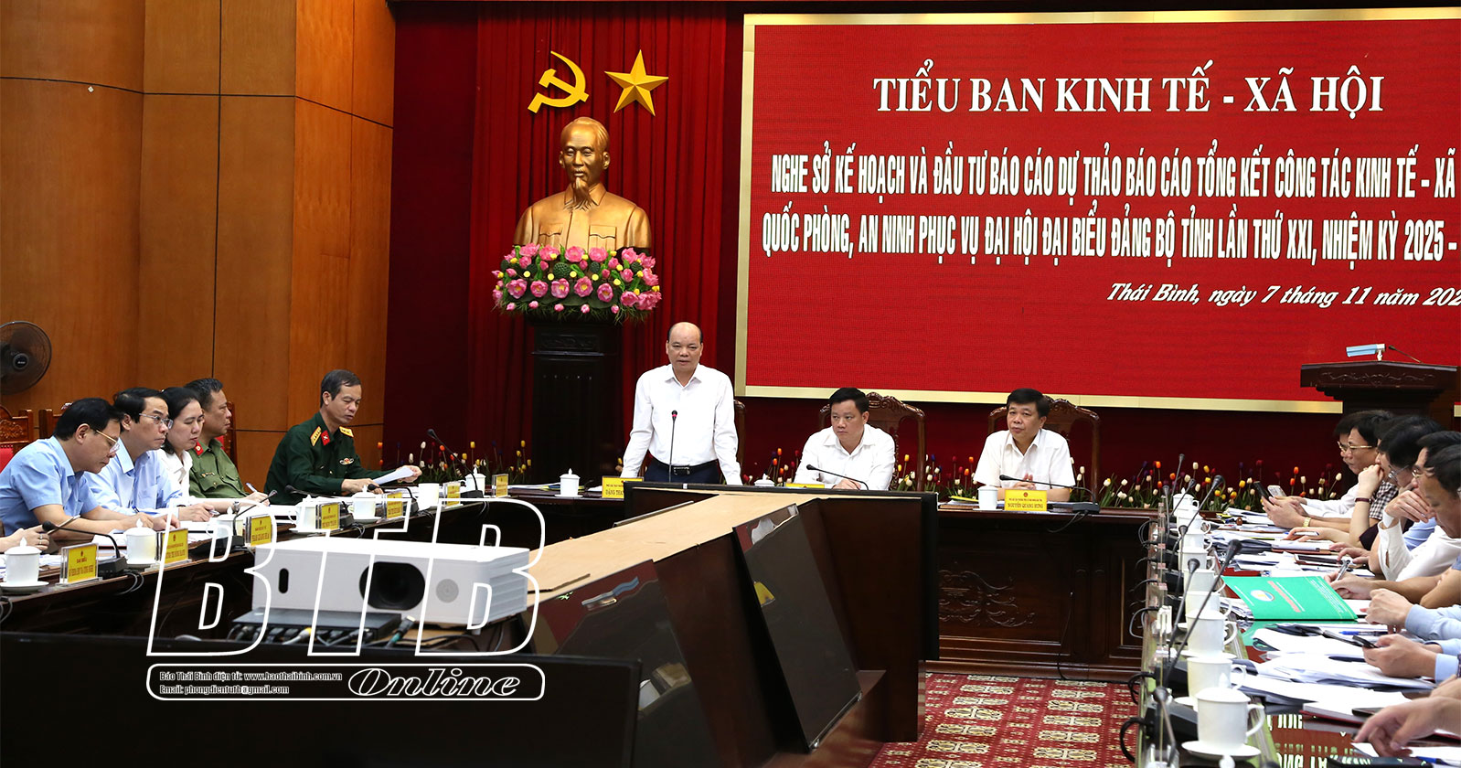 Chiều ngày 7/11, Tiểu ban Tổng kết công tác kinh tế - xã hội, quốc phòng, an ninh phục vụ Đại hội đại biểu Đảng bộ tỉnh lần thứ XXI, nhiệm kỳ 2025 - 2030 (gọi tắt là Tiểu ban Kinh tế - Xã hội) họp nghe và cho ý kiến vào dự thảo Báo cáo tổng kết công tác kinh tế - xã hội, quốc phòng, an ninh phục vụ Đại hội đại biểu Đảng bộ tỉnh lần thứ XXI, nhiệm kỳ 2025 - 2030. Đồng chí Nguyễn Khắc Thận, Phó Bí thư Tỉnh ủy, Chủ tịch UBND tỉnh, Trưởng Tiểu ban chủ trì cuộc họp. Dự họp có các đồng chí Ủy viên Ban Thường vụ Tỉnh ủy; lãnh đạo HĐND, UBND tỉnh, các thành viên của Tiểu ban.