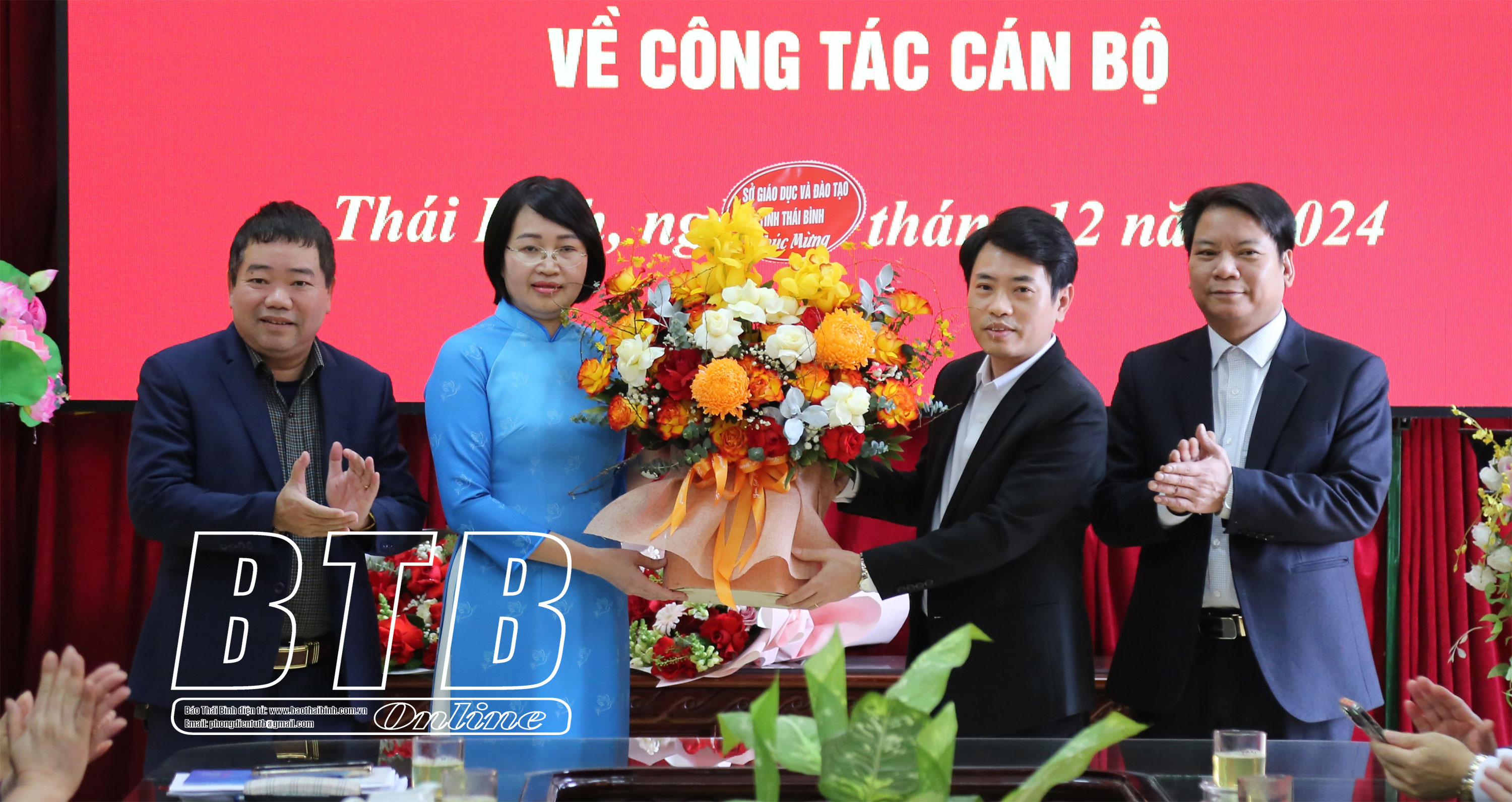 Lãnh đạo Sở Giáo dục và Đào tạo tặng hoa đồng chí Trần Thị Bích Vân.