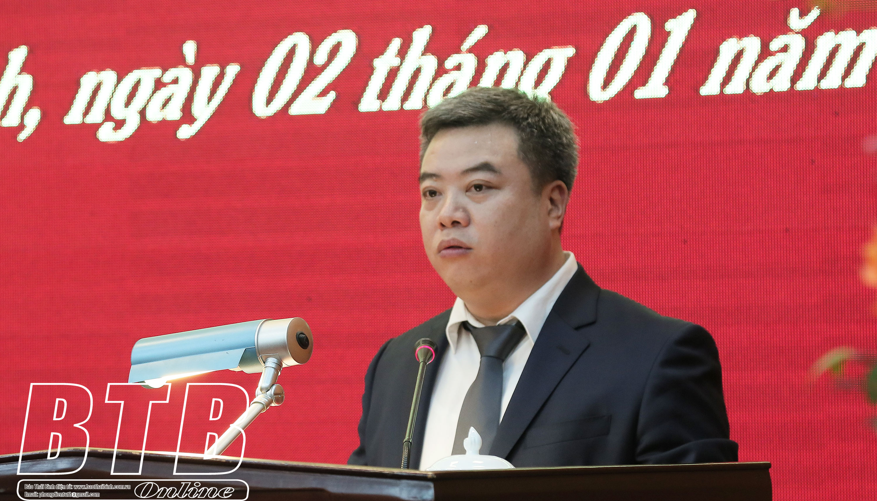 Tặng hoa chúc mừng và phát biểu tại hội nghị, đồng chí Lại Văn Hoàn, Tỉnh ủy viên, Phó Chủ tịch UBND tỉnh chúc mừng đồng chí Phạm Chí Công được bổ nhiệm vào vị trí công tác mới.