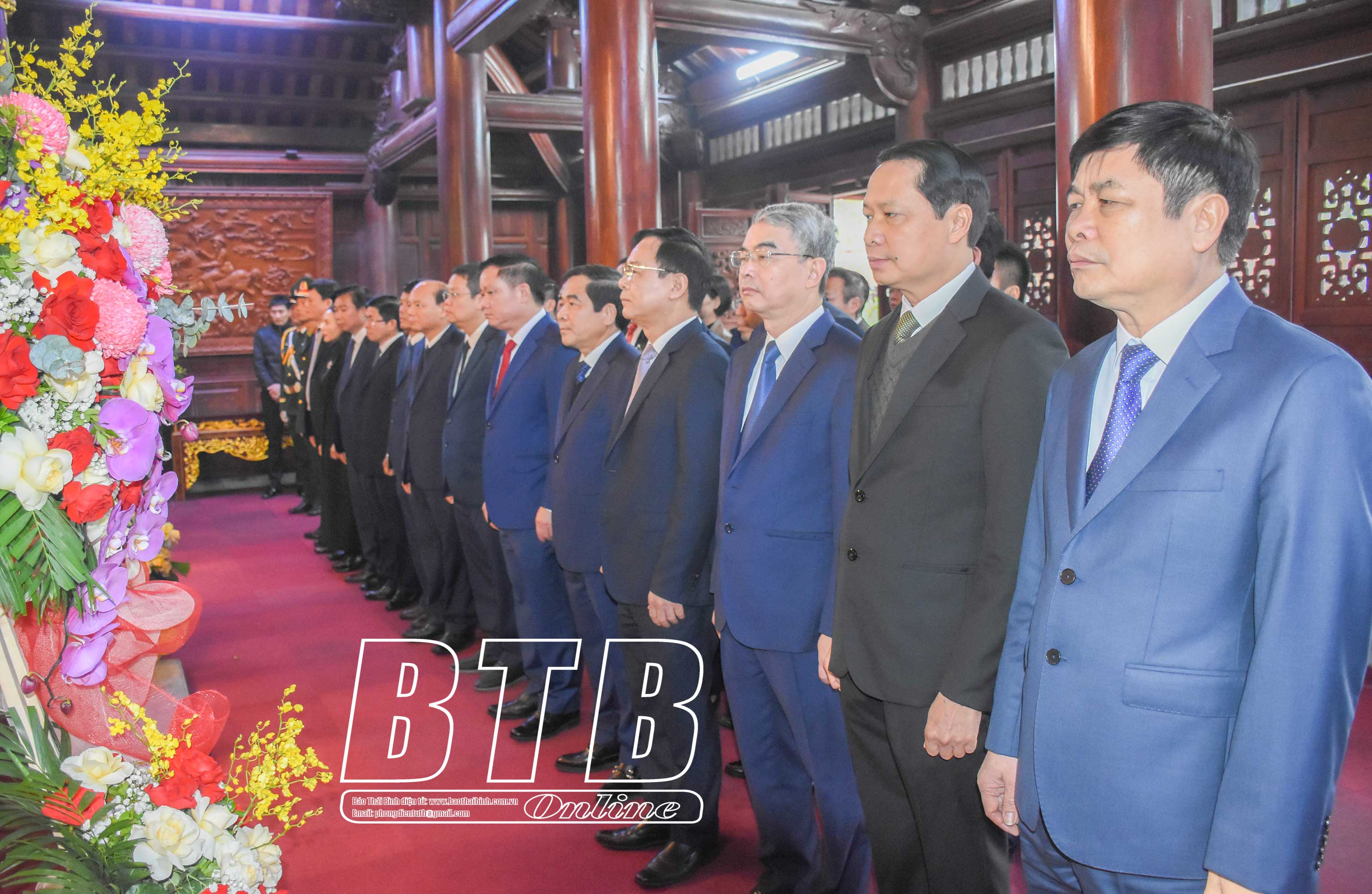 Các đồng chí lãnh đạo tỉnh và đại biểu dâng hương tưởng niệm Chủ tịch Hồ Chí Minh tại Đền thờ Bác Hồ (phường Hoàng Diệu, thành phố Thái Bình).