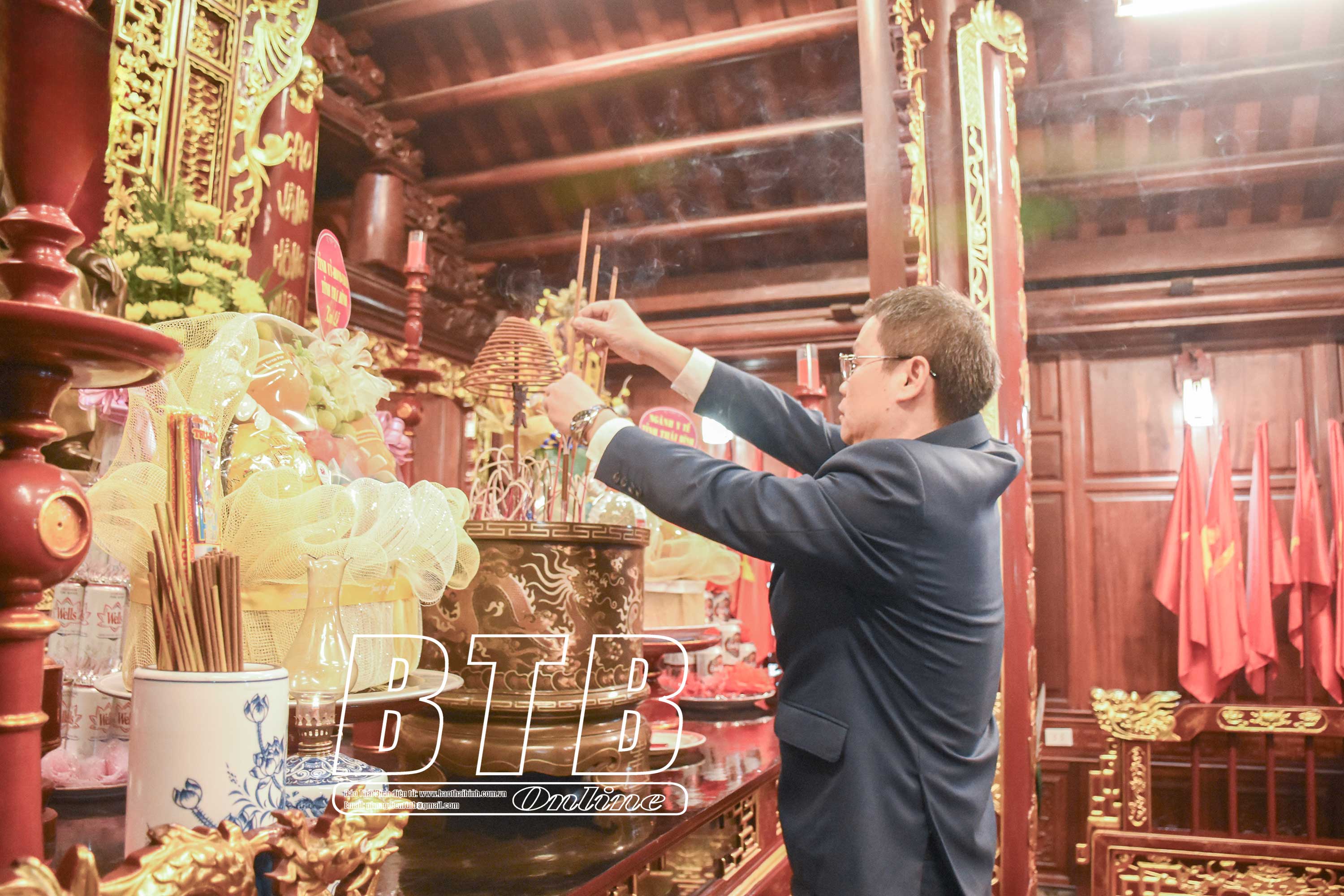 Dự lễ dâng hương có các đồng chí: Nguyễn Khắc Thận, Bí thư Tỉnh ủy; Nguyễn Tiến Thành, Phó Bí thư thường trực Tỉnh ủy, Chủ tịch HĐND tỉnh; Nguyễn Mạnh Hùng, Phó Bí thư Tỉnh ủy, Chủ tịch UBND tỉnh; các đồng chí Ủy viên Ban Thường vụ Tỉnh ủy; lãnh đạo HĐND, UBND tỉnh.