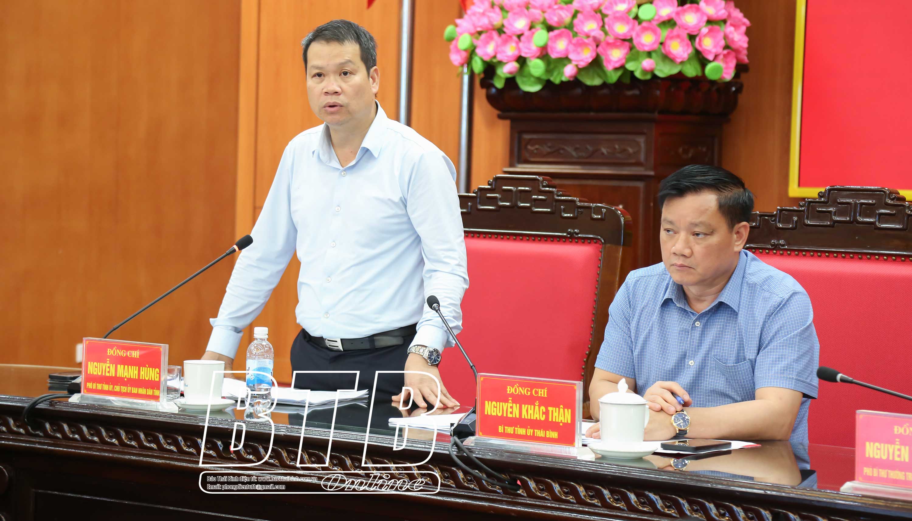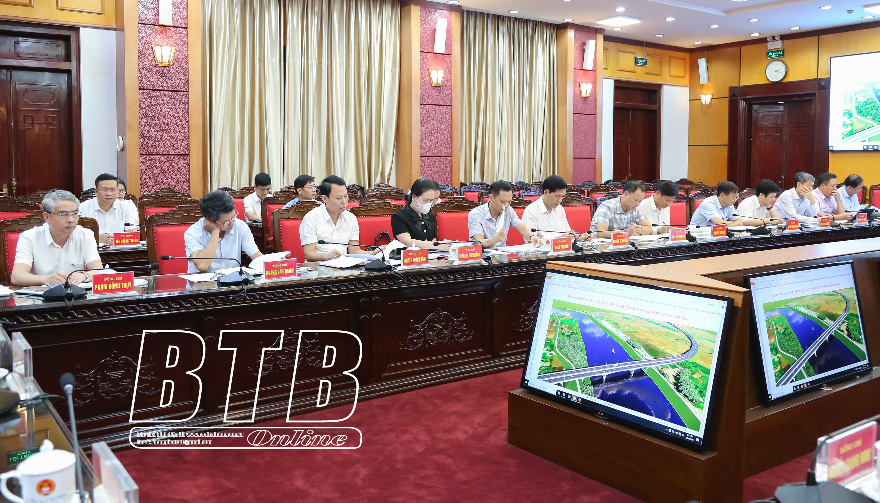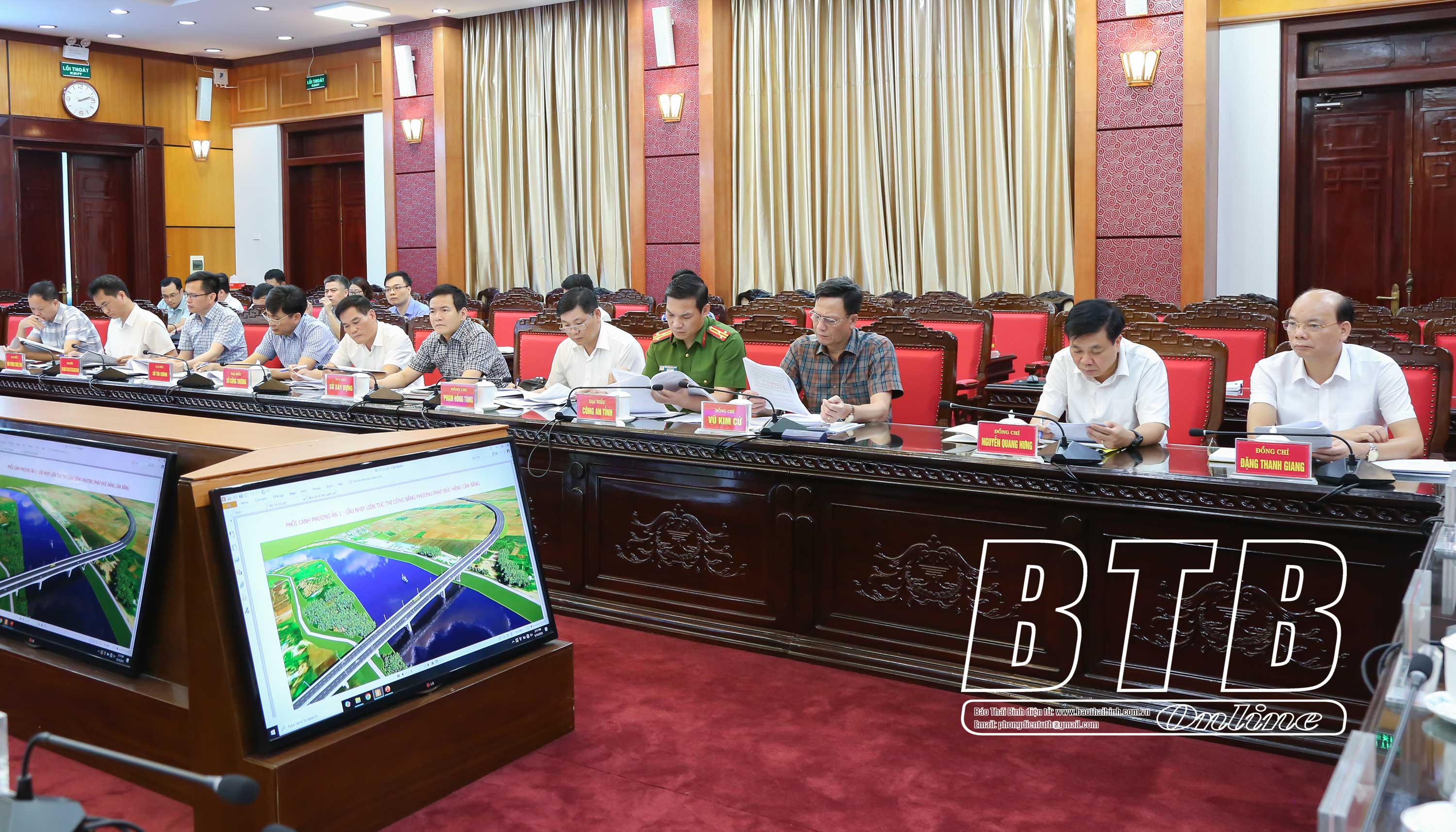 Tại hội nghị, các đại biểu được nghe Tổ giúp việc BCĐ tỉnh báo cáo tiến độ của các dự án trọng điểm: Dự án phát triển nhà ở khu dân cư tại xã Đông Hòa; dự án phát triển nhà ở đô thị mới tại xã Tân Bình và phường Tiền Phong (thành phố Thái Bình); dự án sân gôn Cồn Vành, tại xã Nam Phú (Tiền Hải); dự án khu đô thị trung tâm ven sông Trà Lý thuộc phường Lê Hồng Phong và phường Bồ Xuyên (thành phố Thái Bình); dự án Nhà máy nhiệt điện LNG Thái Bình (Thái Thụy); dự án đầu tư xây dựng tuyến đường từ thành phố Thái Bình đi huyện Hưng Hà kết nối với tỉnh Hưng Yên; dự án phát triển nhà ở khu đô thị mới Kiến Giang (thành phố Thái Bình); dự án đầu tư xây dựng và kinh doanh kết cấu hạ tầng khu công nghiệp VSIP Thái Bình; dự án đầu tư xây dựng sân gôn huyện Quỳnh Phụ; dự án đầu tư xây dựng tuyến đường từ thành phố Thái Bình đi cầu Nghìn; dự án khu công nghiệp dược sinh học tại huyện Quỳnh Phụ; dự án tuyến đường cao tốc CT.08; dự án khu đô thị du lịch nghỉ dưỡng sinh thái Cồn Vành.