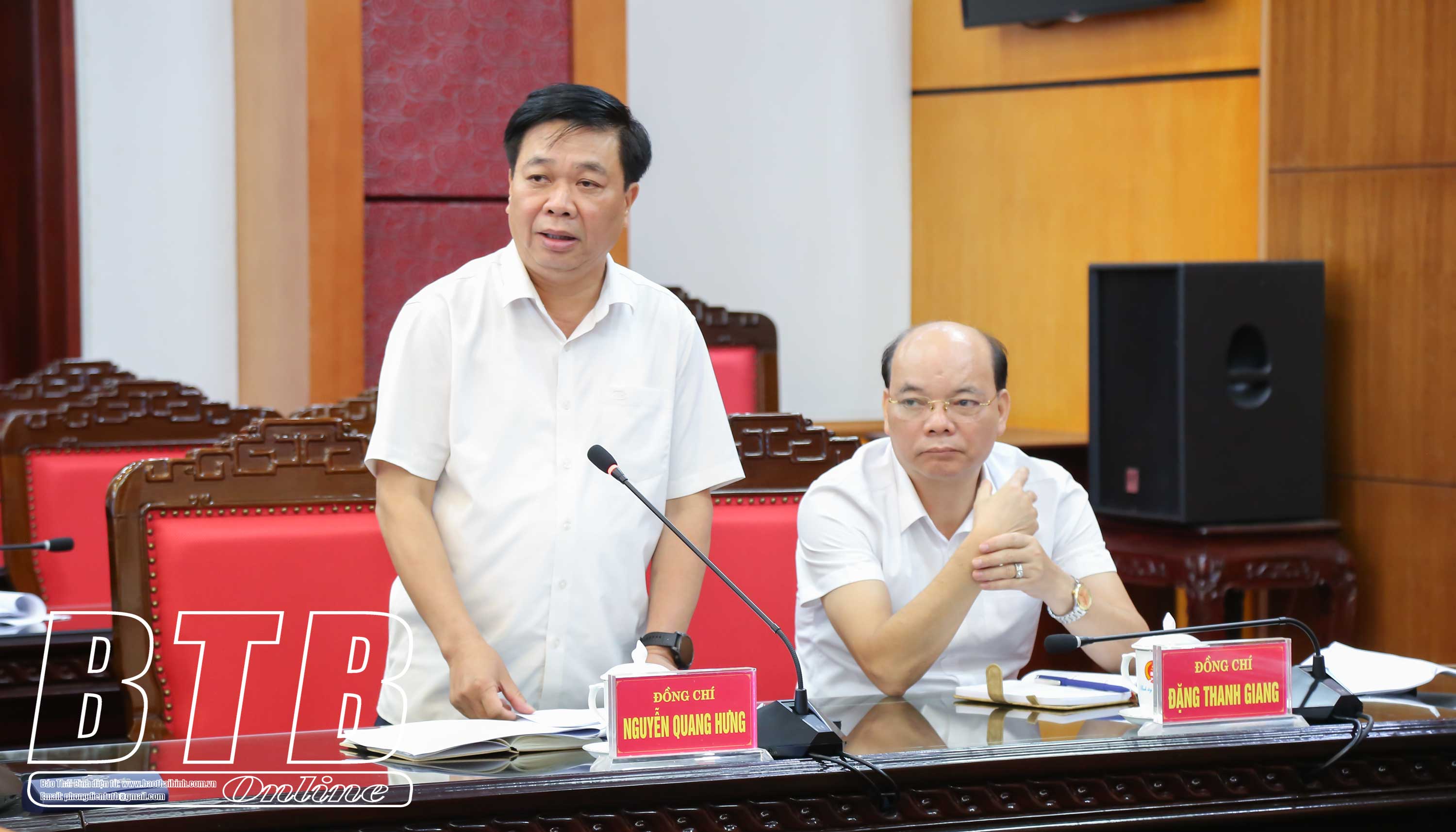 Đồng chí Nguyễn Quang Hưng, Ủy viên Ban Thường vụ Tỉnh ủy, Phó Chủ tịch thường trực UBND tỉnh phát biểu tại hội nghị.