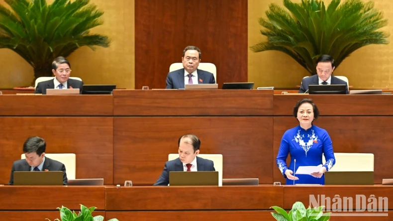 Bộ trưởng Nội vụ Phạm Thị Thanh Trà phát biểu giải trình, làm rõ một số vấn đề đại biểu Quốc hội nêu. (Ảnh: BÙI GIANG).