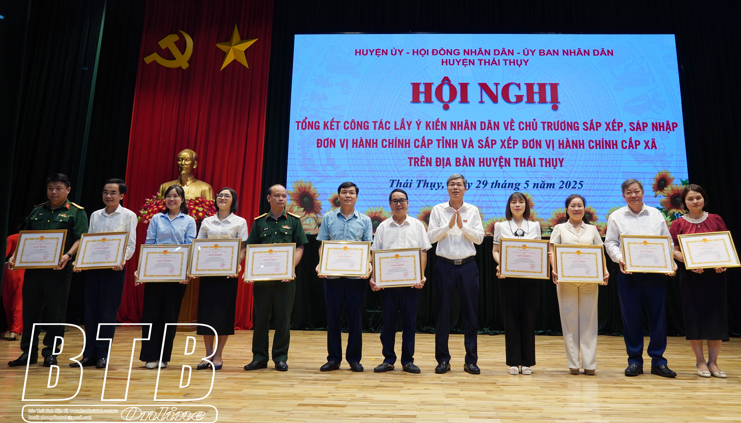 Thực hiện, công tác lấy ý kiến của nhân dân về sắp xếp ĐVHC cấp tỉnh, cấp xã, huyện Thái Thụy có 80.828 cử tri đại diện hộ gia đình tham gia đóng góp ý kiến về đề án sắp xếp ĐVHC, đạt tỷ lệ 99,91%, trong đó 98,8% cử tri đồng ý với việc hợp nhất ĐVHC cấp tỉnh ; 99,2% đồng ý với việc sắp xếp ĐVHC cấp xã. Các hình thức lấy ý kiến bảo đảm dân chủ, công khai, minh bạch, đúng quy trình, quy định của pháp luật. Sau sắp xếp, huyện Thái Thụy thành lập 11 ĐVHC cấp xã mới, giảm 25 ĐVHC cấp xã; tạo đột phá trong quy hoạch, không gian mới để phát triển kinh tế - xã hội, bảo đảm quốc phòng an ninh.