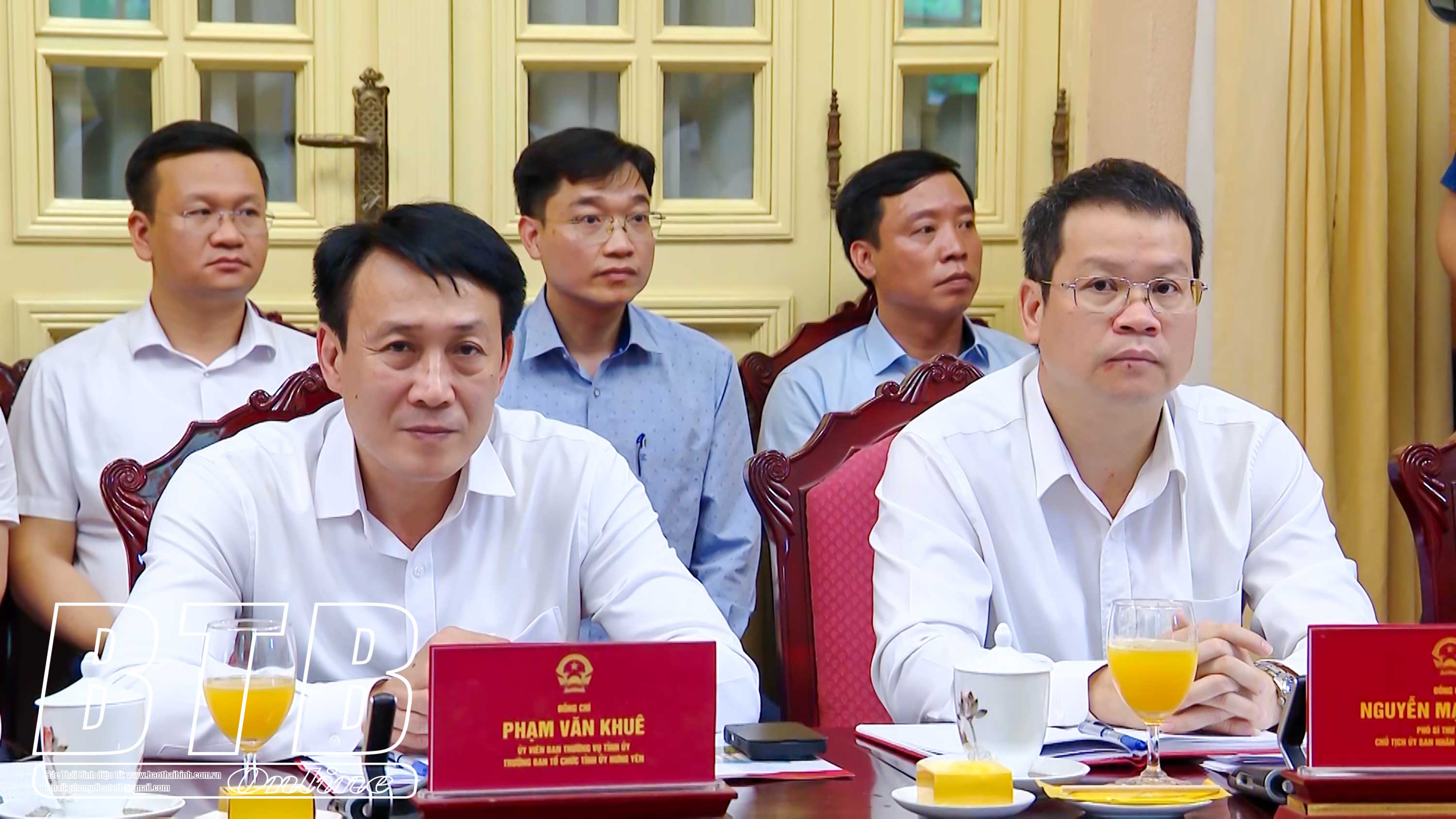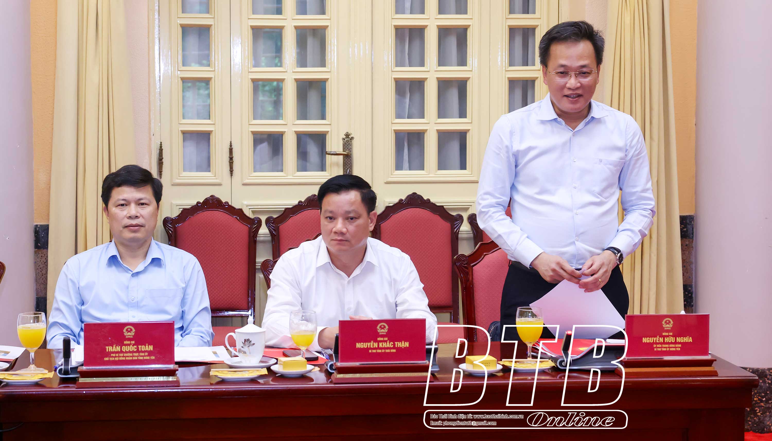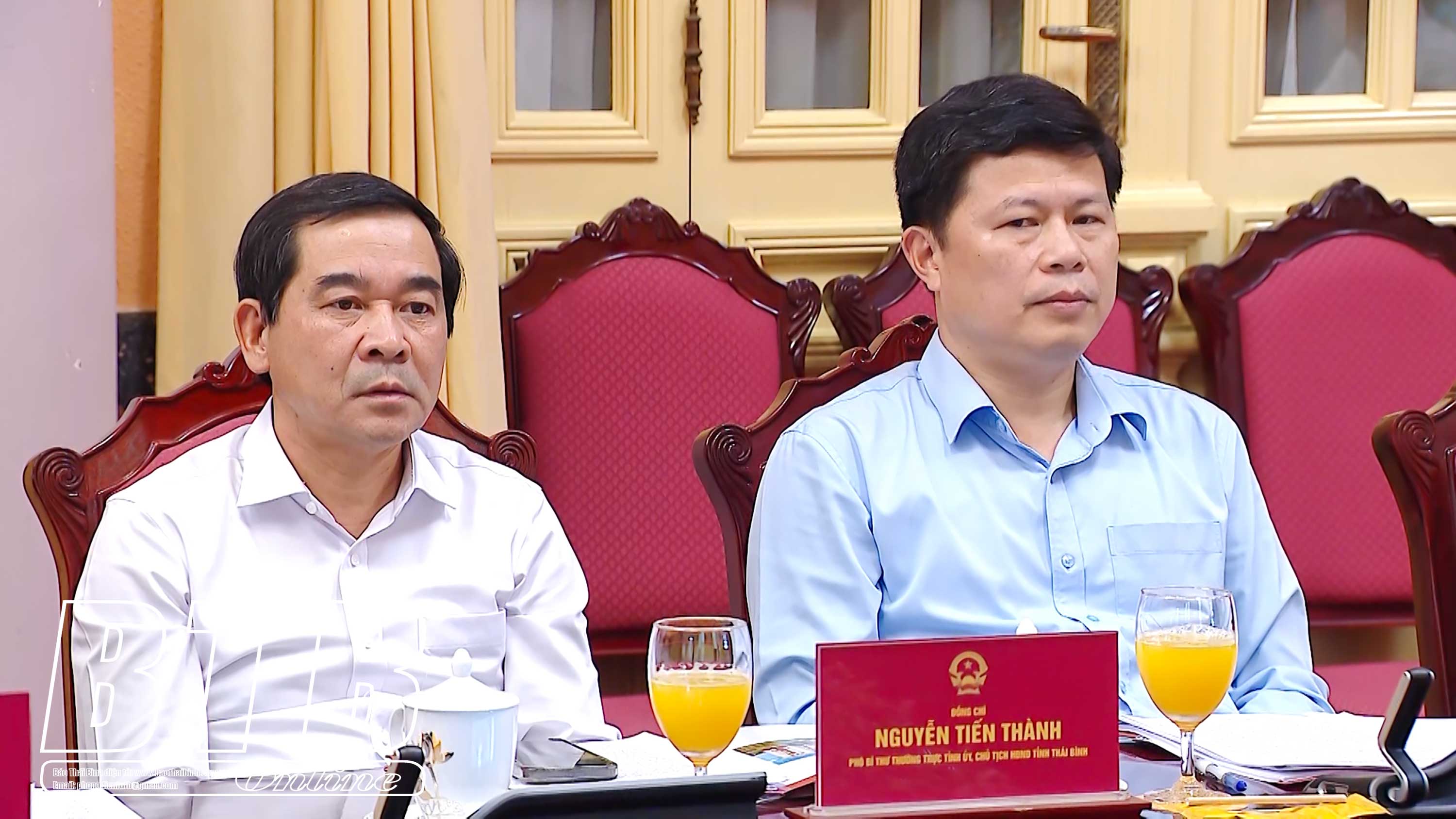 Đồng chí Nguyễn Tiến Thành, Phó Bí thư thường trực Tỉnh ủy, Chủ tịch HĐND tỉnh Thái Bình (người ngồi bên trái) dự buổi làm việc.