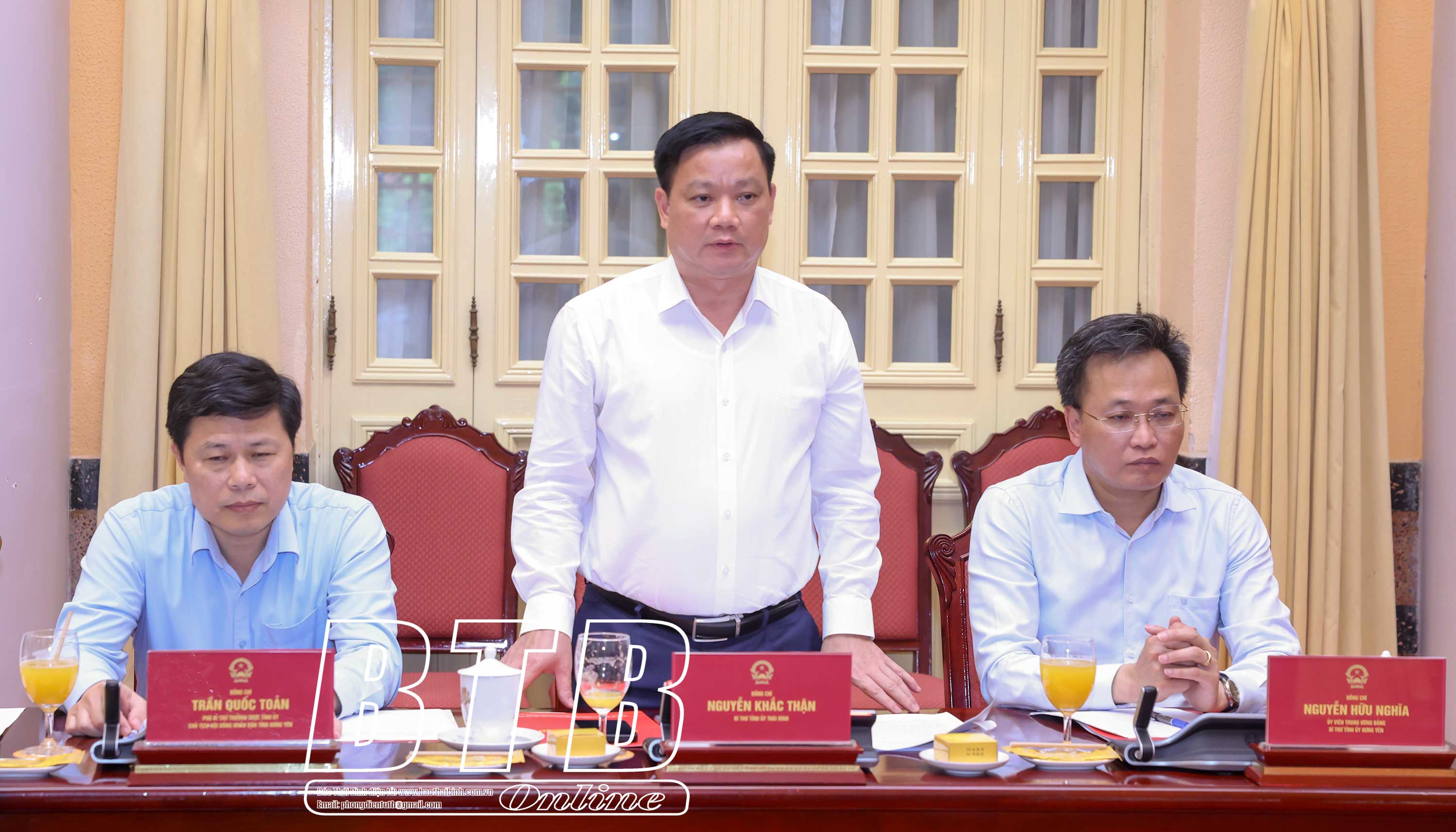 Đồng chí Nguyễn Khắc Thận, Bí thư Tỉnh ủy Thái Bình phát biểu tại buổi làm việc.