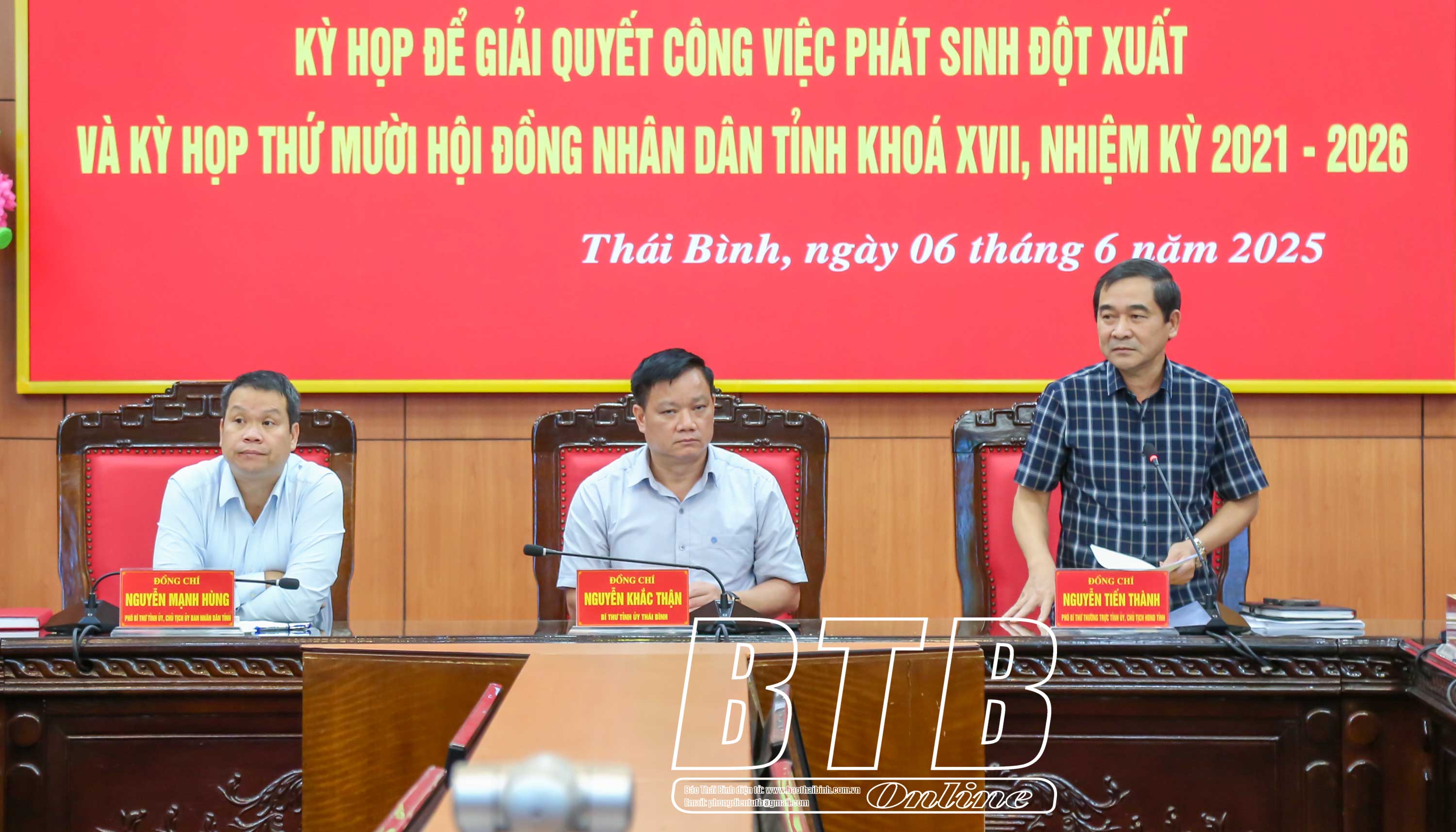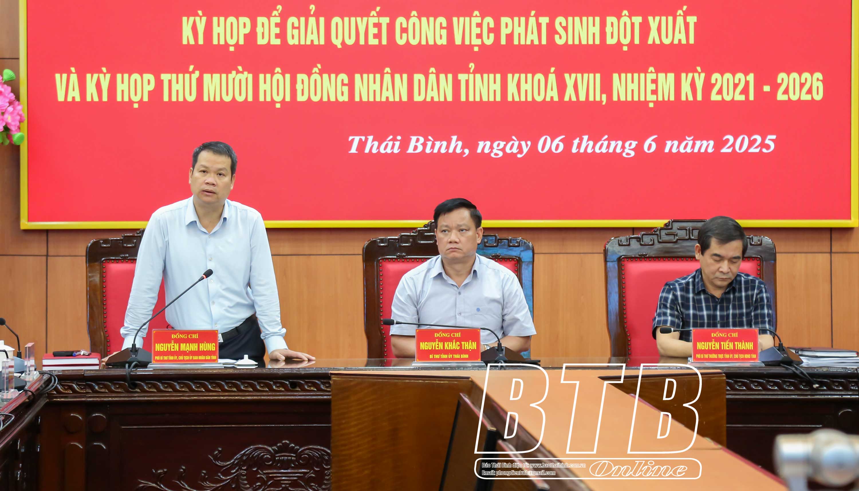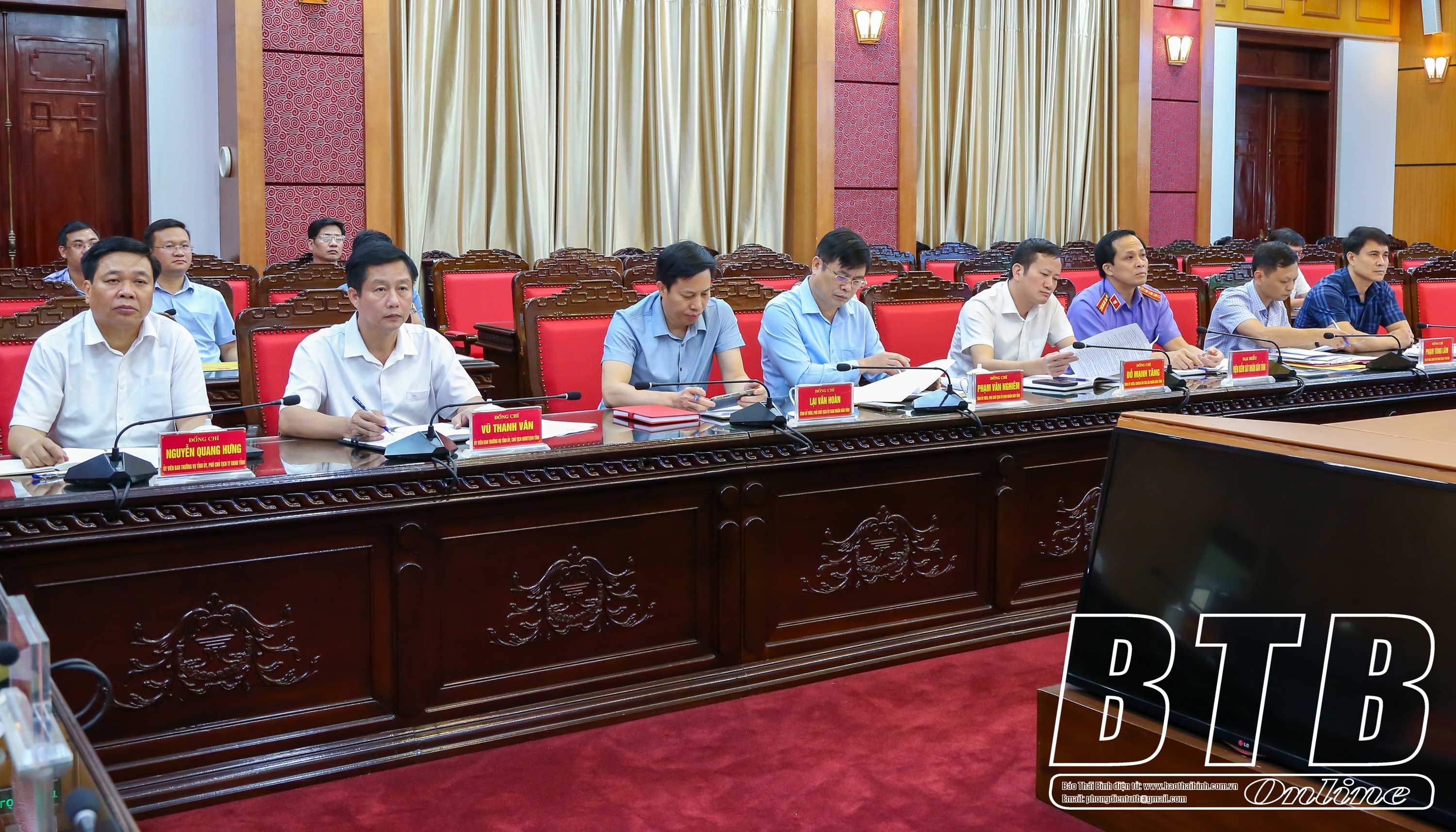Các đồng chí: Nguyễn Khắc Thận, Bí thư Tỉnh ủy; Nguyễn Tiến Thành, Phó Bí thư thường trực Tỉnh ủy, Chủ tịch HĐND tỉnh; Nguyễn Mạnh Hùng, Phó Bí thư Tỉnh ủy, Chủ tịch UBND tỉnh chủ trì hội nghị. Cùng dự có các đồng chí Ủy viên Ban Thường vụ Tỉnh ủy; lãnh đạo HĐND, UBND tỉnh.