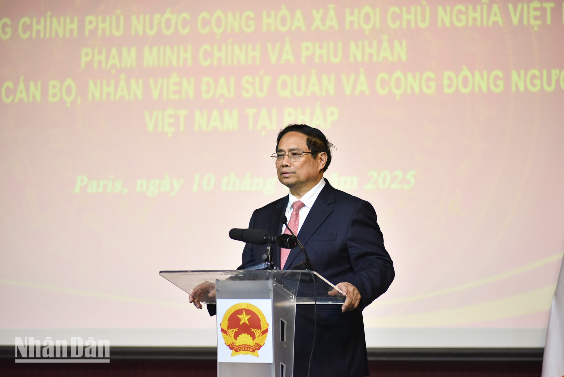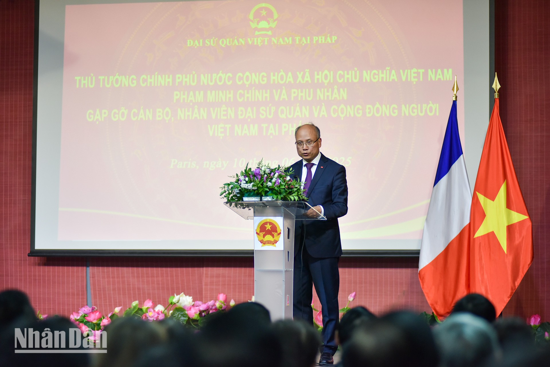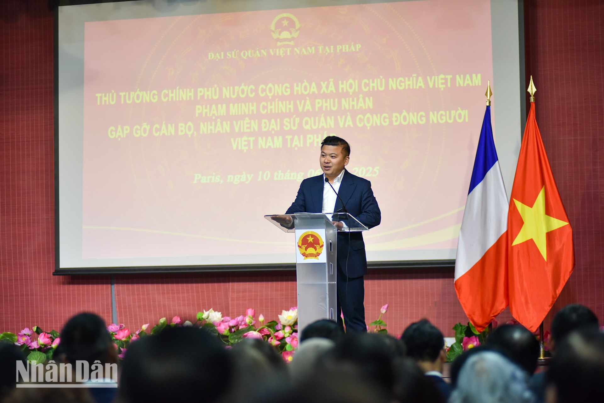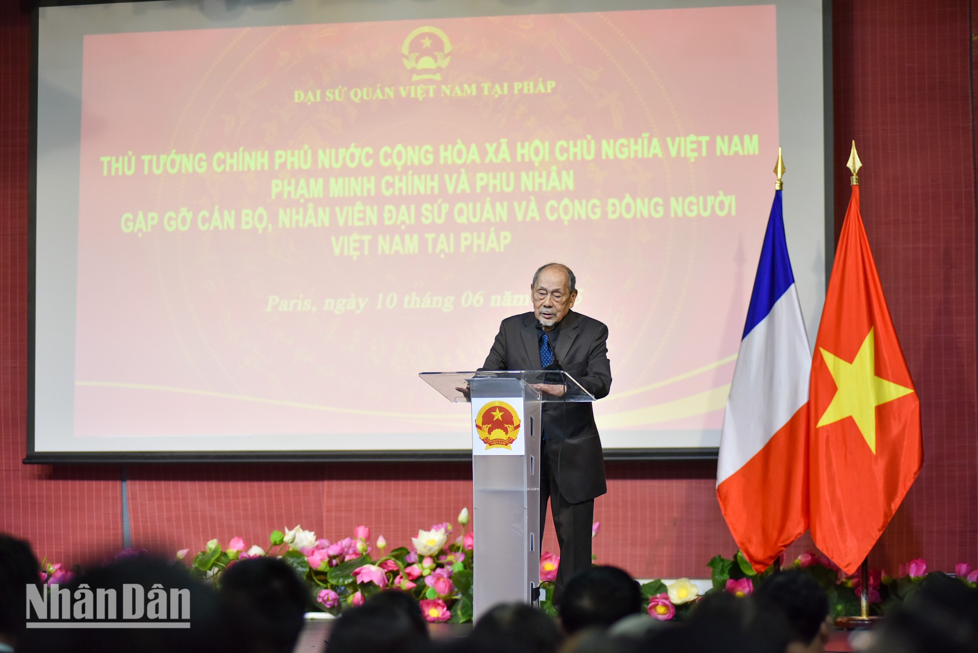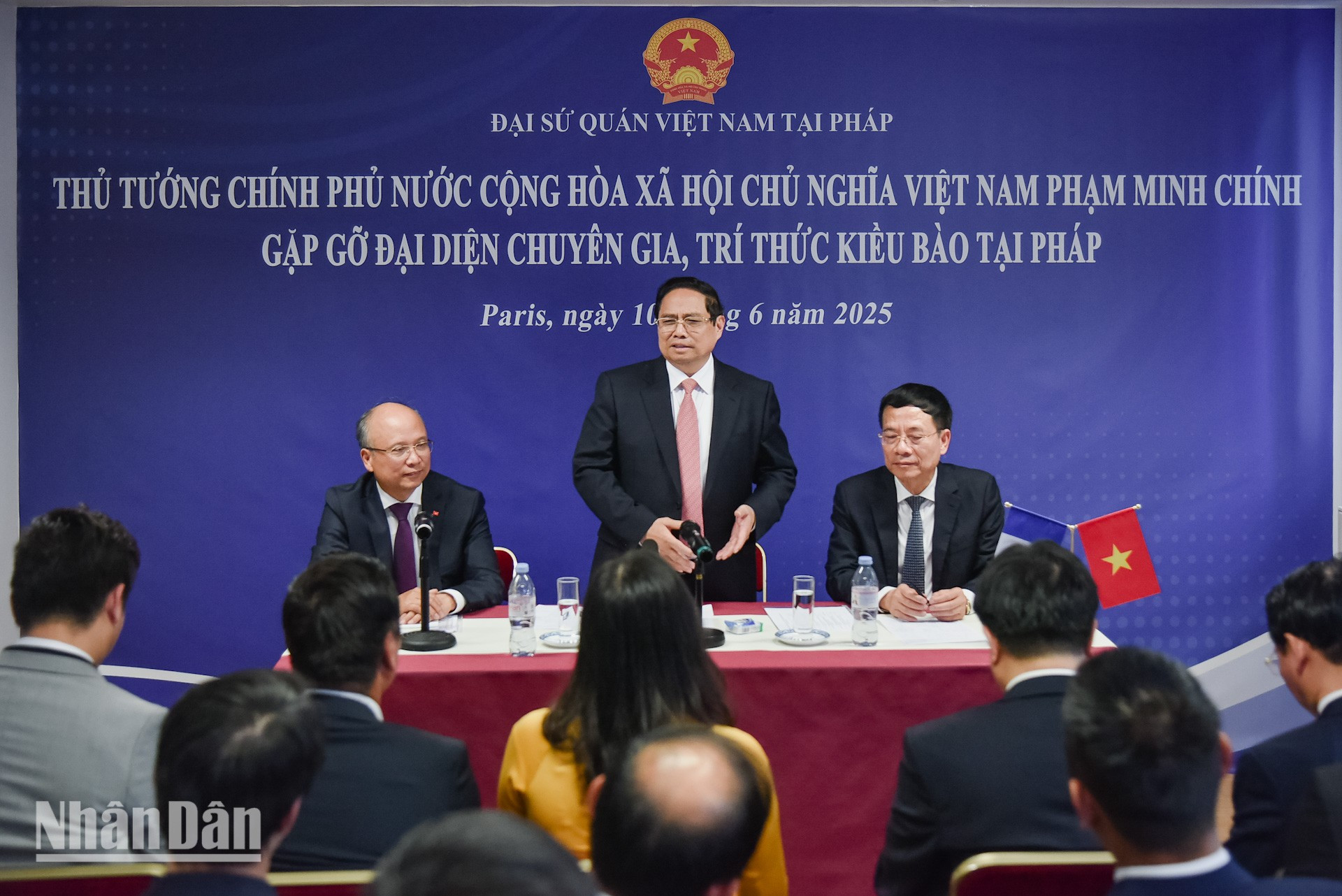 Đại sứ Việt Nam tại Pháp Đinh Toàn Thắng báo cáo với Thủ tướng Phạm Minh Chính và Đoàn công tác về truyền thống quý báu của cộng đồng người Việt tại Pháp. Trong suốt chiều dài lịch sử của đất nước, các thế hệ Việt kiều tại Pháp luôn hướng về quê hương, chú trọng giữ gìn bản sắc văn hóa, truyền thống dân tộc cũng như luôn nỗ lực xây dựng, phát triển phong trào cộng đồng vững mạnh.