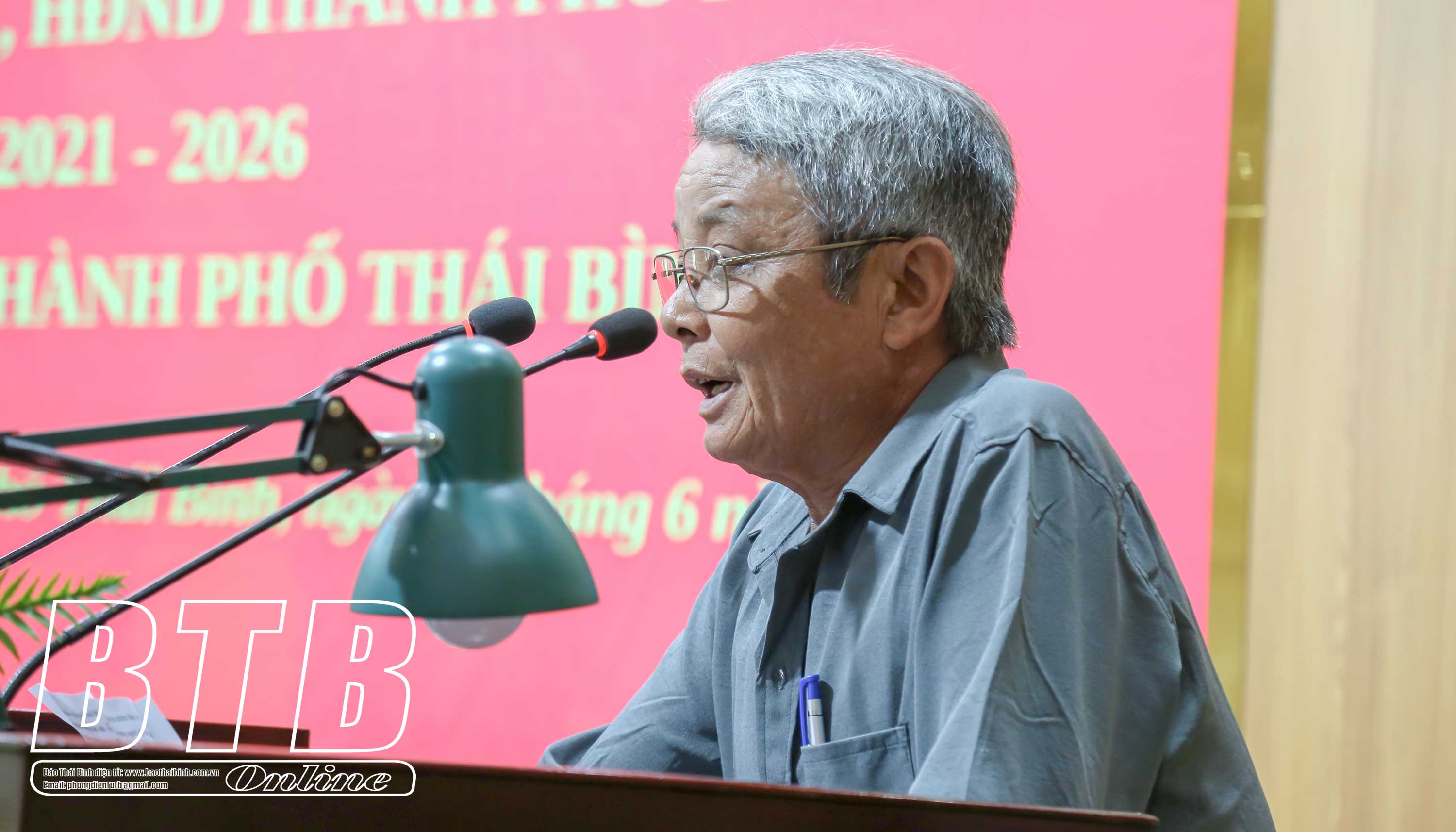 Chuẩn bị cho kỳ họp thứ mười, HĐND tỉnh khóa XVII, sáng ngày 17/6, đại biểu HĐND tỉnh và HĐND thành phố Thái Bình tiếp xúc với cử tri thành phố. Các đồng chí: Nguyễn Khắc Thận, Bí thư Tỉnh ủy; Nguyễn Tiến Thành, Phó Bí thư thường trực Tỉnh ủy, Chủ tịch HĐND tỉnh; Hoàng Văn Thành, Ủy viên Ban Thường vụ Tỉnh ủy, Bí thư Thành ủy, Chủ tịch HĐND thành phố dự hội nghị.