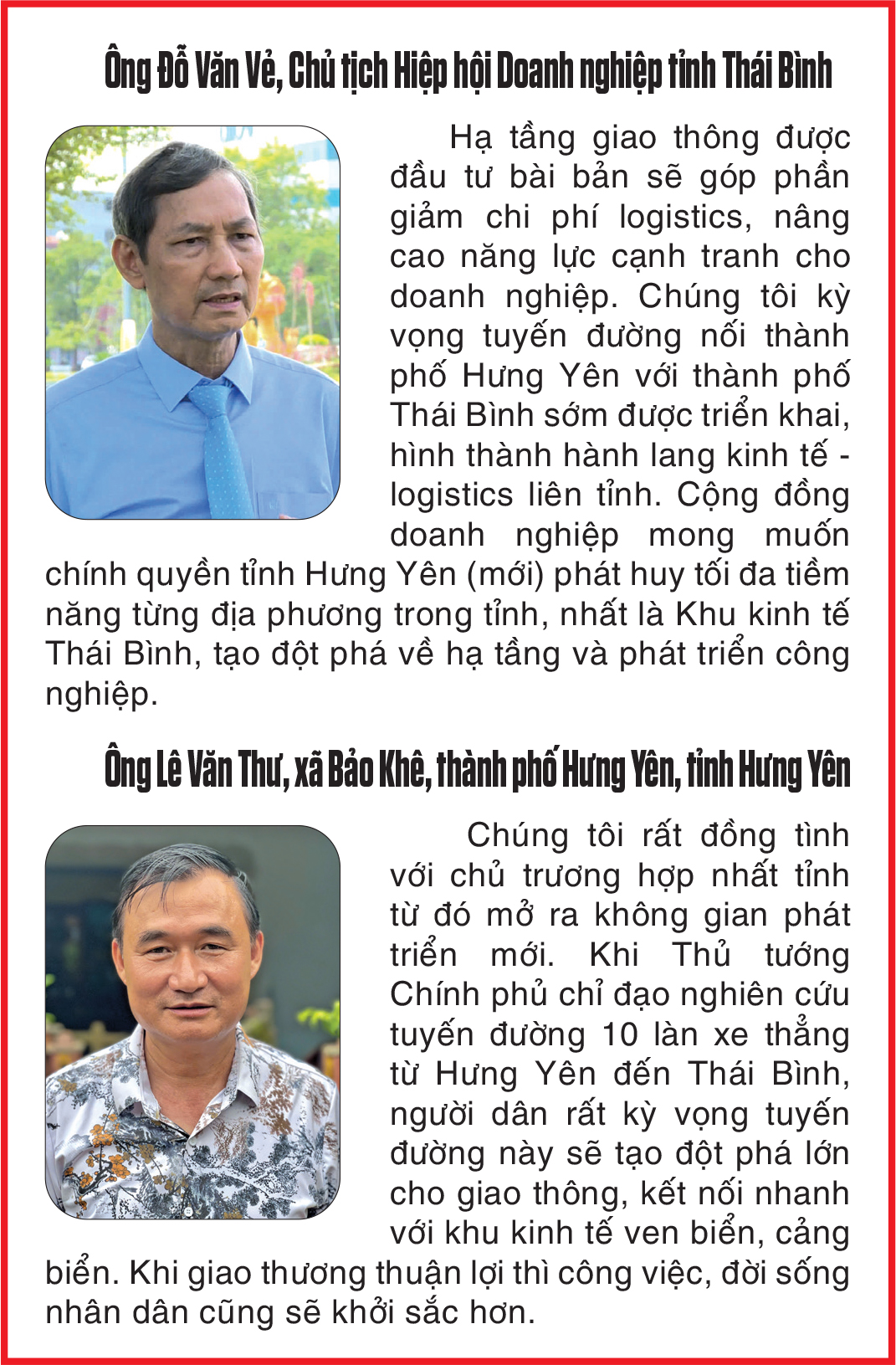 Tại Thái Bình, từ đầu nhiệm kỳ đến nay, tỉnh đã huy động hơn 21.000 tỷ đồng triển khai hàng loạt công trình trọng điểm như: tuyến đường bộ ven biển, tuyến thành phố Thái Bình - cồn Vành, thành phố Thái Bình - cầu Nghìn, đường trục Khu kinh tế, vành đai phía Nam thành phố Thái Bình... Các tuyến đường này không chỉ phục vụ giao thông nội tỉnh mà còn kết nối trực tiếp với Hải Phòng, Nam Định và các tỉnh lân cận.