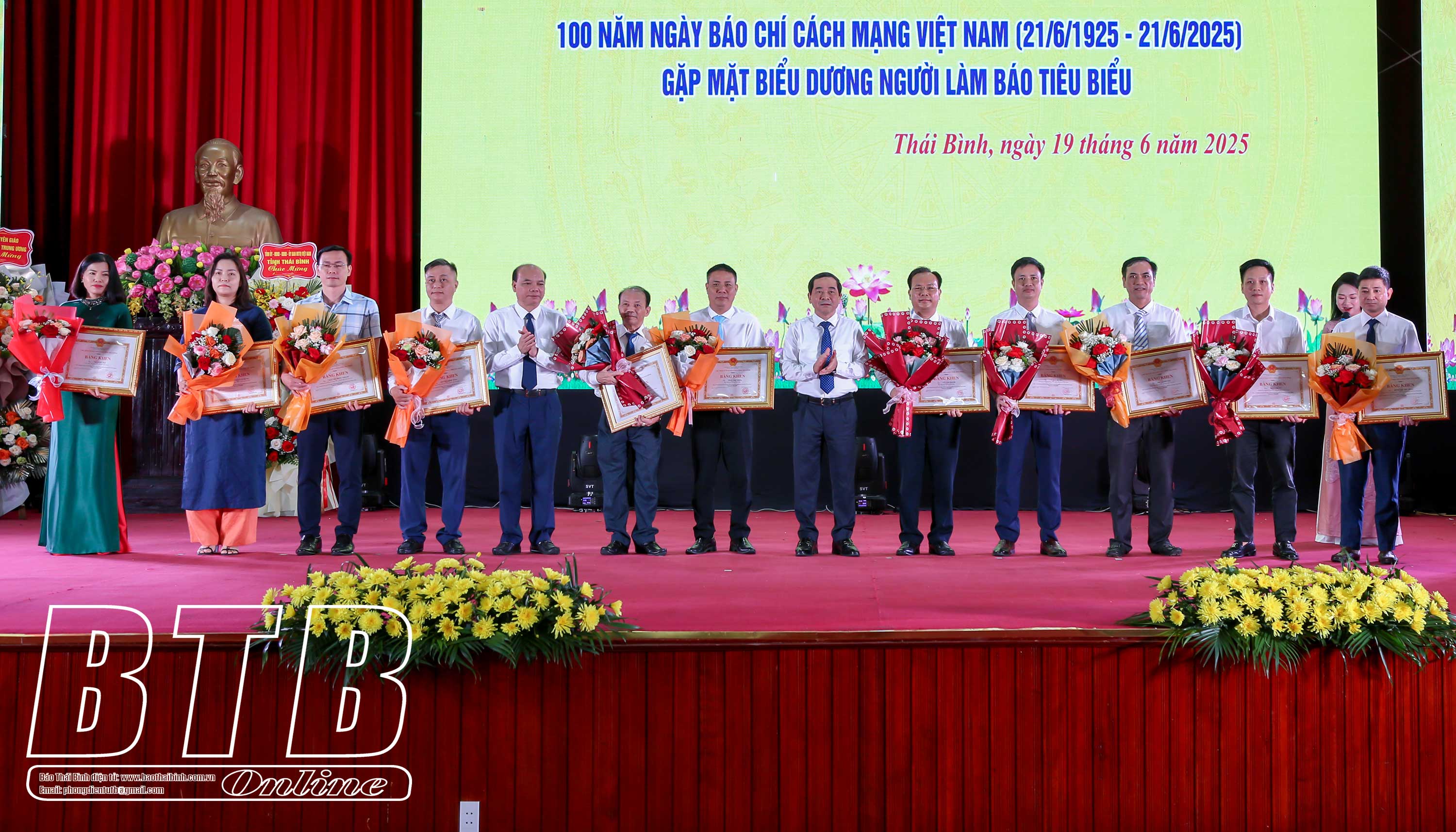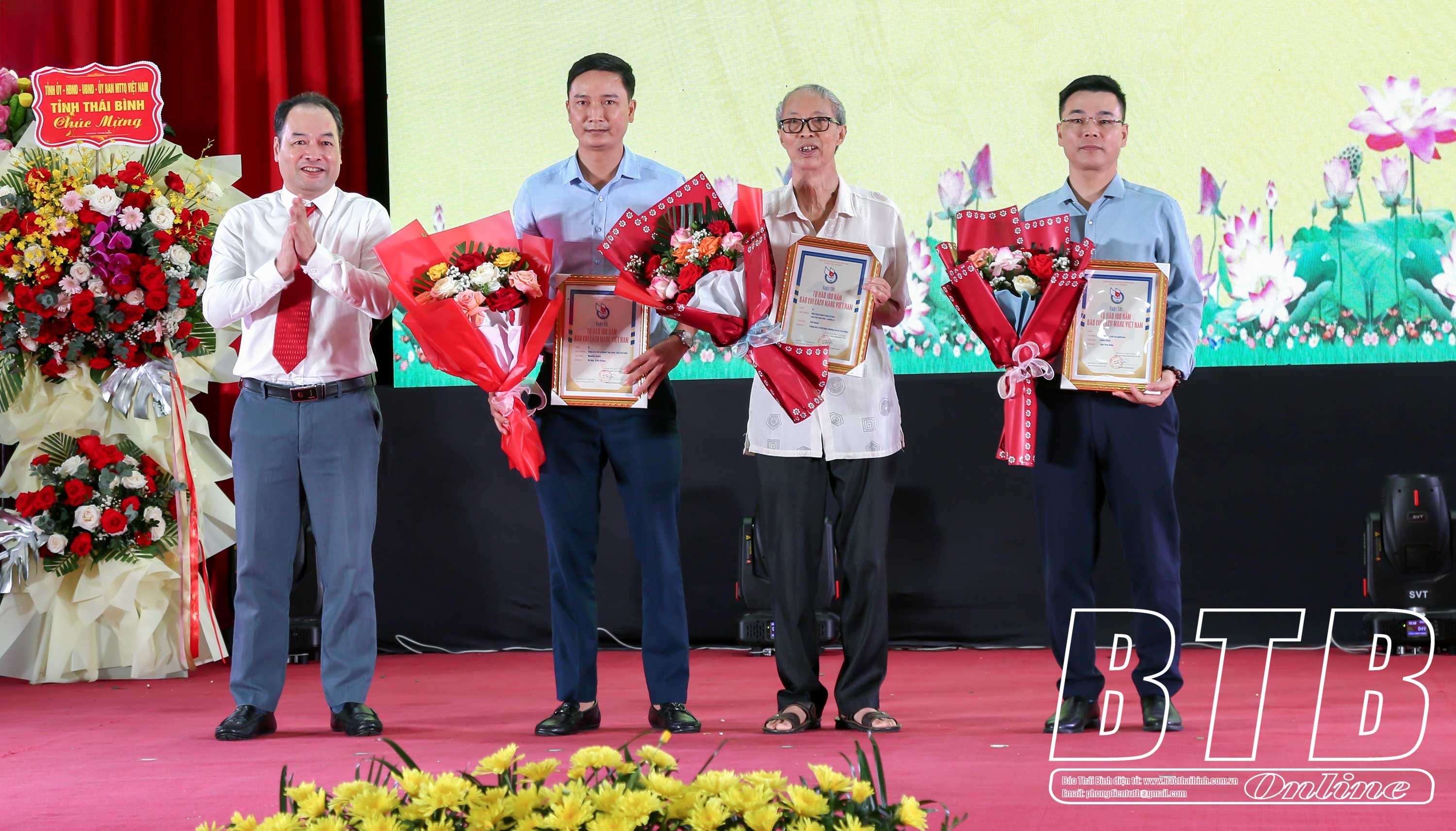 Nhân dịp này, 6 nhà báo hưu trí tiêu biểu đã được biểu dương, nhận biểu trưng của Tỉnh uỷ, HĐND, UBND tỉnh; 24 cá nhân có thành tích xuất sắc, tiêu biểu trong hoạt động báo chí tỉnh Thái Bình giai đoạn 2020-2025 được Chủ tịch UBND tỉnh tặng bằng khen. Cũng tại lễ kỷ niệm, lãnh đạo Báo Thái Bình đã trao giải cho các tác giả, nhóm tác giả đạt giải cuộc thi “Tự hào 100 năm Báo chí cách mạng Việt Nam”.