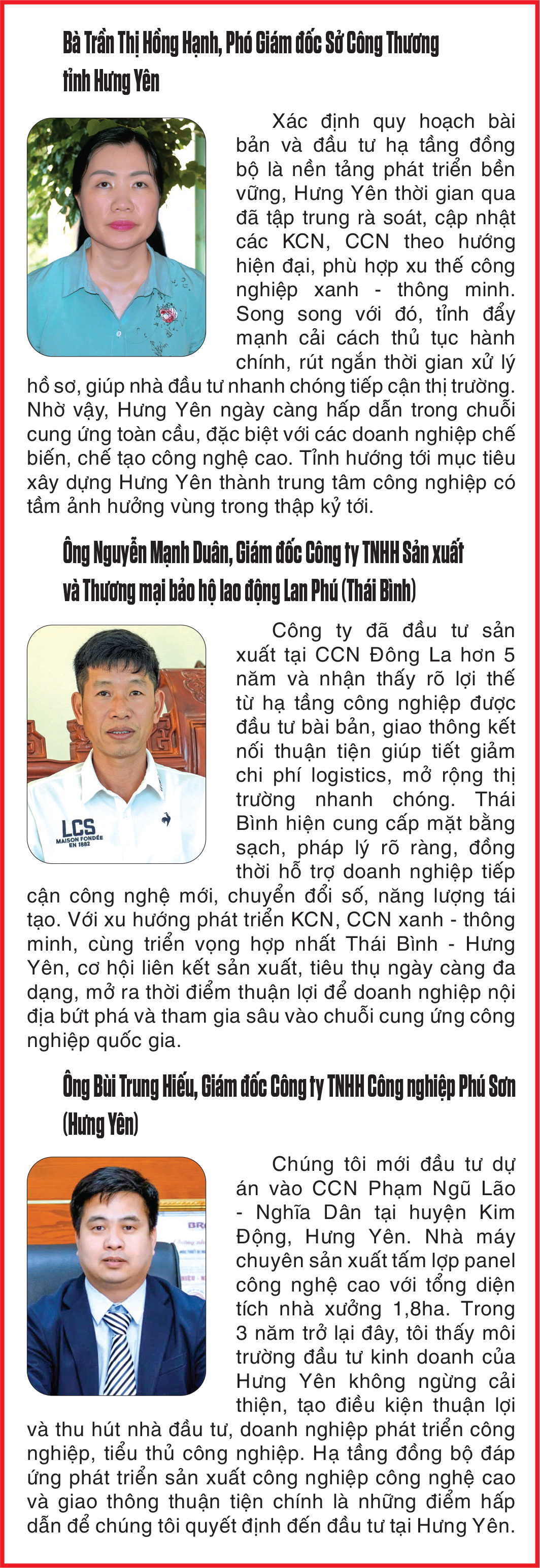 Tại Hưng Yên, năm 2024, địa phương đã thu hút tới 180 dự án đầu tư mới, tăng 80% so với năm 2023. Kết quả này đến từ sự chủ động trong xúc tiến đầu tư, cải thiện mạnh mẽ thủ tục hành chính, cùng với việc chú trọng công tác quy hoạch các KCN mới phù hợp với nhu cầu doanh nghiệp. Đồng thời, tỉnh cũng tích cực tổ chức đối thoại, đồng hành cùng nhà đầu tư để tháo gỡ khó khăn, tạo dựng môi trường đầu tư minh bạch và hiệu quả. Ông Vũ Quốc Nghị, Trưởng ban Quản lý các khu công nghiệp tỉnh Hưng Yên chia sẻ: Chúng tôi đã tập trung nâng cấp hạ tầng KCN hiện hữu, đồng thời quy hoạch thêm nhiều khu mới gắn với nhu cầu thực tế của nhà đầu tư. Một môi trường đầu tư thân thiện, nhanh gọn và hiệu quả chính là lực hấp dẫn đưa Hưng Yên trở thành điểm đến ưa thích của các doanh nghiệp FDI công nghệ cao.