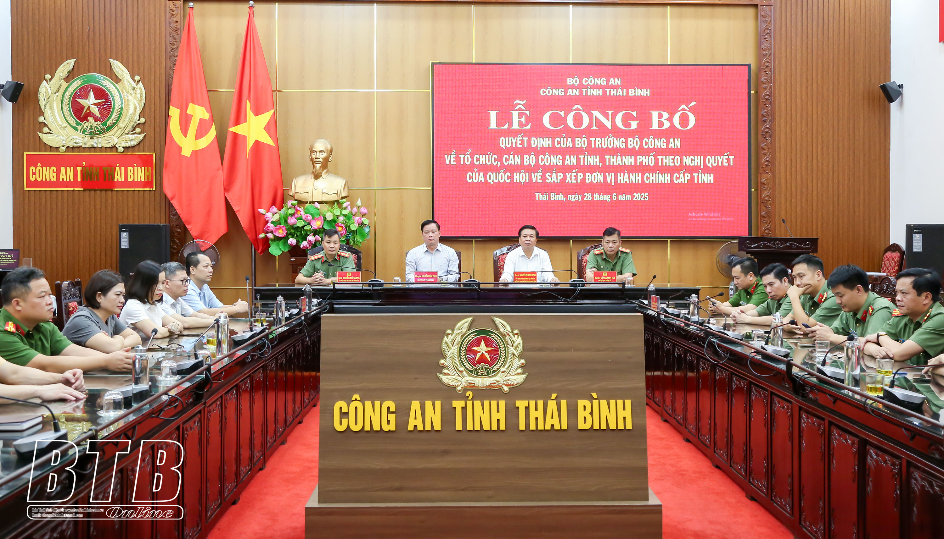 Chiều ngày 28/6, Đại tướng Lương Tam Quang, Ủy viên Bộ Chính trị, Bộ trưởng Bộ Công an chủ trì hội nghị trực tuyến công bố các quyết định của Bộ trưởng Bộ Công an về công tác tổ chức, cán bộ công an tỉnh, thành phố theo Nghị quyết của Quốc hội về sắp xếp đơn vị hành chính cấp tỉnh.