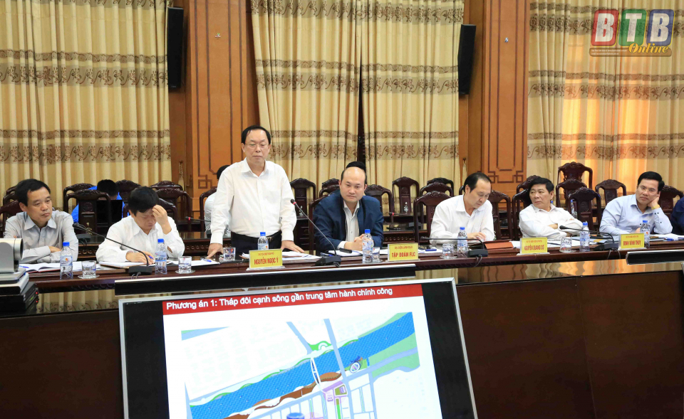 Tại cuộc họp, đại diện UBND thành phố Thái Bình đã báo cáo quy hoạch chi tiết khu nhà ở thương mại, dịch vụ tổng hợp phường Lê Hồng Phong, thành phố Thái Bình (khu vực bờ sông Trà Lý đoạn từ cầu Thái Bình đến sông Vĩnh Trà); tình hình lập và tài trợ quy hoạch các dự án do Tập đoàn FLC đề xuất; Tập đoàn FLC báo cáo tình hình triển khai thực hiện dự án Bệnh viện Đa khoa quốc tế tỉnh Thái Bình quy mô 1.000 giường; Ban Quản lý Khu kinh tế và các khu công nghiệp báo cáo tình hình triển khai thực hiện dự án khu công nghiệp chuyên nông nghiệp huyện Quỳnh Phụ; Sở Nông nghiệp và Phát triển nông thôn báo cáo tiến độ thực hiện các dự án của Tập đoàn TH; Sở Xây dựng báo cáo các dự án do Tập đoàn Sun Group đề xuất và tình hình thực hiện dự án khu đô thị Kiến Giang.