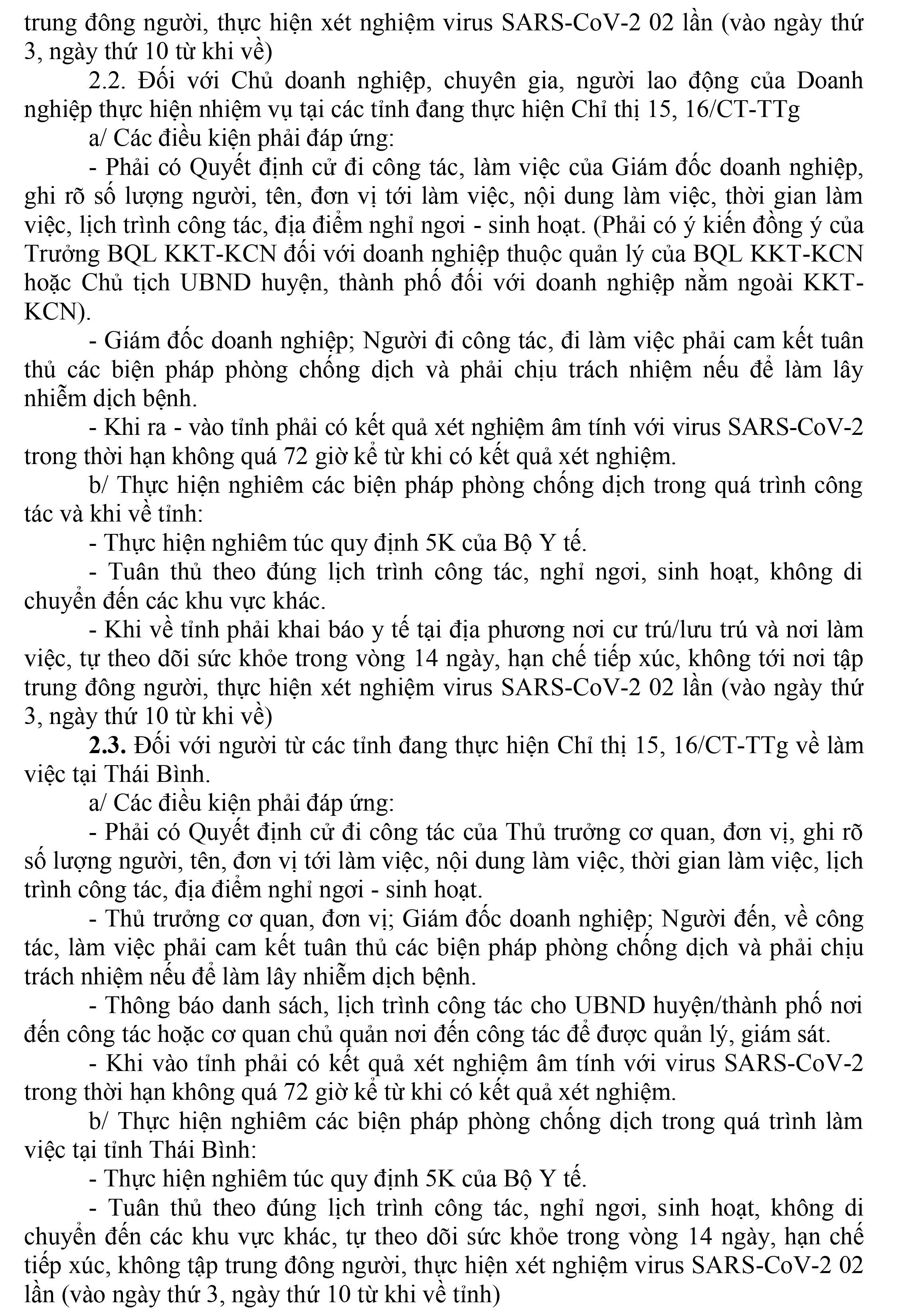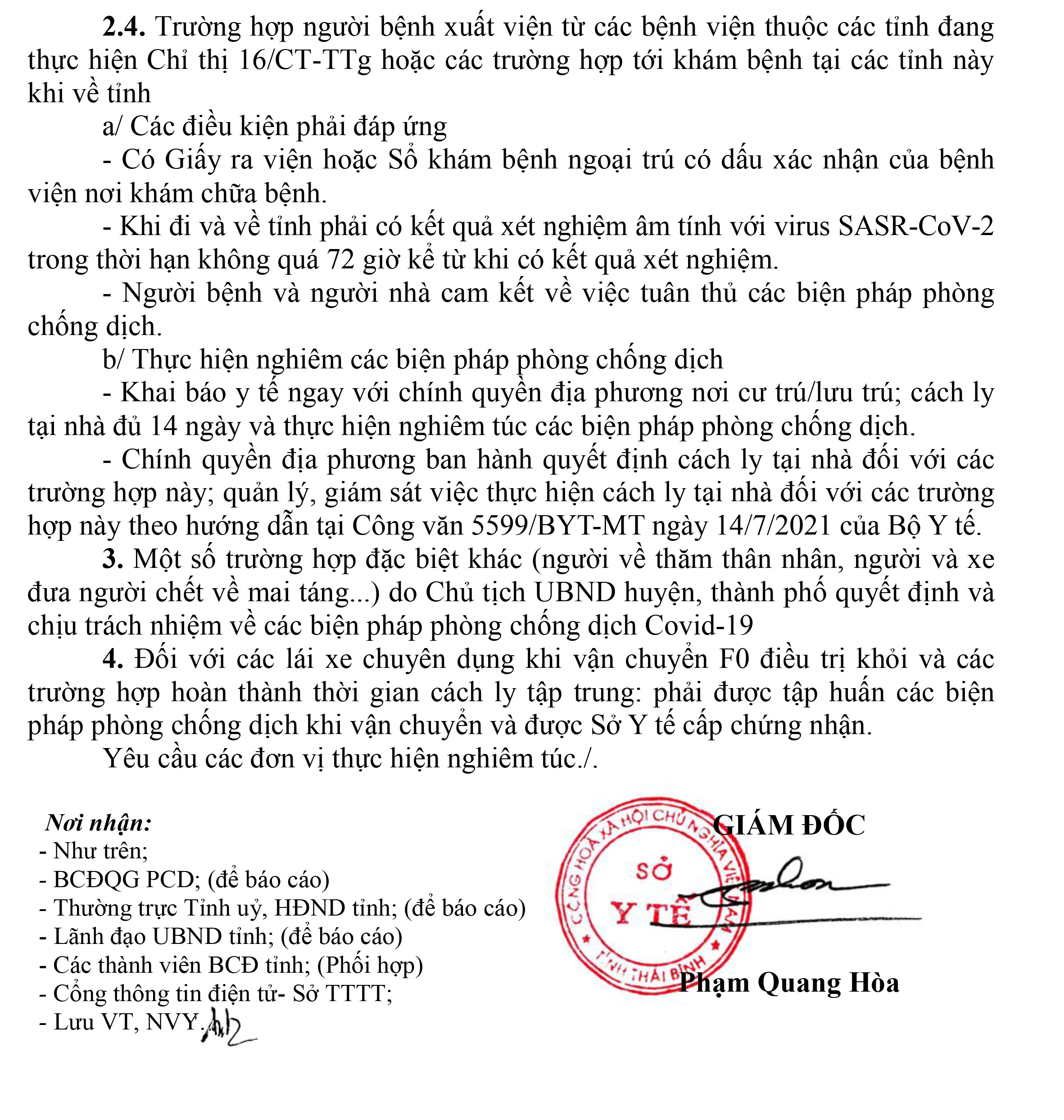 Hướng dẫn quản lý người đến, về tỉnh Thái Bình trong tình hình mới phòng, chống dịch Covid-19