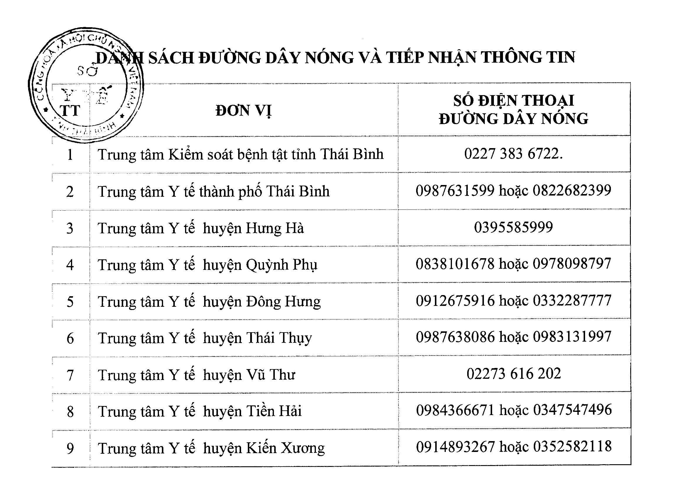 Thông báo khẩn số 09 ngày 28/7/2021 của Ban Chỉ đạo phòng, chống dịch Covid-19 tỉnh Thái Bình tìm tất cả những người đến Bệnh viện Phổi Hà Nội.