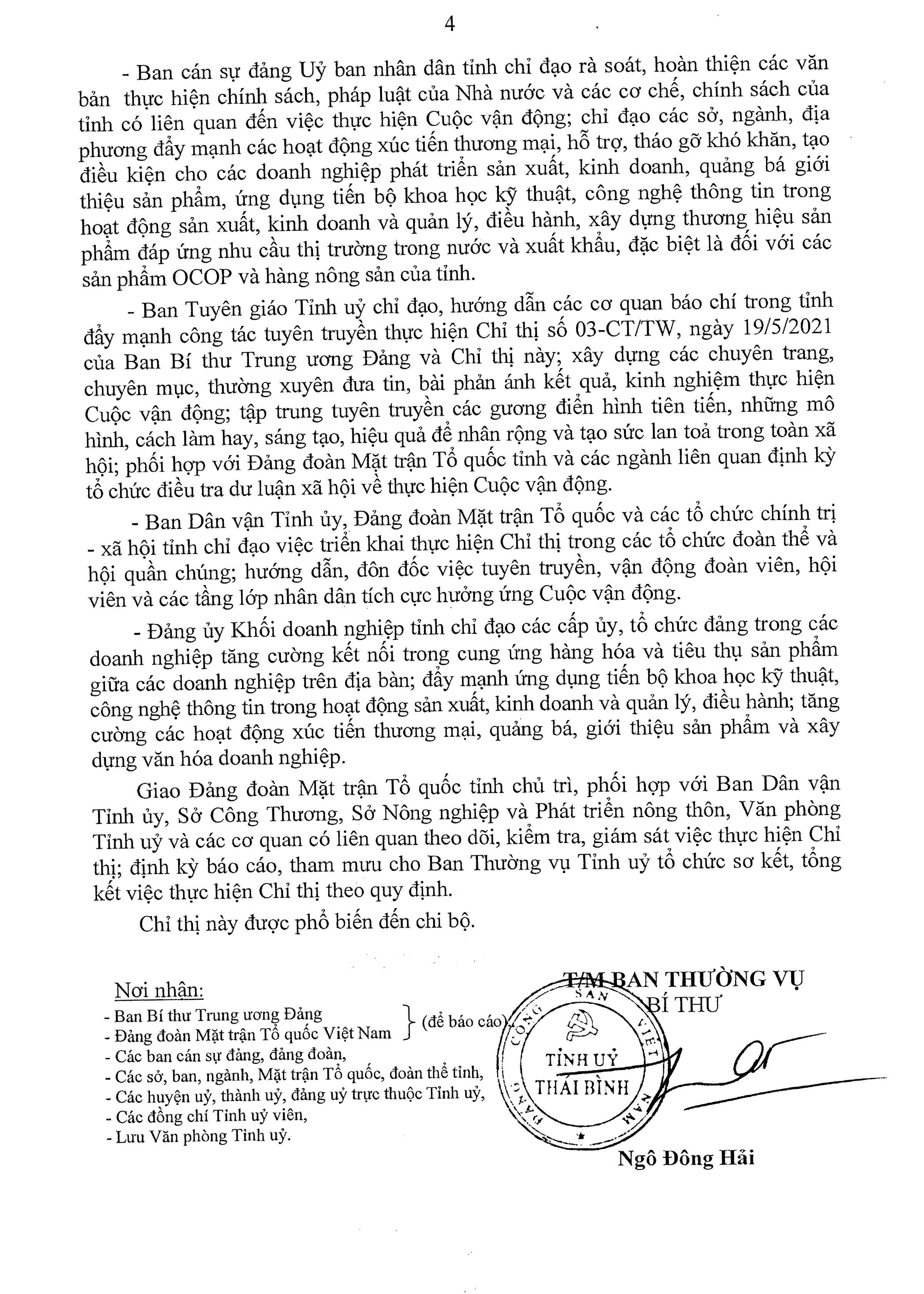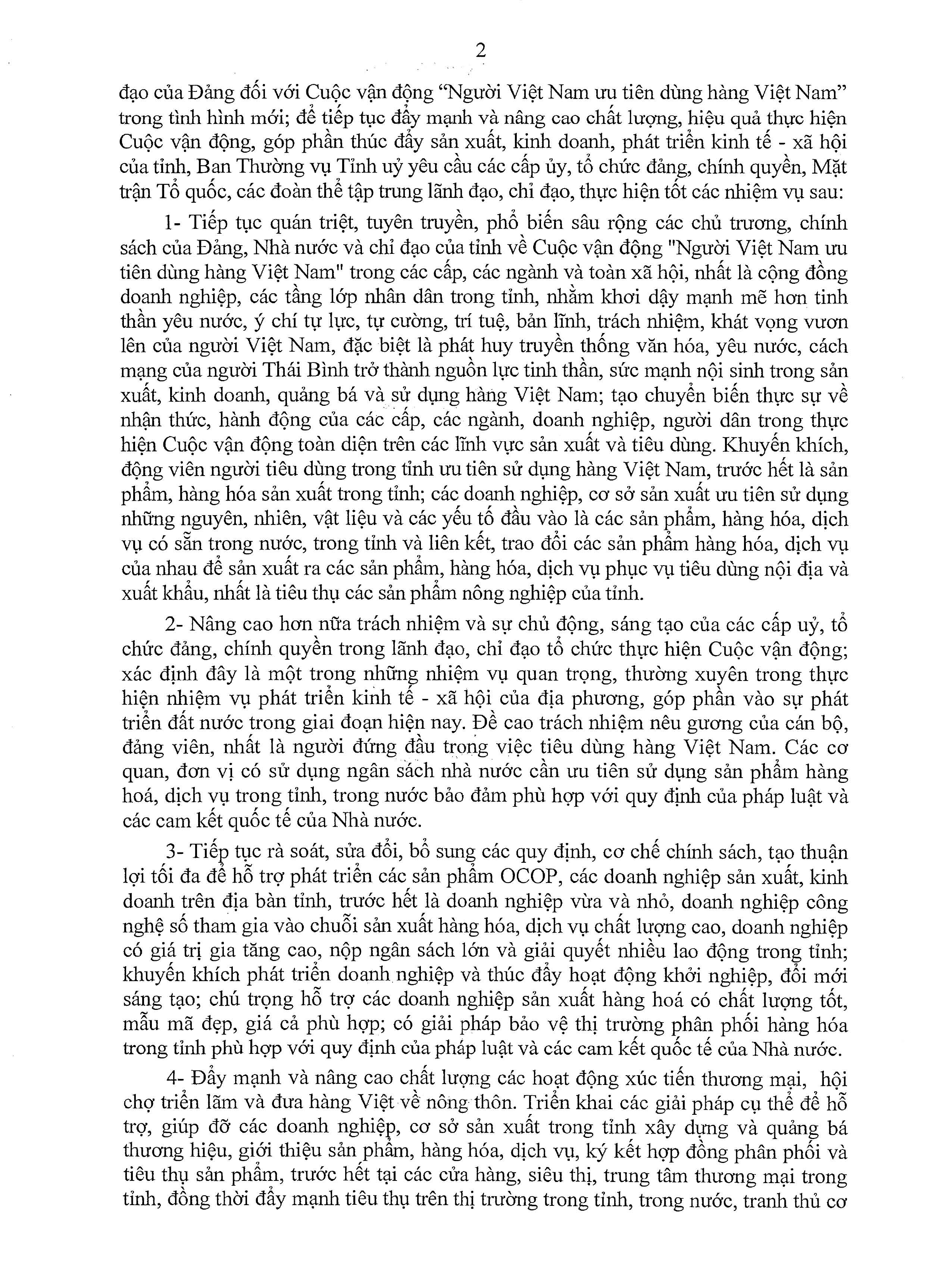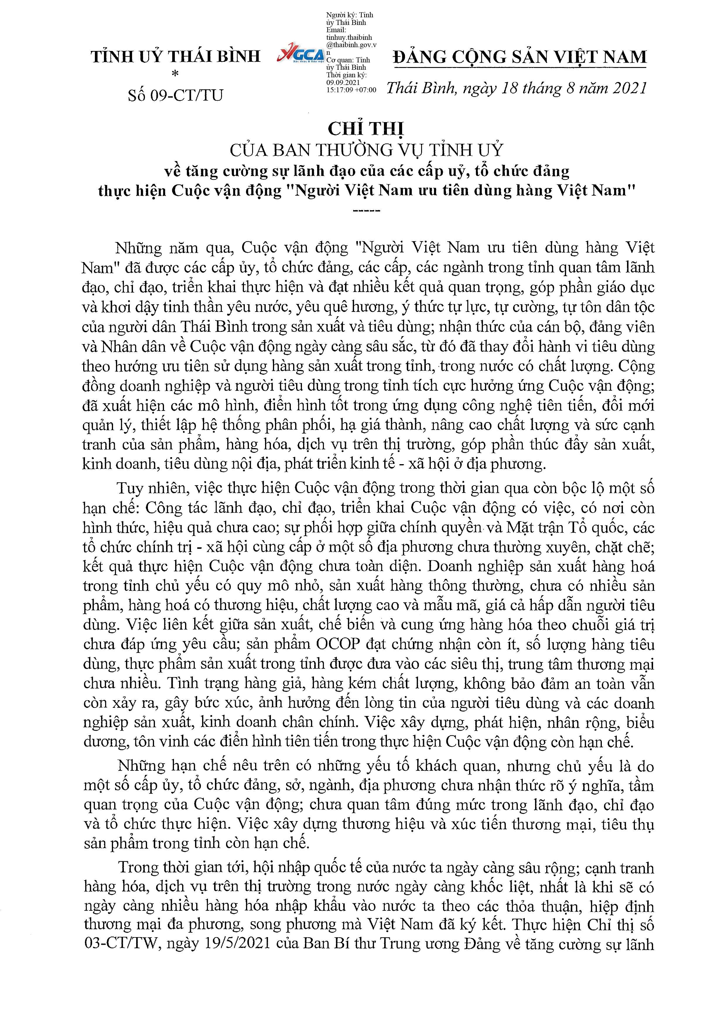 Chỉ thị số 09-CT/TU của Ban Thường vụ Tỉnh ủy về tăng cường sự lãnh đạo của các cấp ủy, tổ chức đảng thực hiện Cuộc vận động "Người Việt Nam ưu tiên dùng hàng Việt Nam"