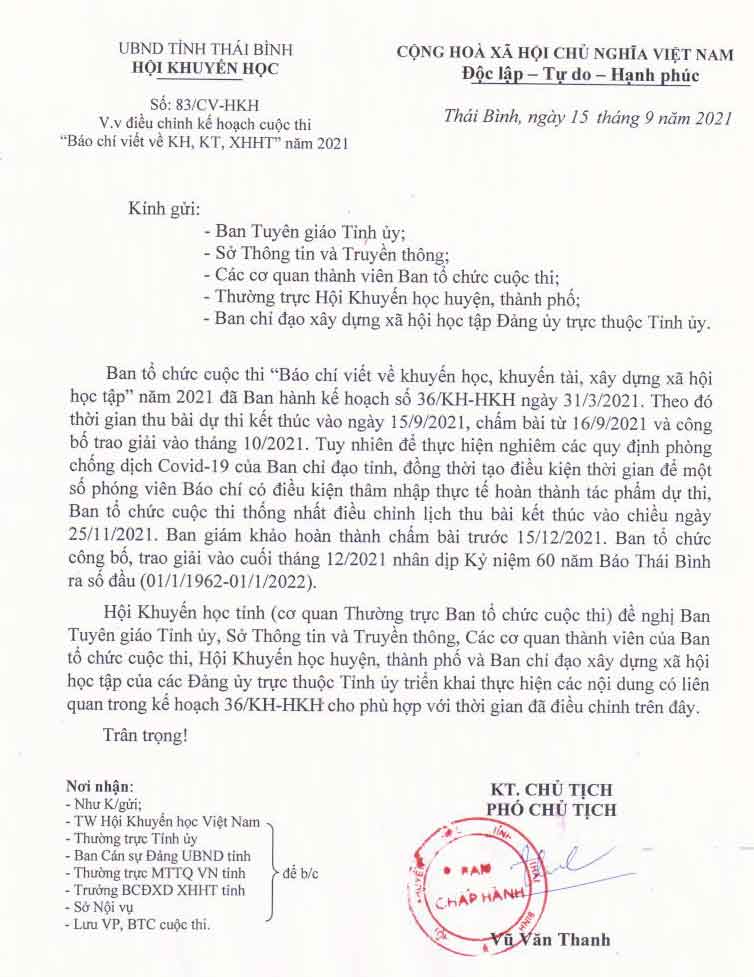 Điều chỉnh kế hoạch cuộc thi "Báo chí viết về khuyến học, khuyến tài, xã hội học tập" năm 2021