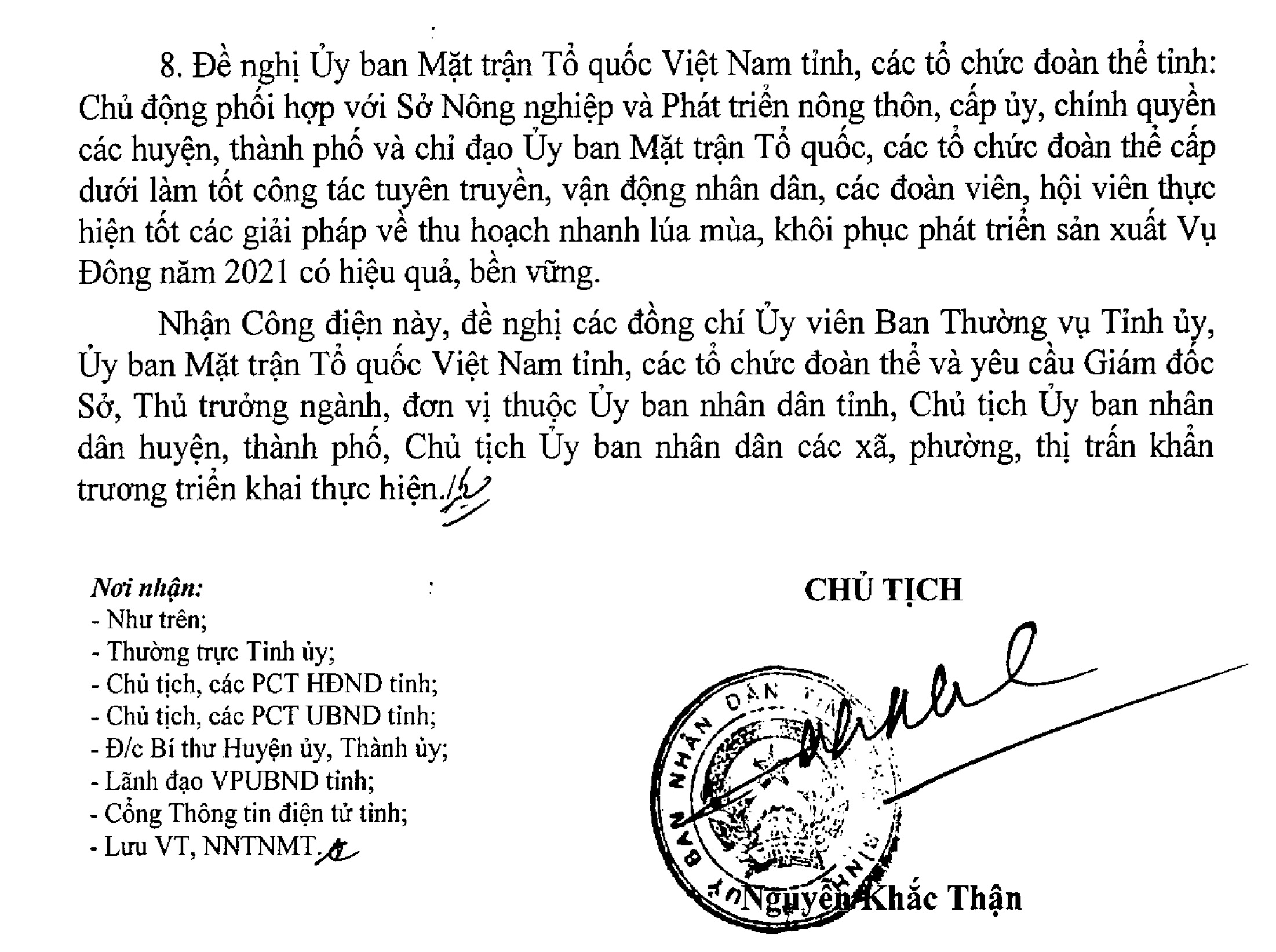 Công điện số 09/CĐ-UBND về việc triển khai các giải pháp phòng, chống bão số 8 khôi phục sản xuất vụ Mùa, vụ Đông năm 2021