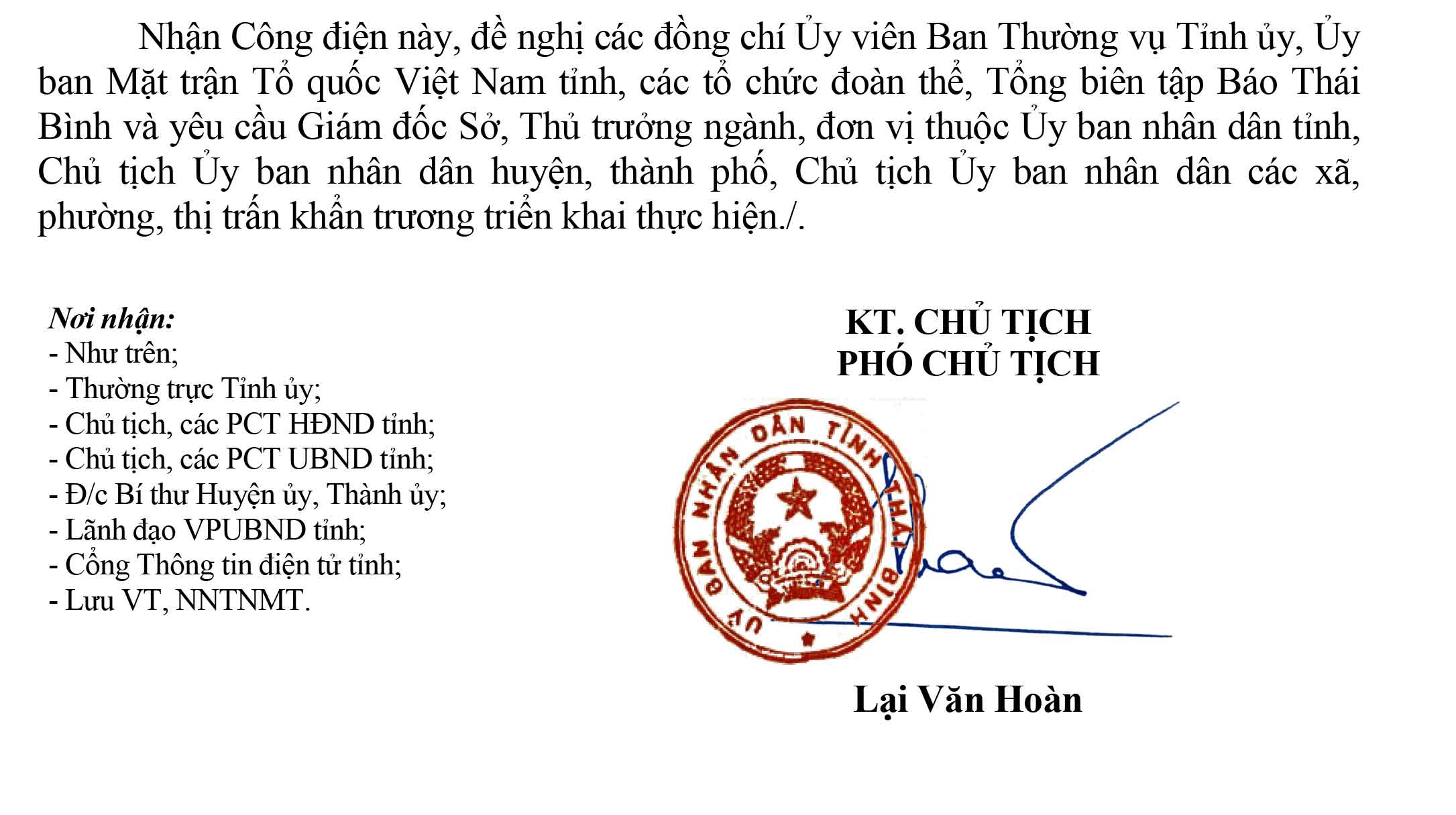 - Công điện khẩn số 10 của Ban chỉ huy PCTT và TKCN tỉnh Thái Bình điện Ban chỉ huy PCTT và TKCN các cấp, các ngành 03.09.2024 | 22:24 PM