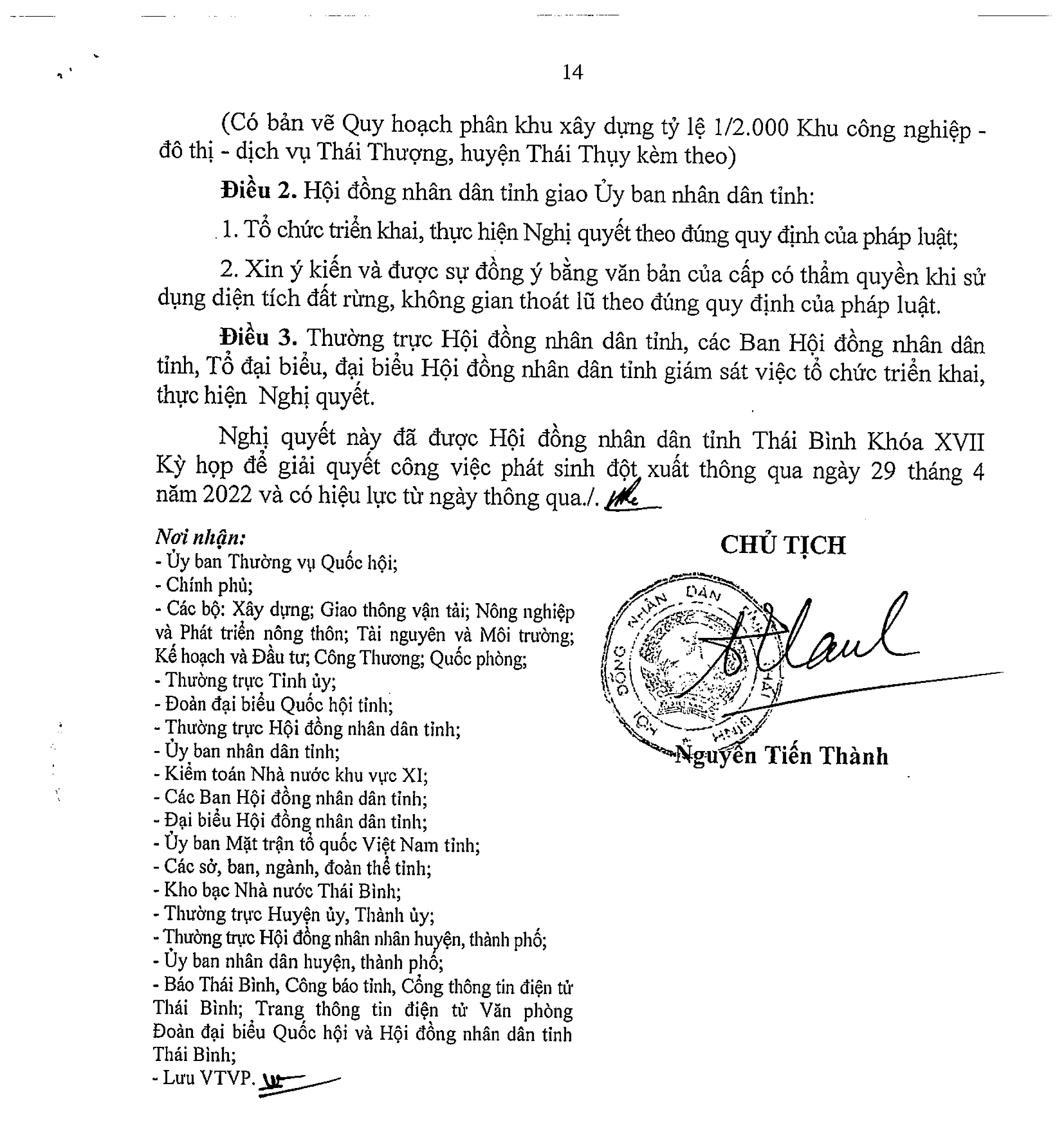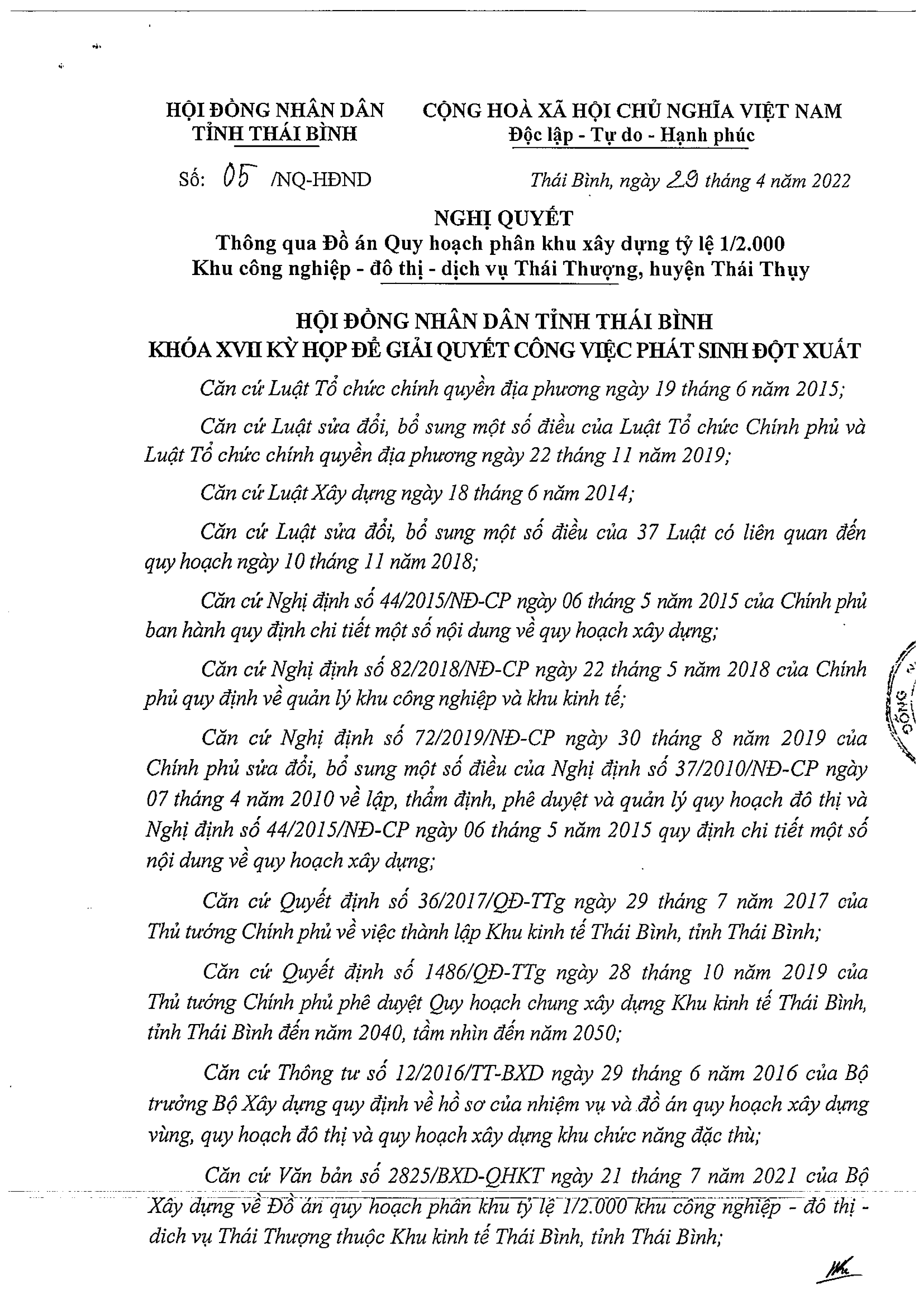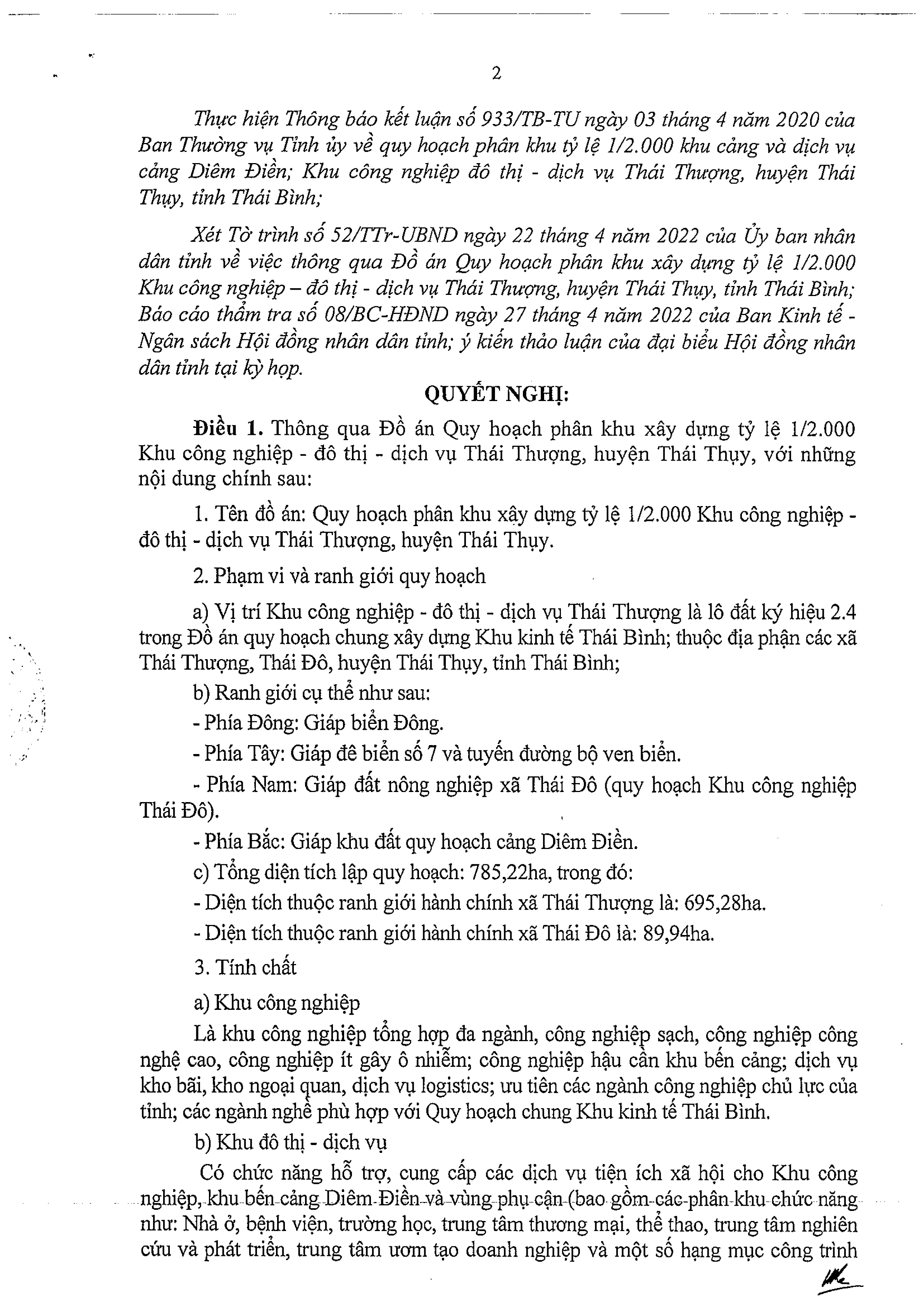 Nghị quyết về việc thông qua Đồ án Quy hoạch phân khu xây dựng tỷ lệ 1/2.000 Khu công nghiệp -đô thị-dịch vụ Thái Thượng, huyện Thái Thụy
