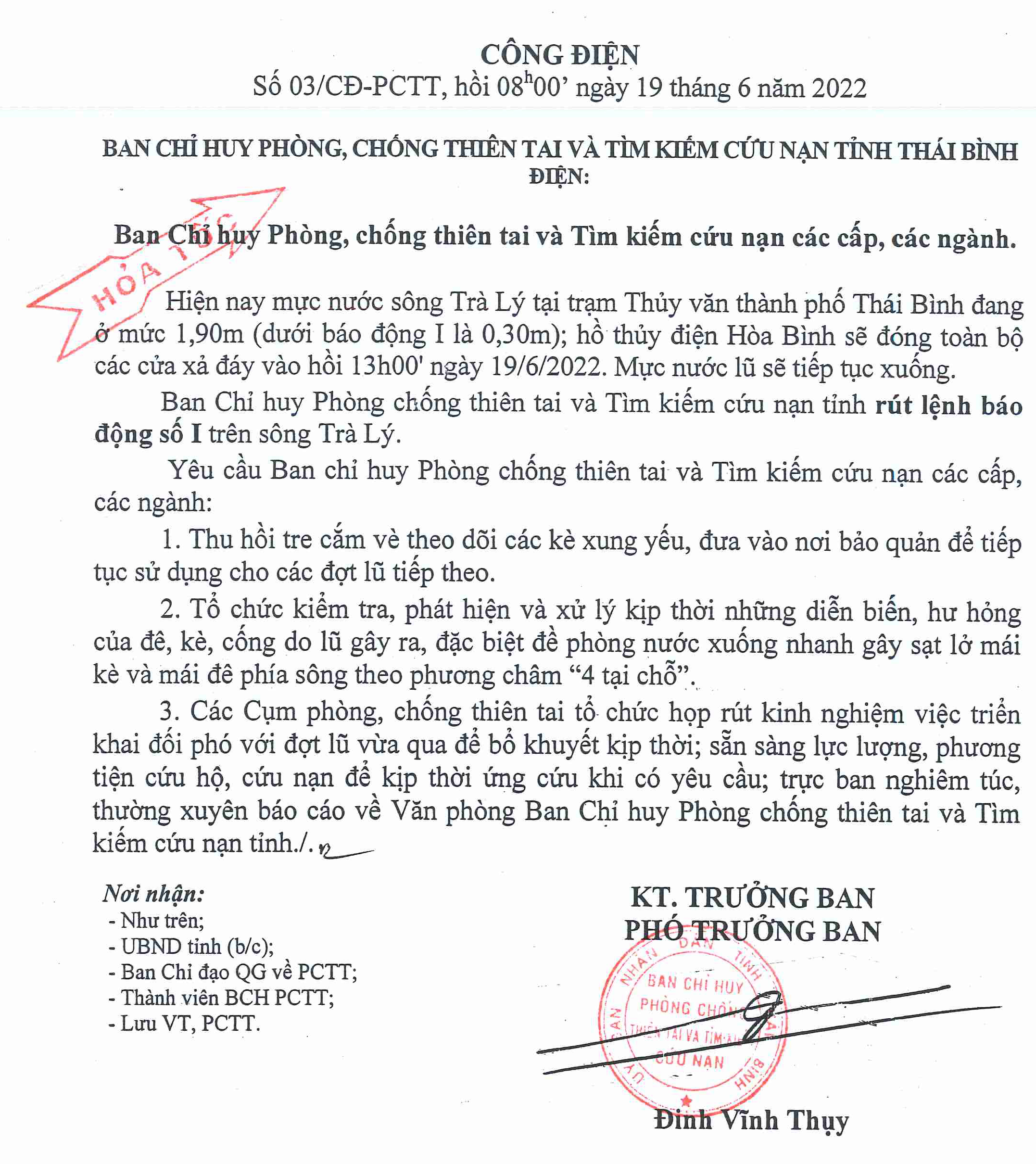 - Công điện khẩn số 10 của Ban chỉ huy PCTT và TKCN tỉnh Thái Bình điện Ban chỉ huy PCTT và TKCN các cấp, các ngành 03.09.2024 | 22:24 PM