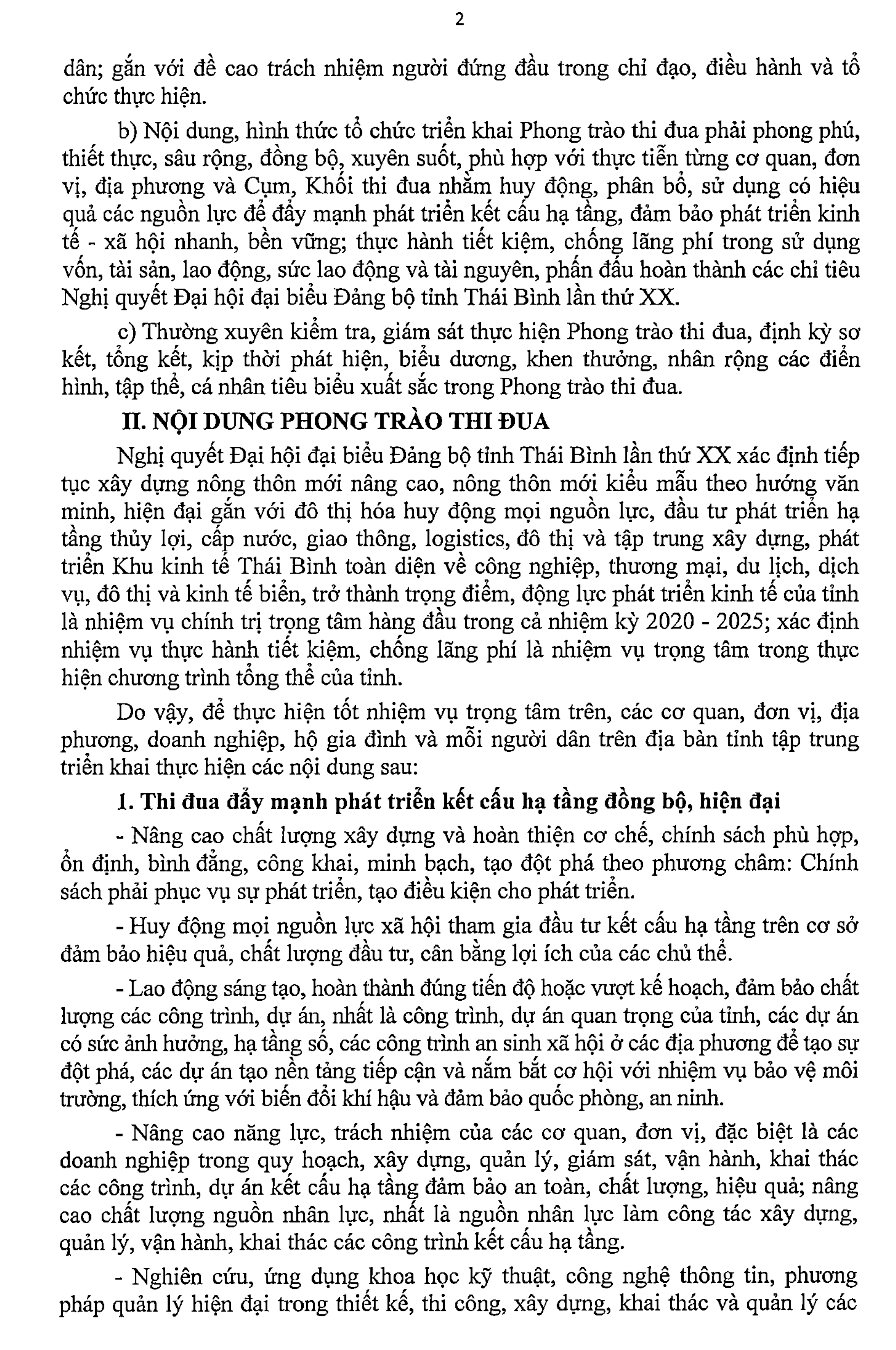 Tổ chức thực hiện phong trào thi đua ''Đẩy mạnh phát triển kết cấu hạ tầng đồng bộ, hiện đại; thực hành tiết kiệm, chống lãng phí'' trên địa bàn tỉnh Thái Bình