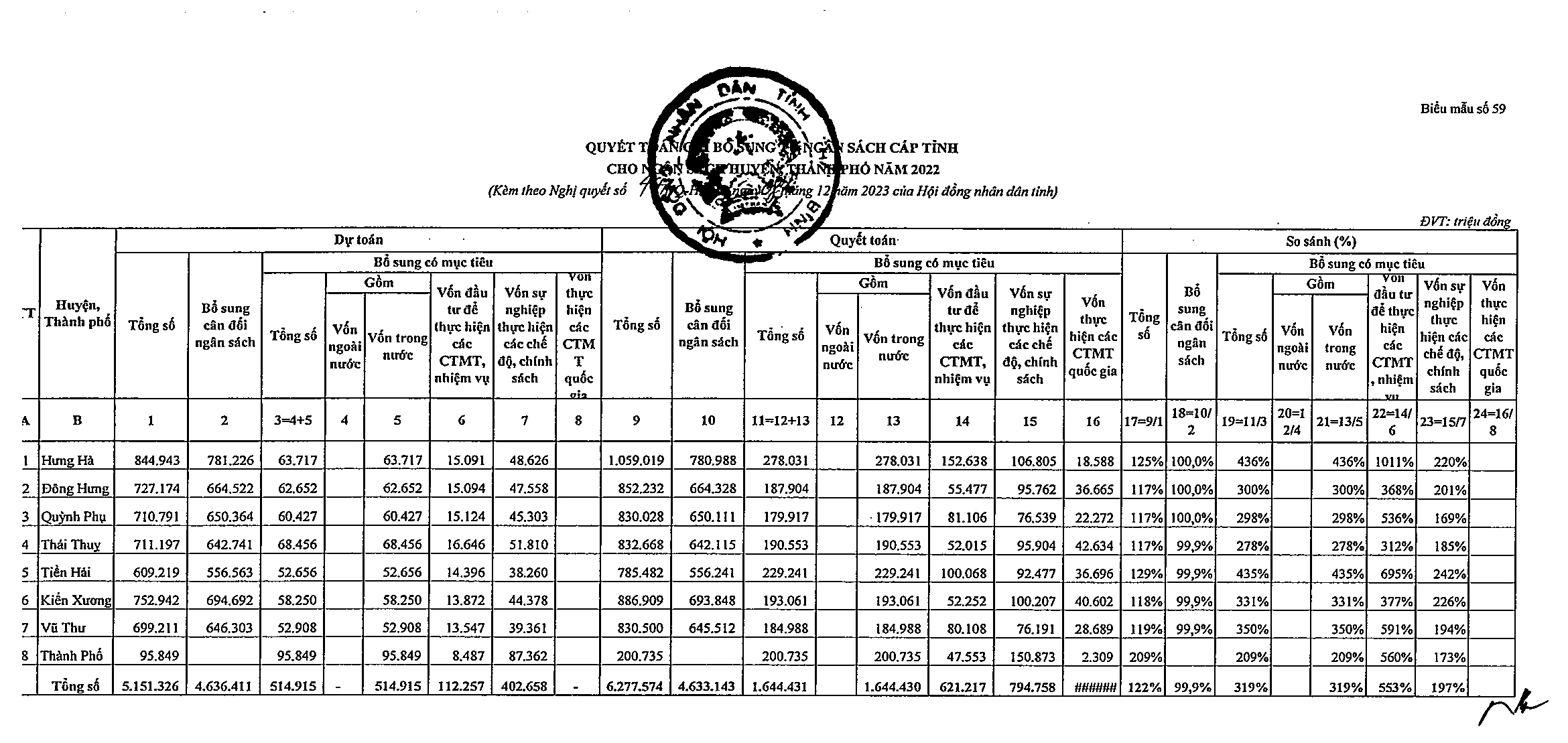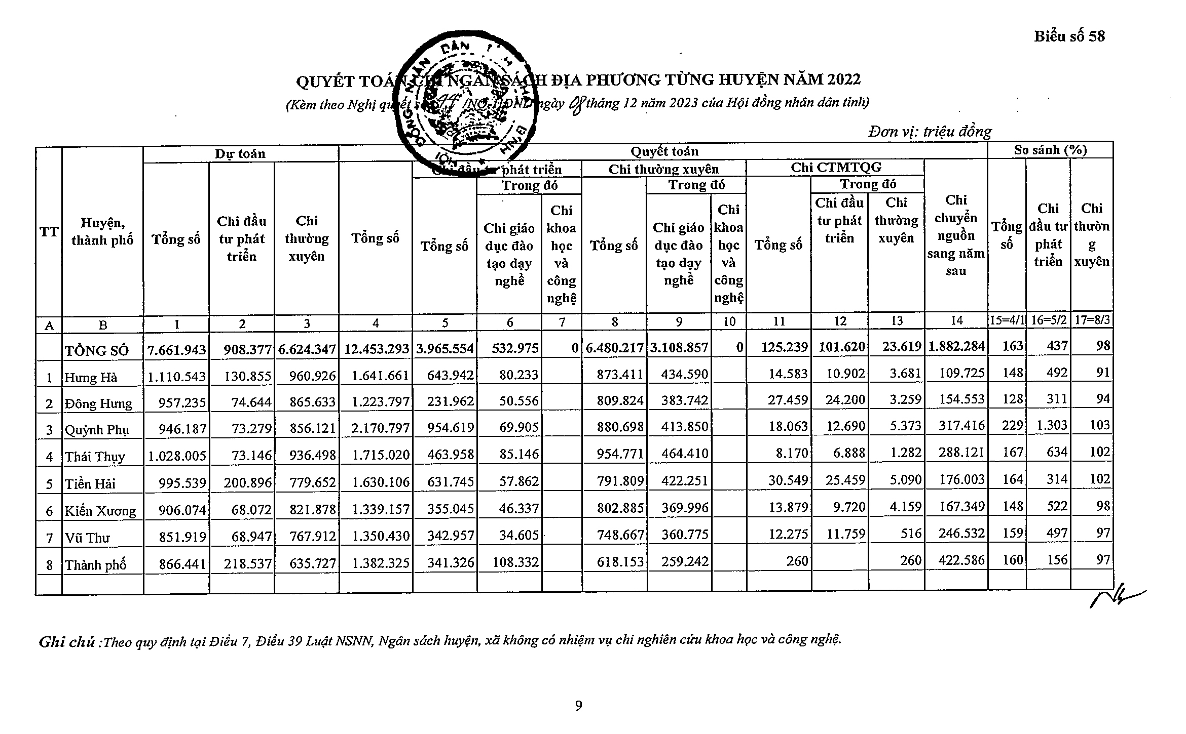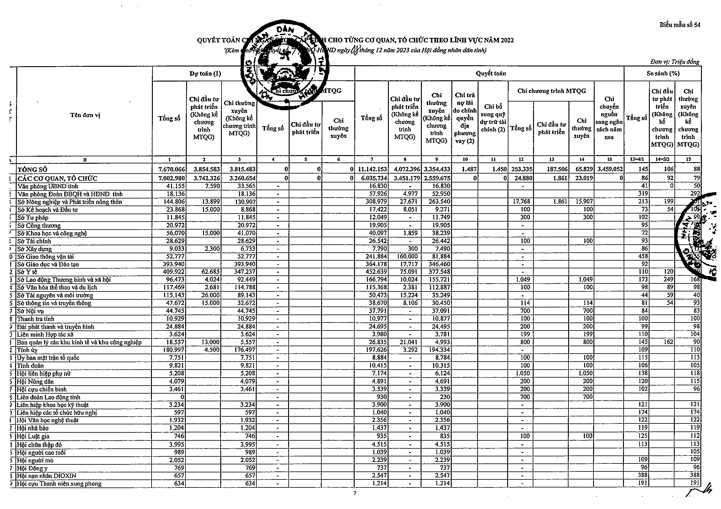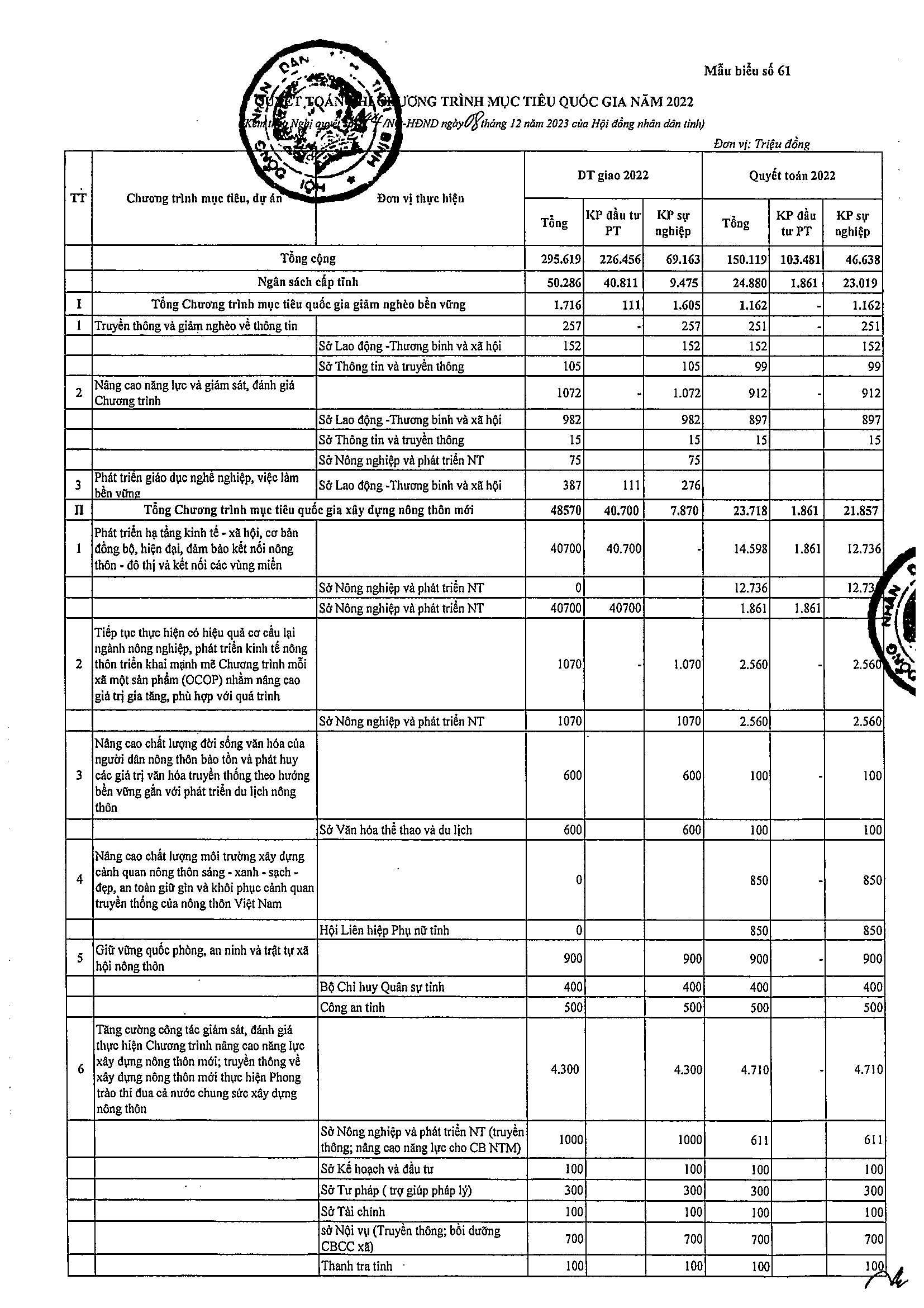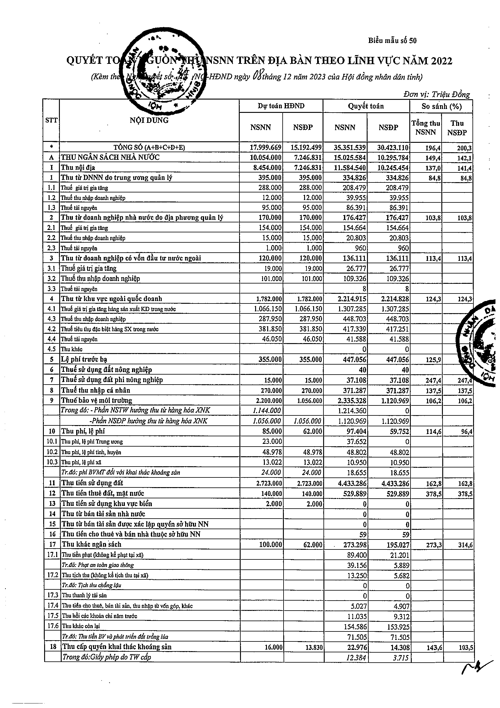 Nghị quyết số 44/NQ-HĐND về việc phê chuẩn tổng quyết toán ngân sách địa phương năm 2022