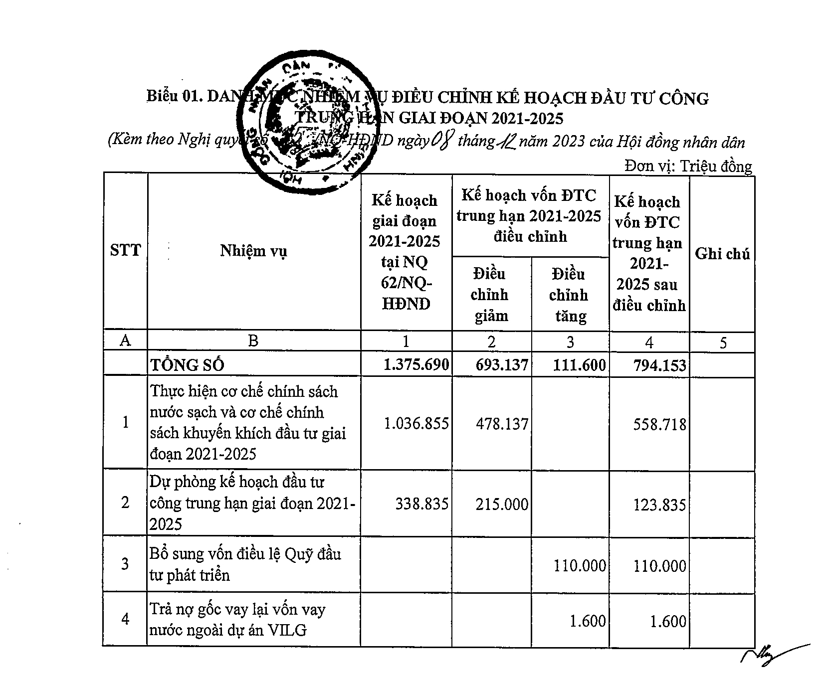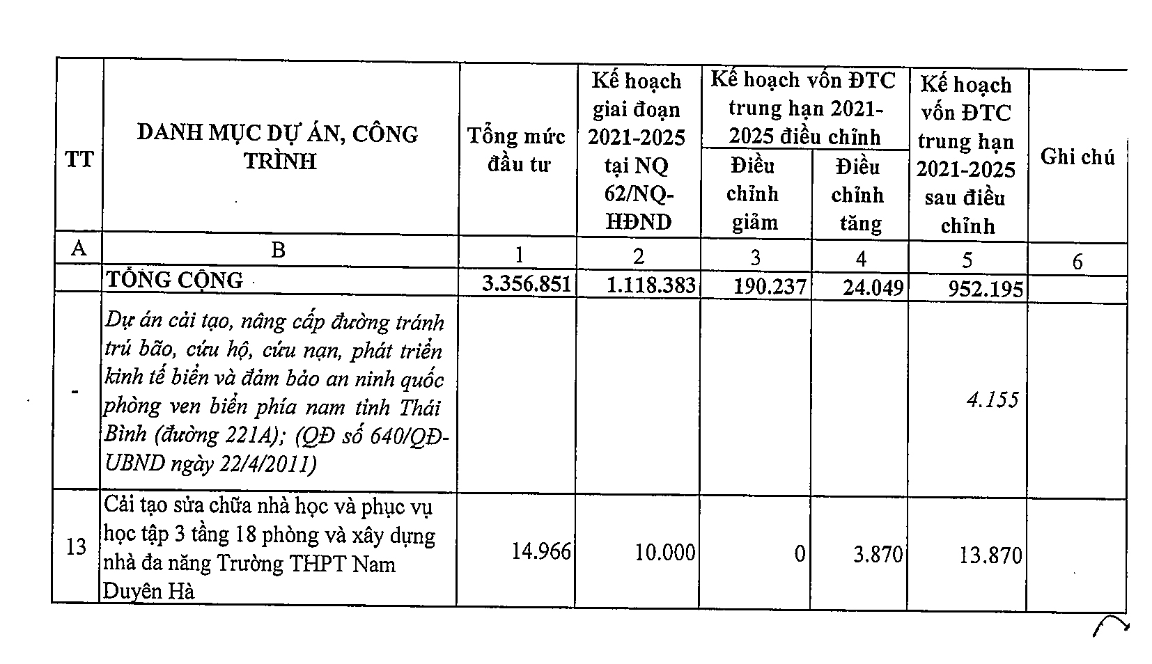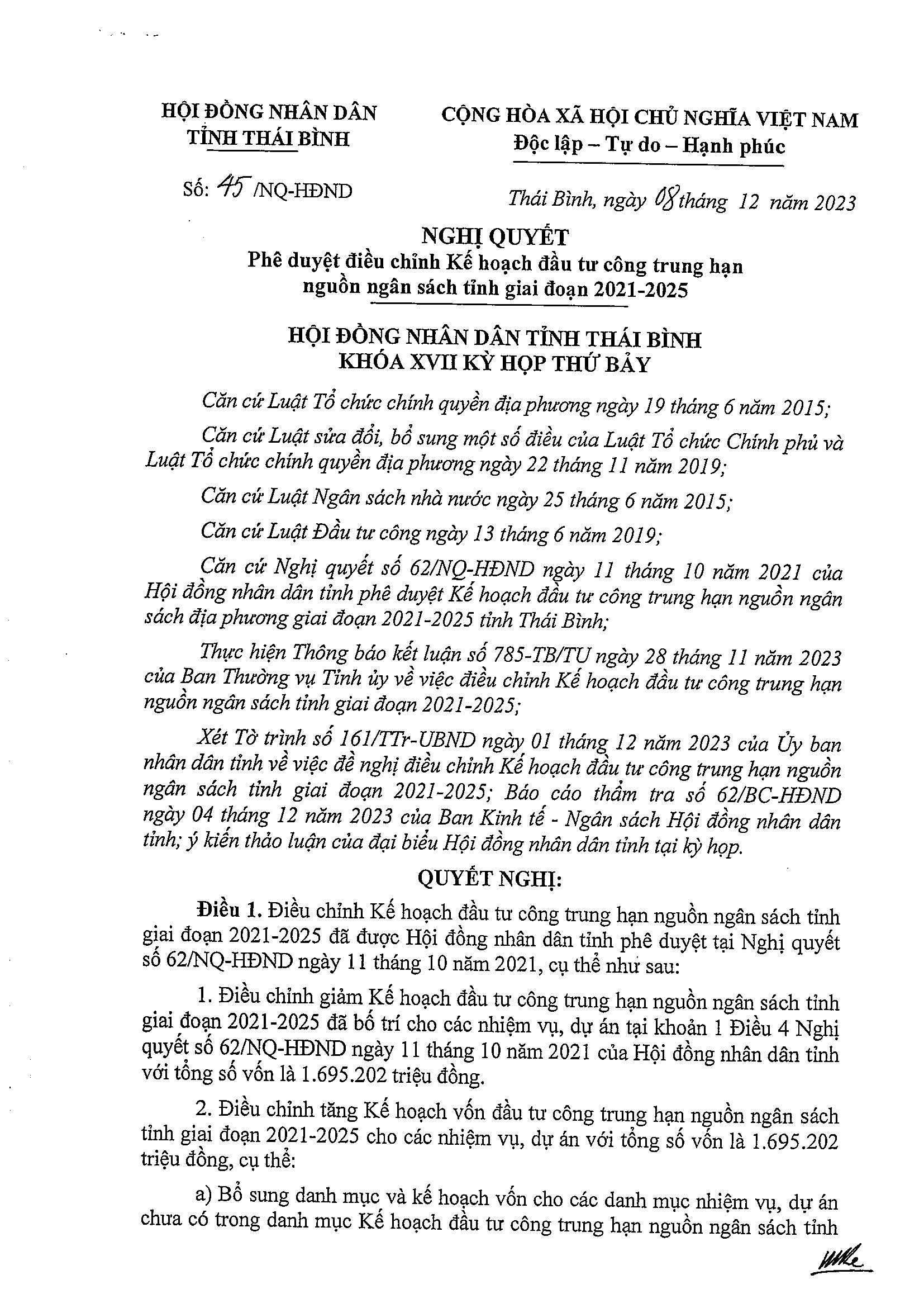 Nghị quyết số 45/NQ-HĐND điều chỉnh kế hoạch đầu tư công trung hạn nguồn ngân sách tỉnh giai đoạn 2021-2025