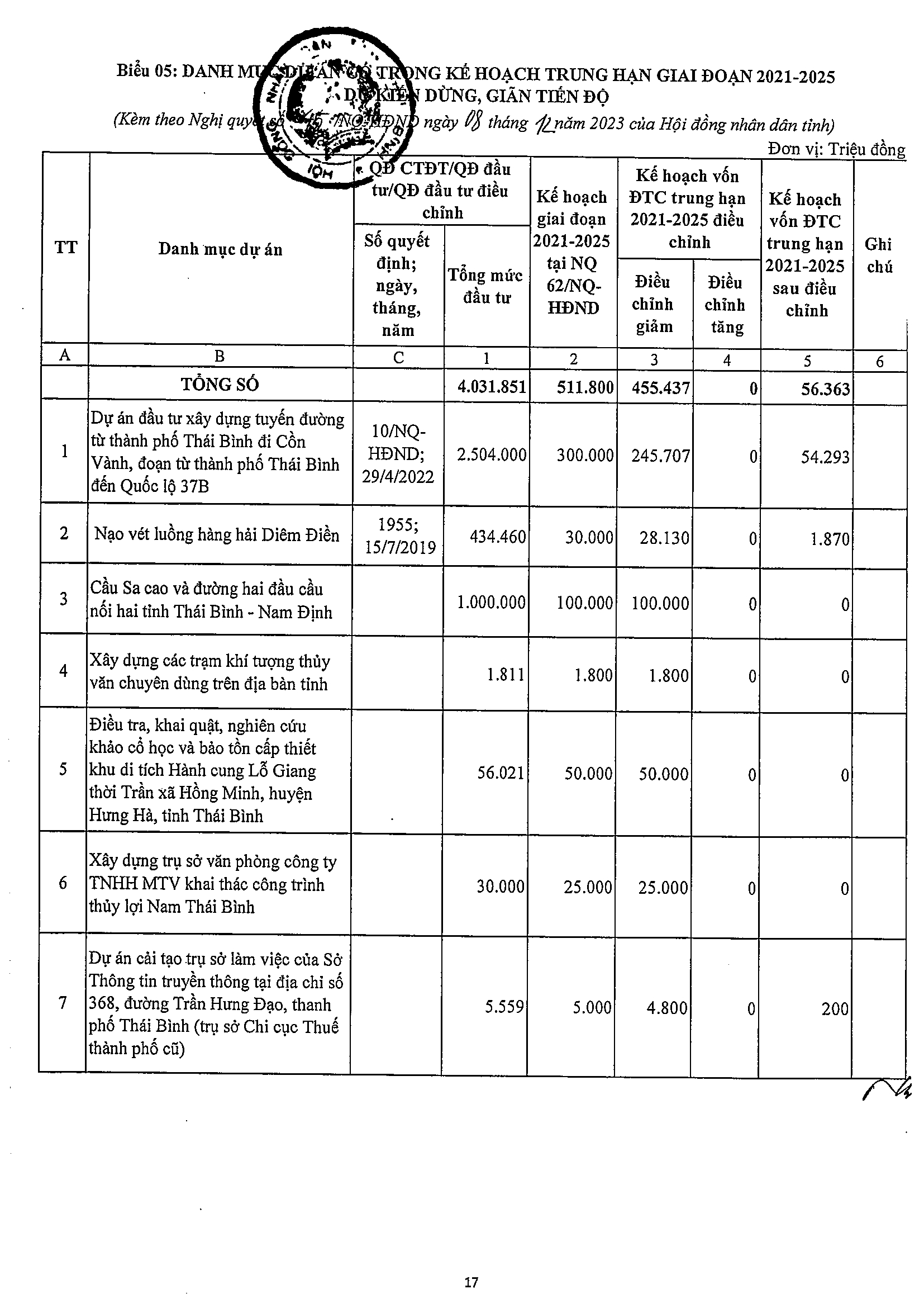 - Khởi công dự án đầu tư xây dựng sân golf Cồn Vành và dự án đầu tư xây dựng khu bến cảng hàng lỏng Ba Lạt