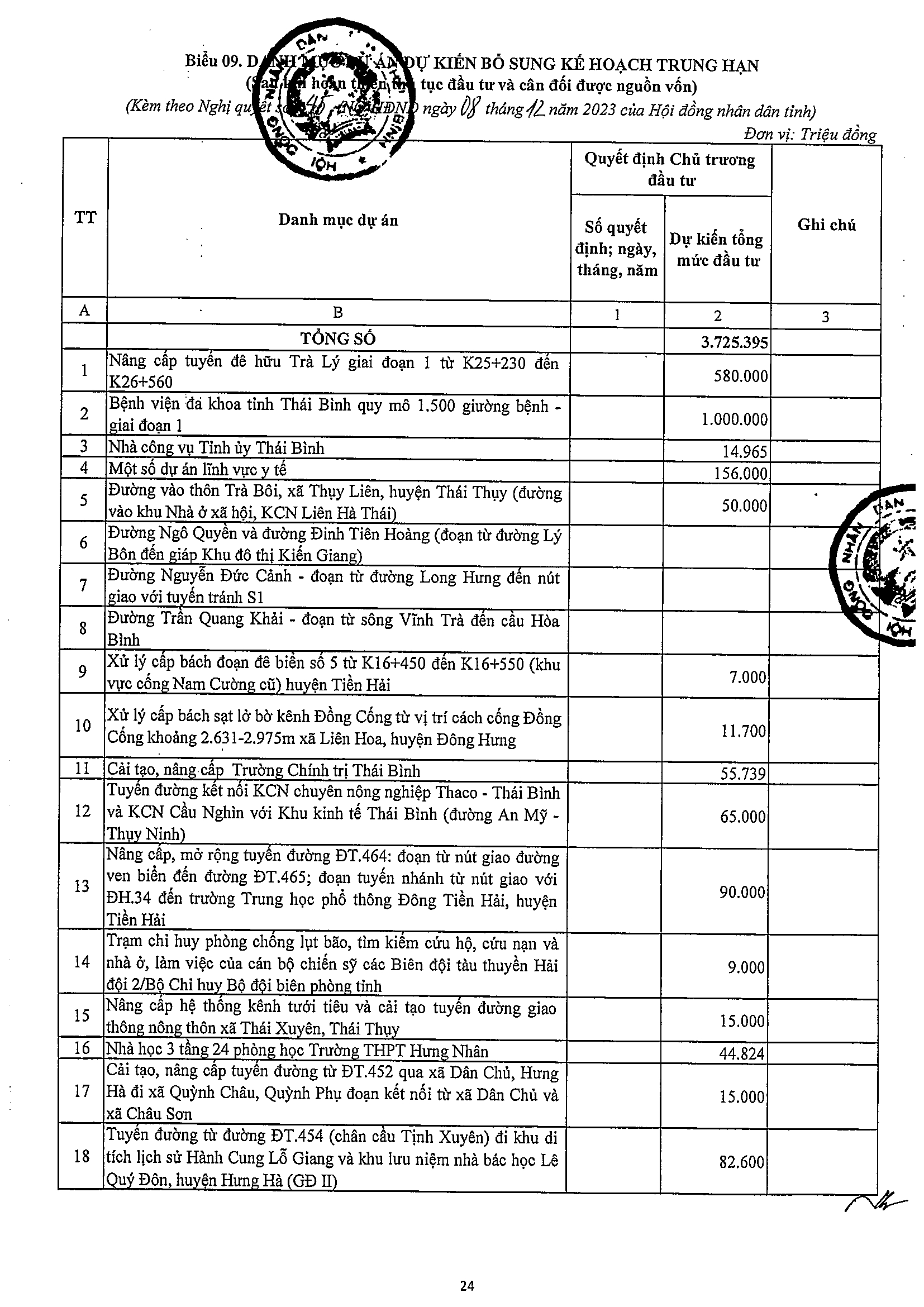 - Công điện khẩn số 03/CĐ-PCTT, hồi 7 giờ 00' ngày 20/7/2024 của Ban Chỉ huy Phòng, chống thiên tai và Tìm kiếm cứu nạn tỉnh Thái Bình 21.07.2024 | 07:47 AM