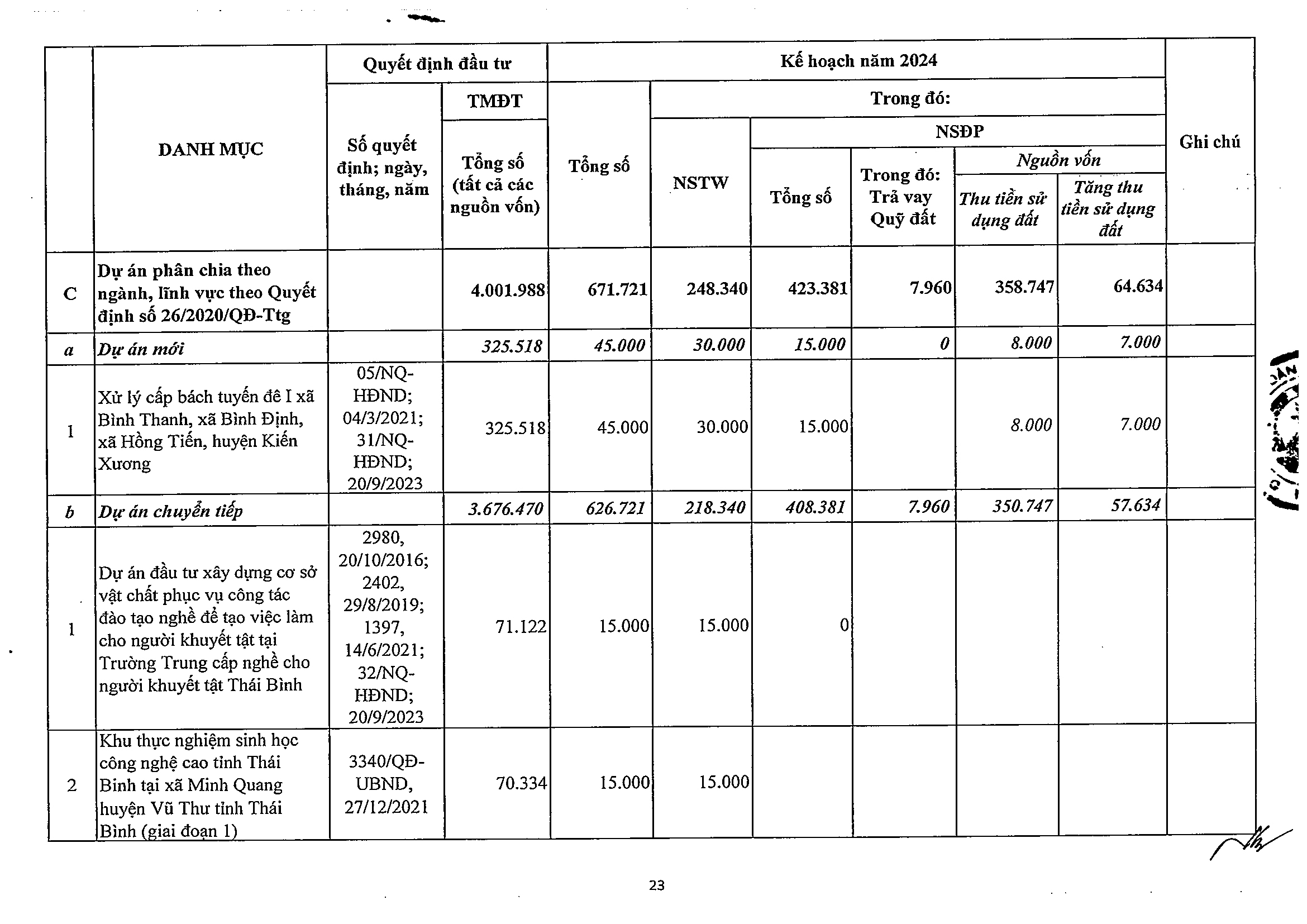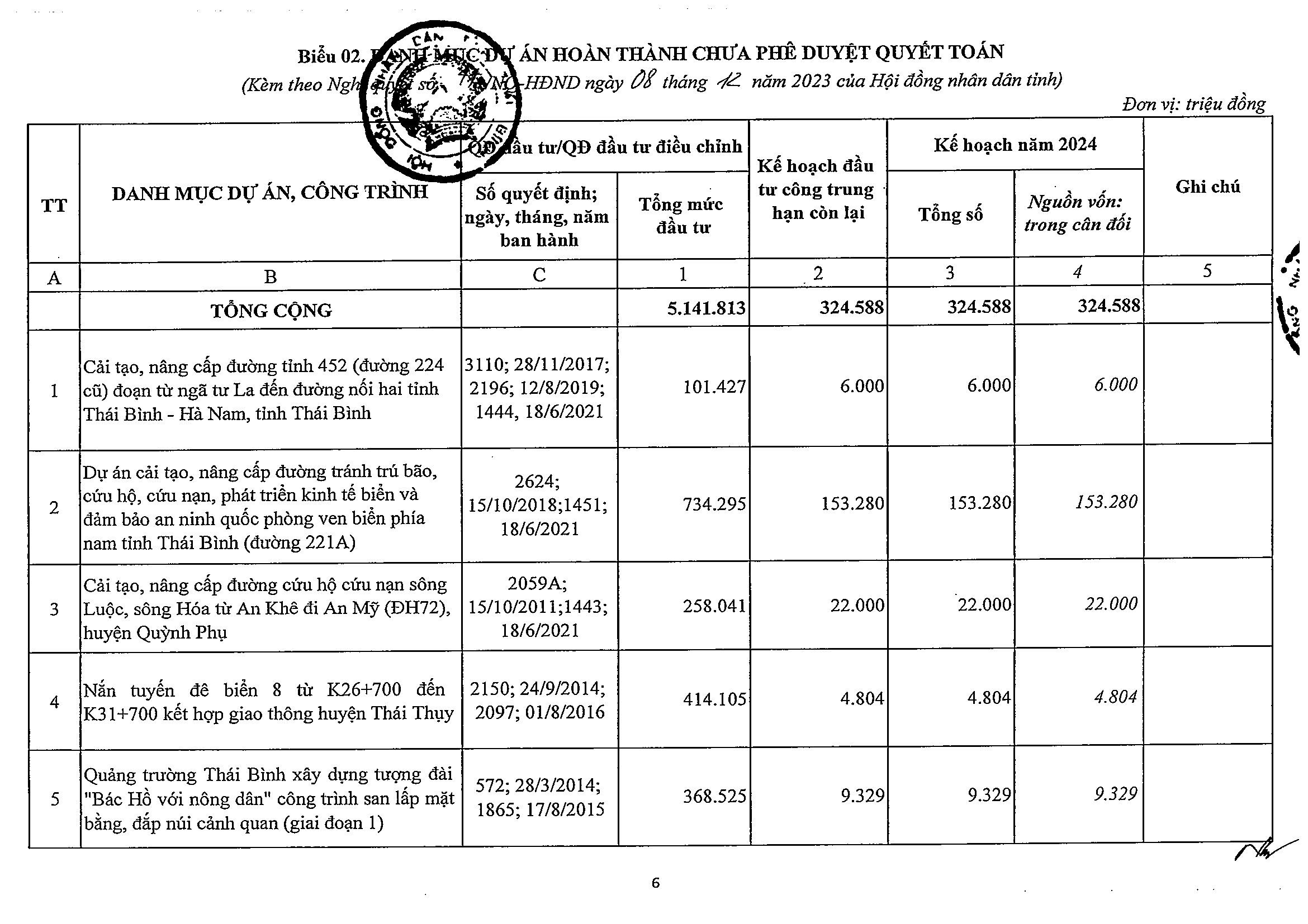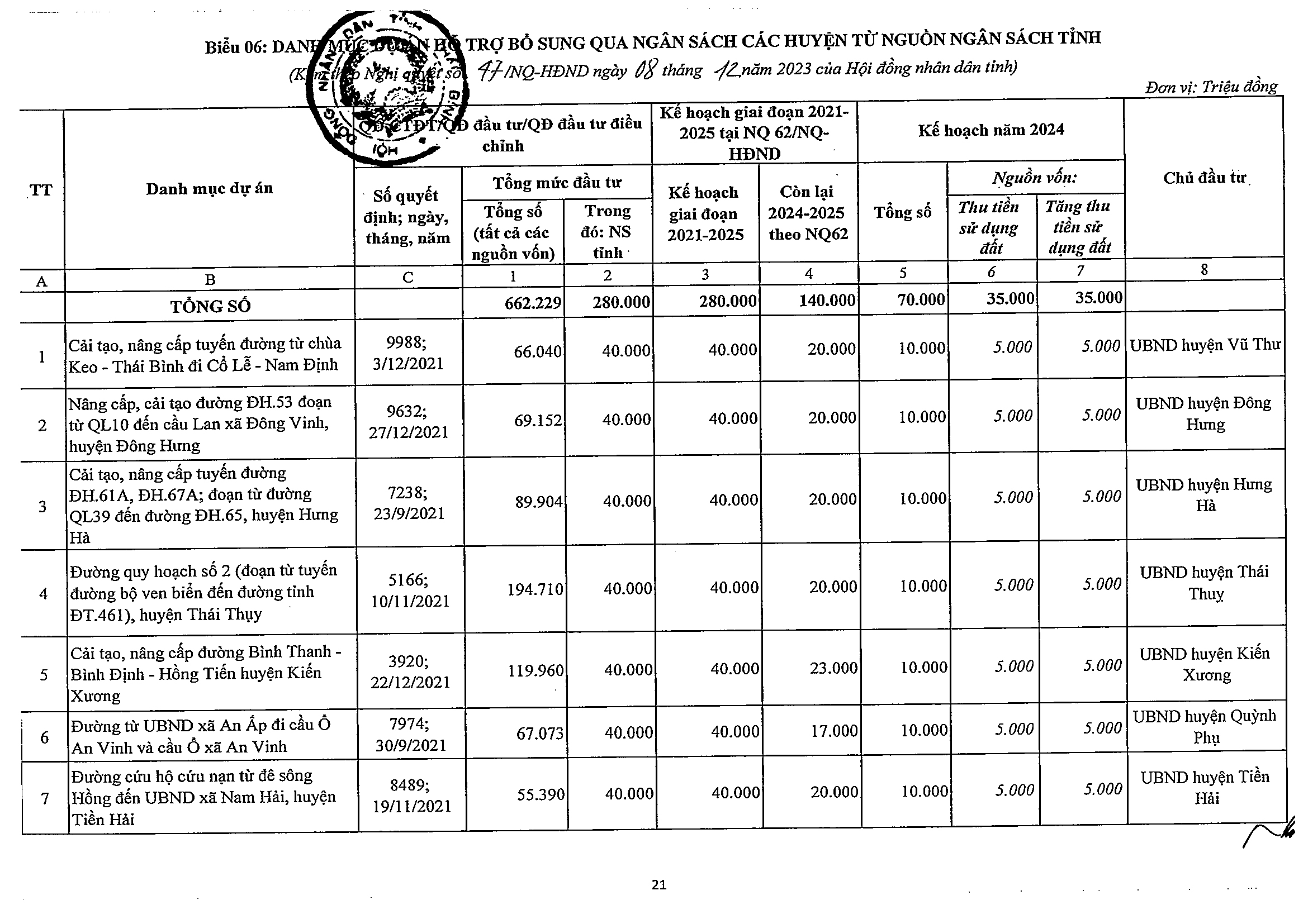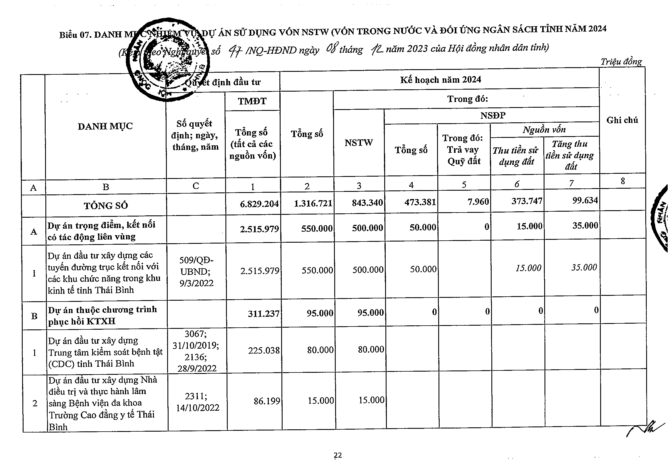 Nghị quyết số 47/NQ-HĐND phê duyệt kế hoạch phân bổ vốn đầu tư công năm 2024 tỉnh Thái Bình