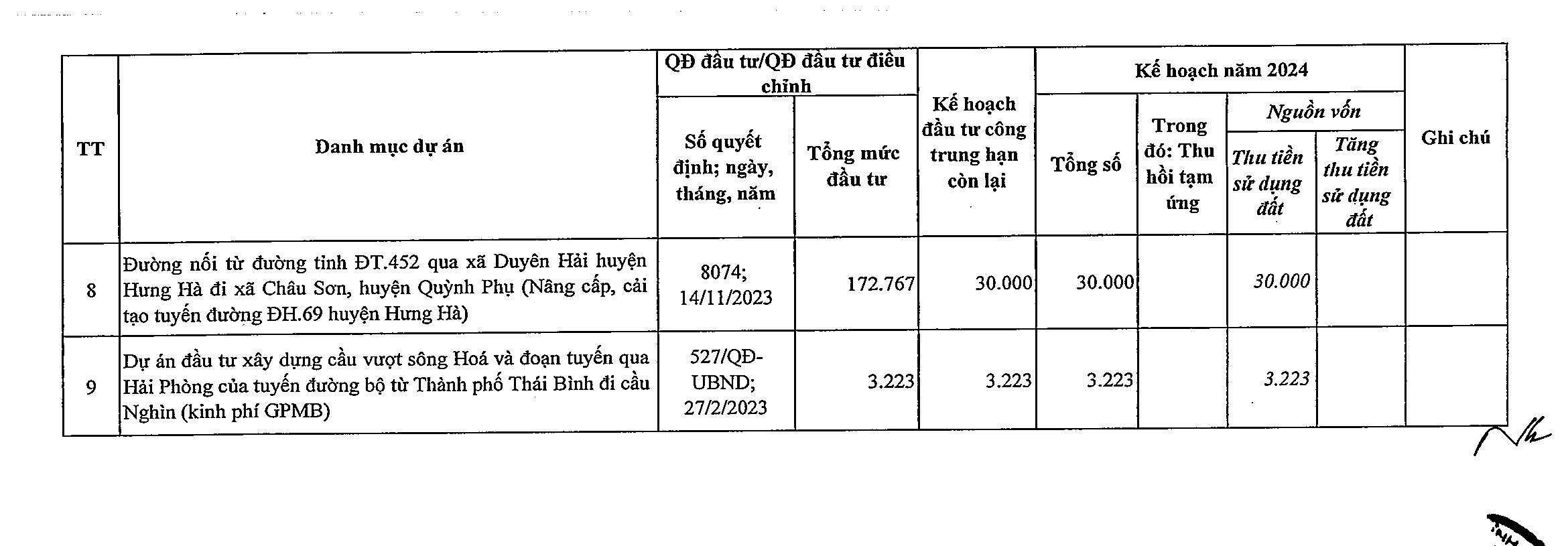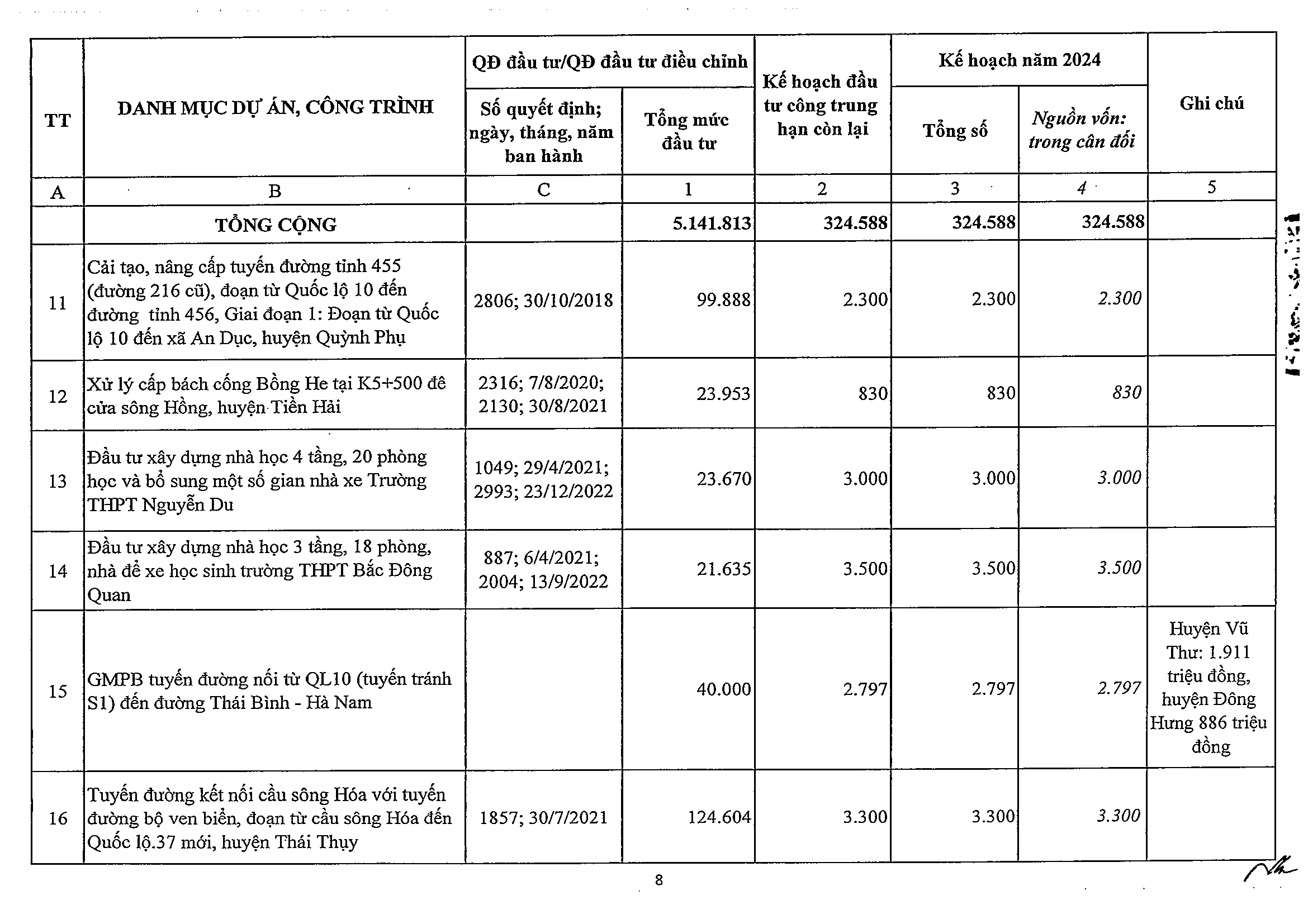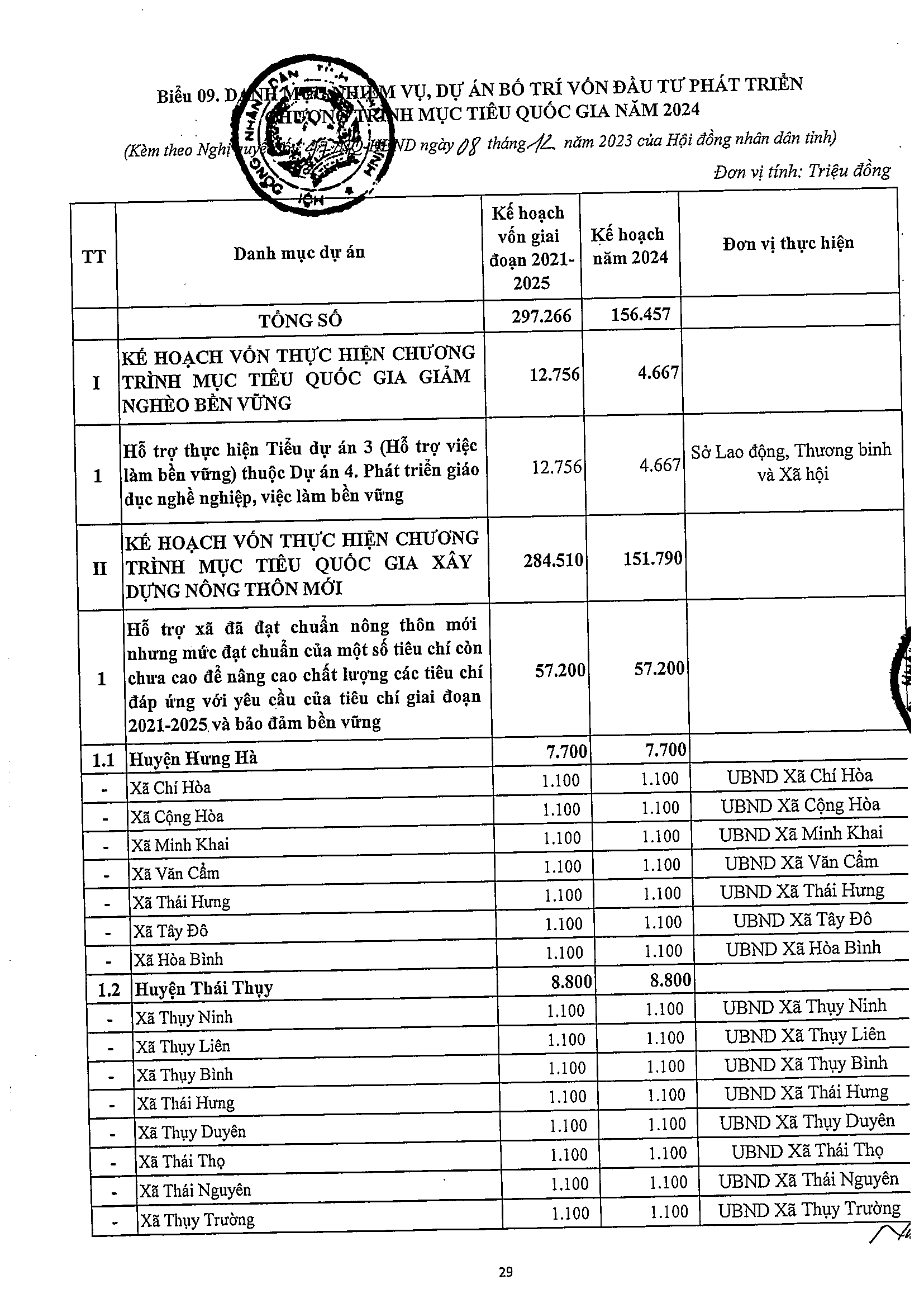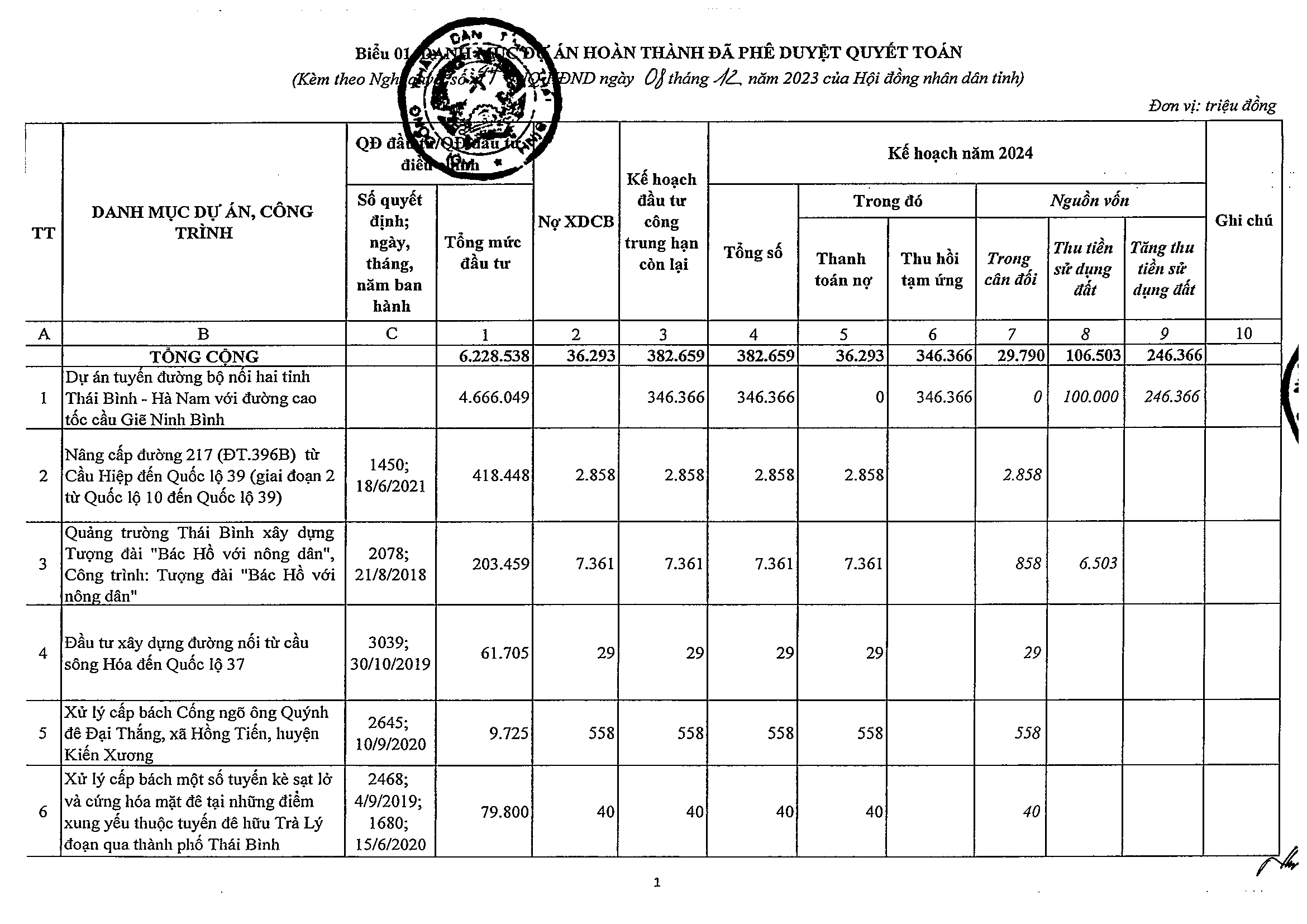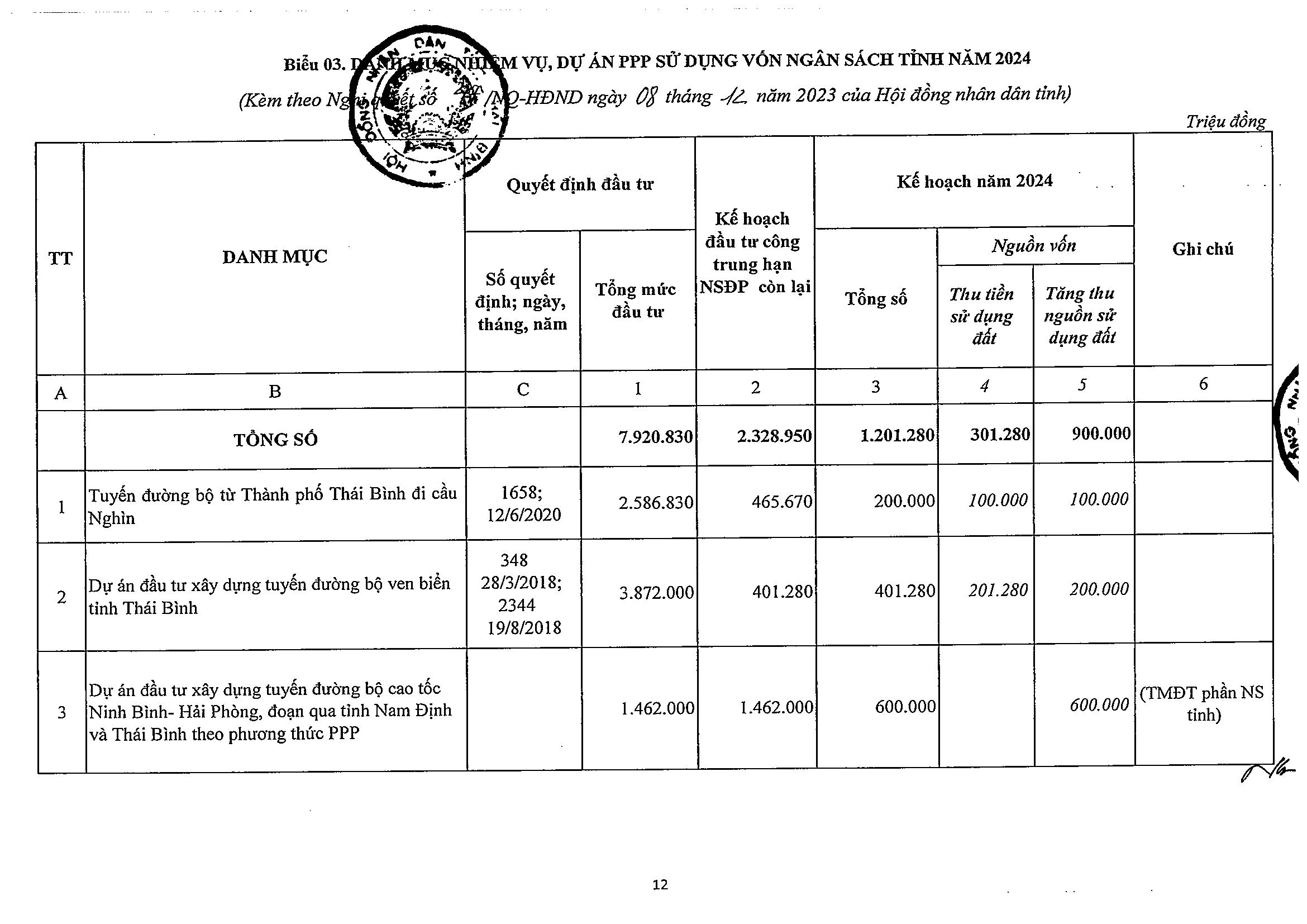 Nghị quyết số 47/NQ-HĐND phê duyệt kế hoạch phân bổ vốn đầu tư công năm 2024 tỉnh Thái Bình
