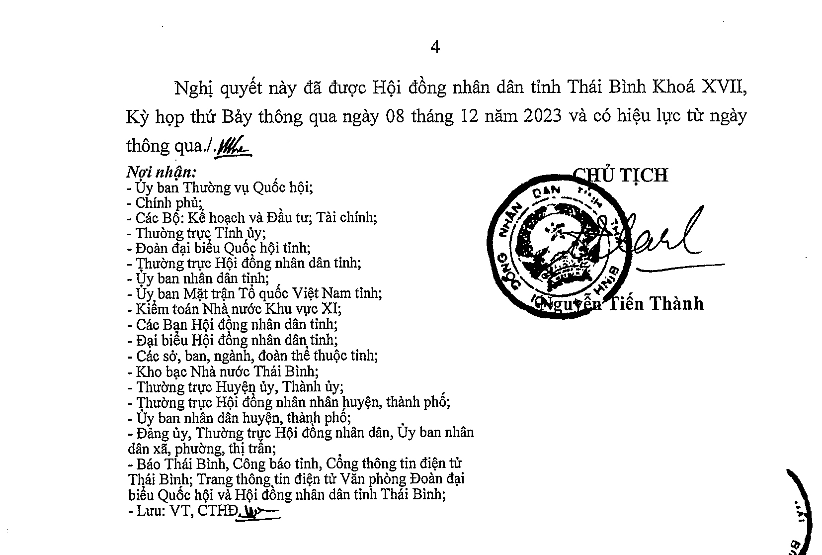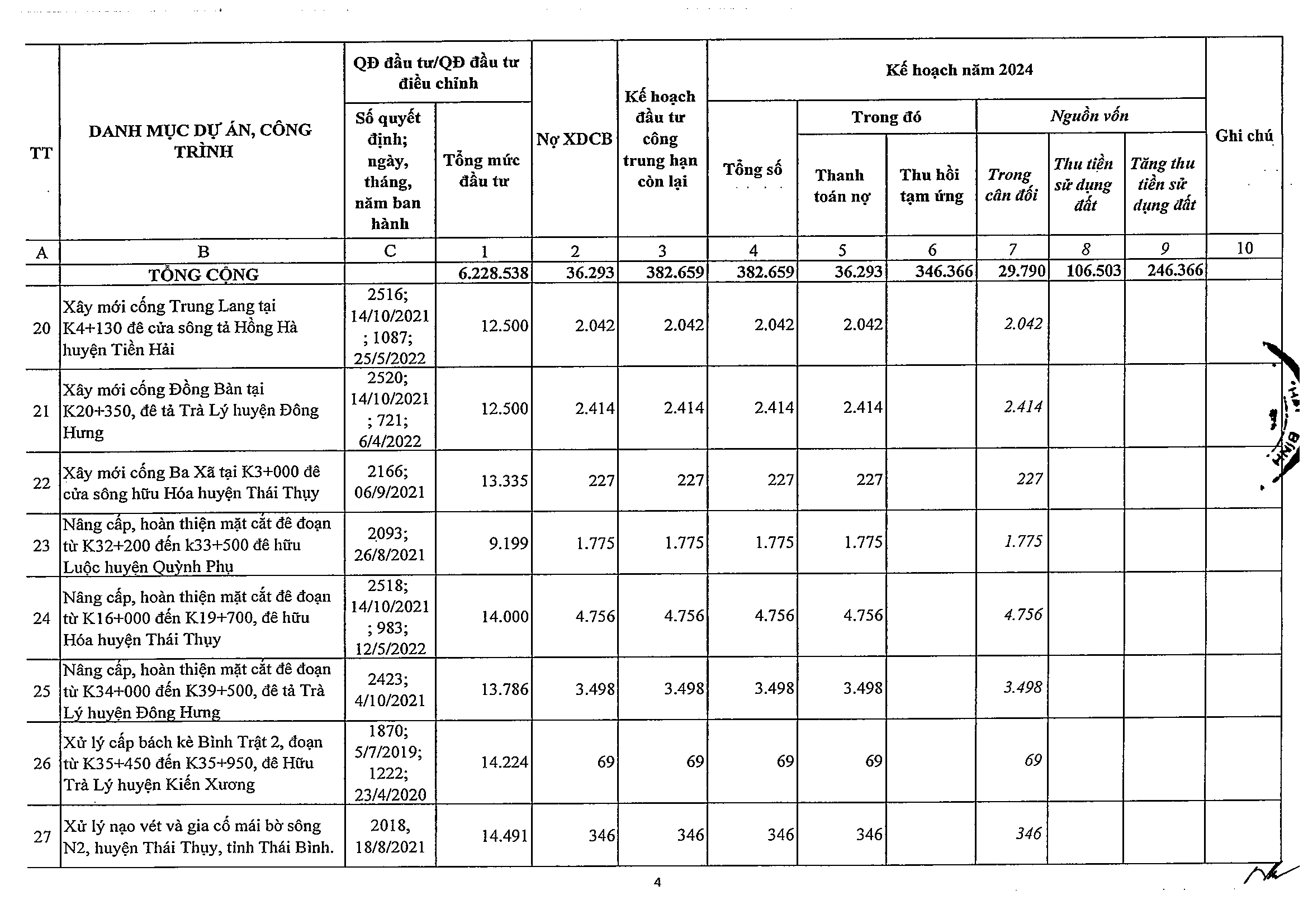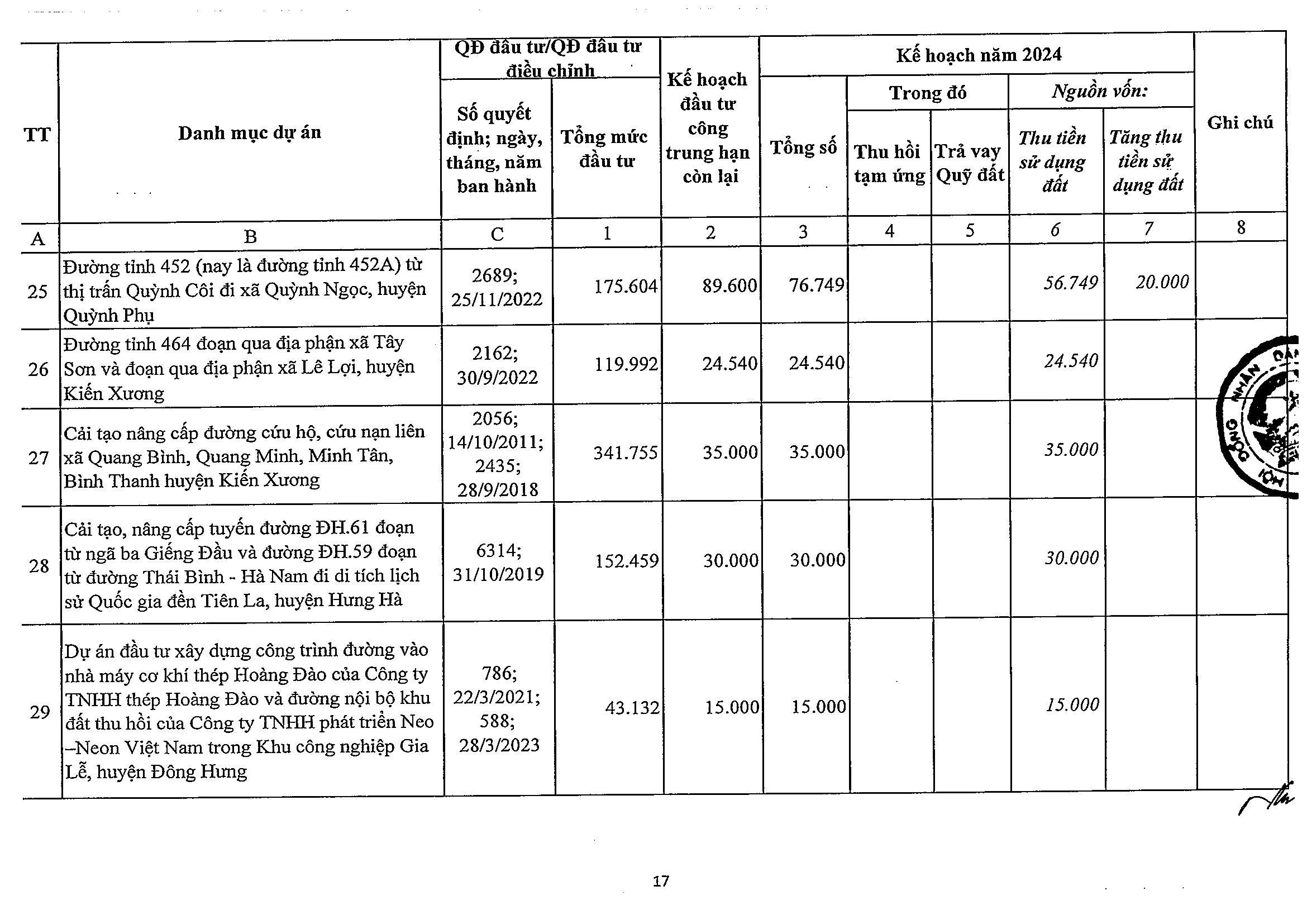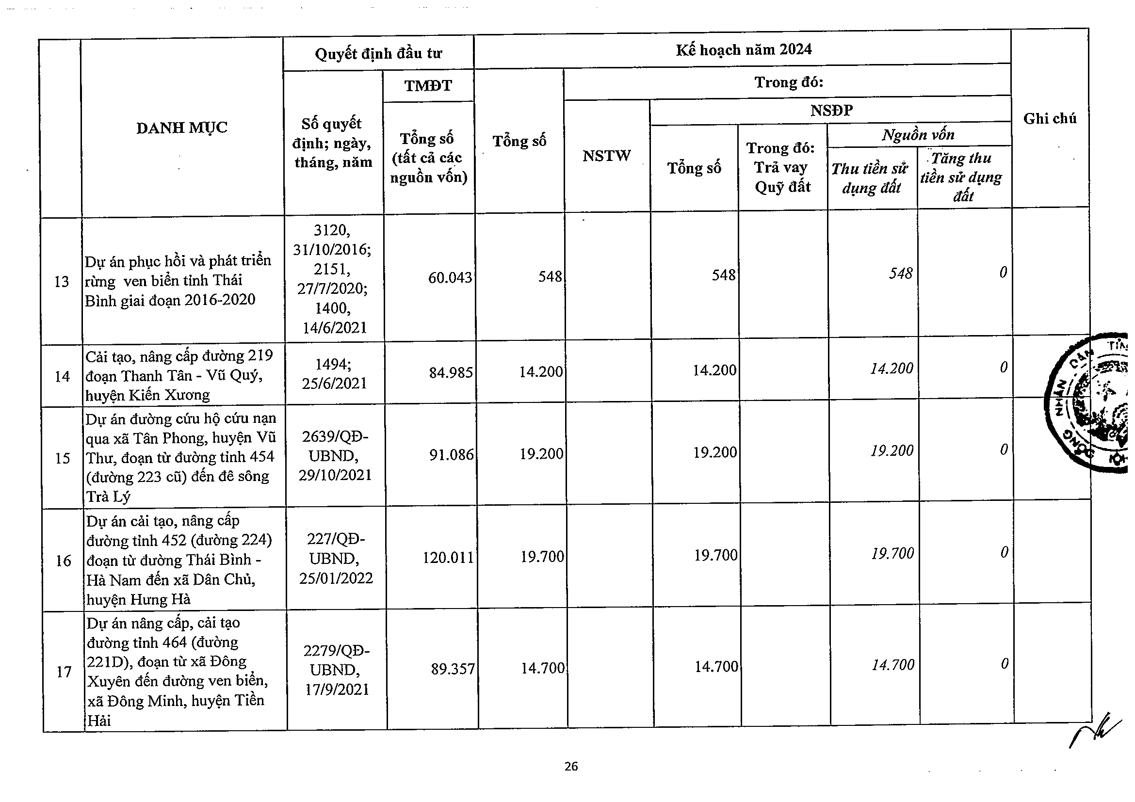 Nghị quyết số 47/NQ-HĐND phê duyệt kế hoạch phân bổ vốn đầu tư công năm 2024 tỉnh Thái Bình