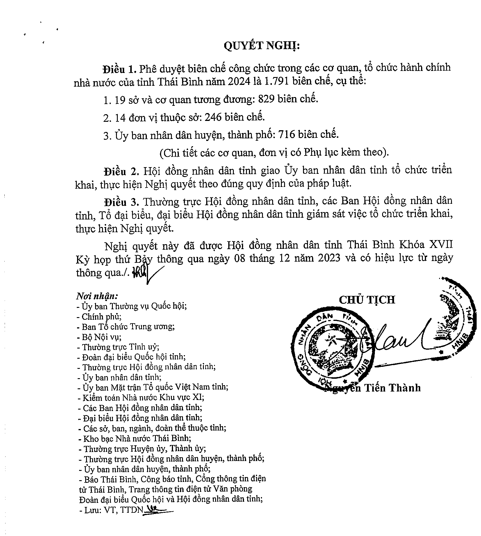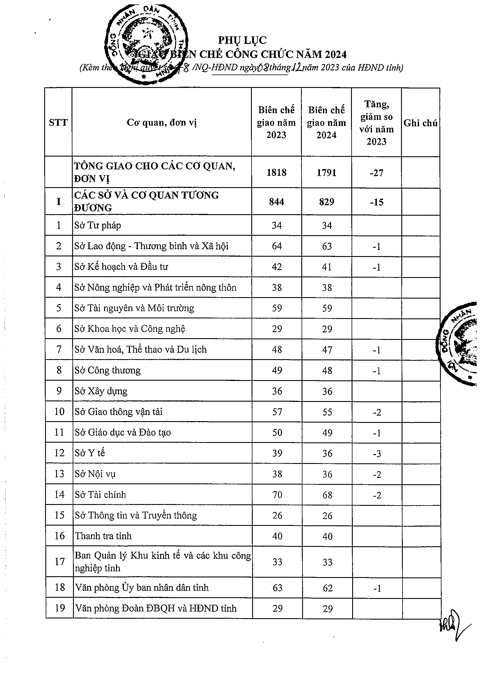 Nghị quyết số 48/NQ-HĐND về việc phê duyệt biên chế công chức trong các cơ quan, tổ chức hành chính nhà nước của tỉnh năm 2024
