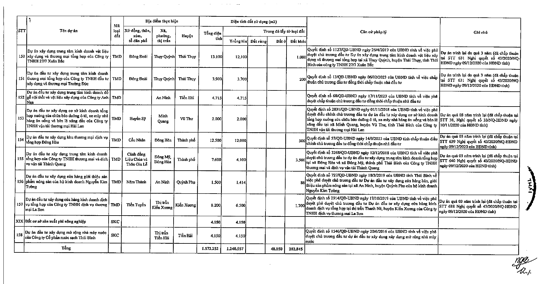 - Khởi công dự án đầu tư xây dựng sân golf Cồn Vành và dự án đầu tư xây dựng khu bến cảng hàng lỏng Ba Lạt