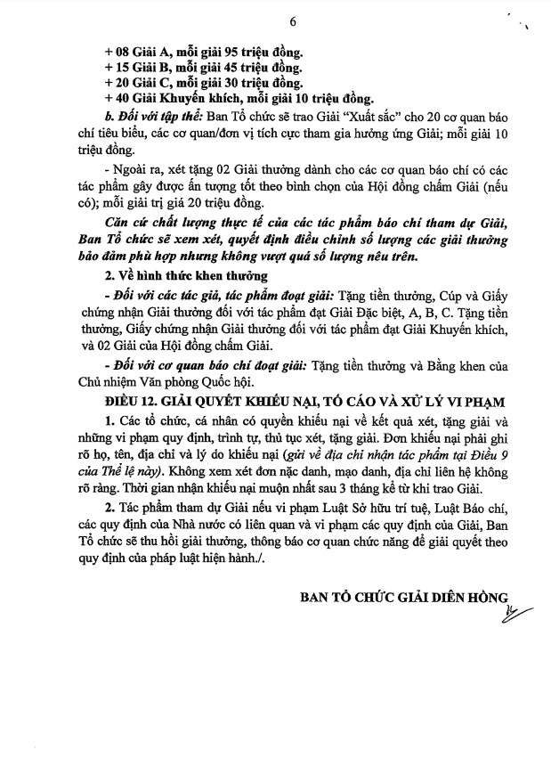 Về việc hưởng ứng, triển khai thực hiện Giải Diên Hồng