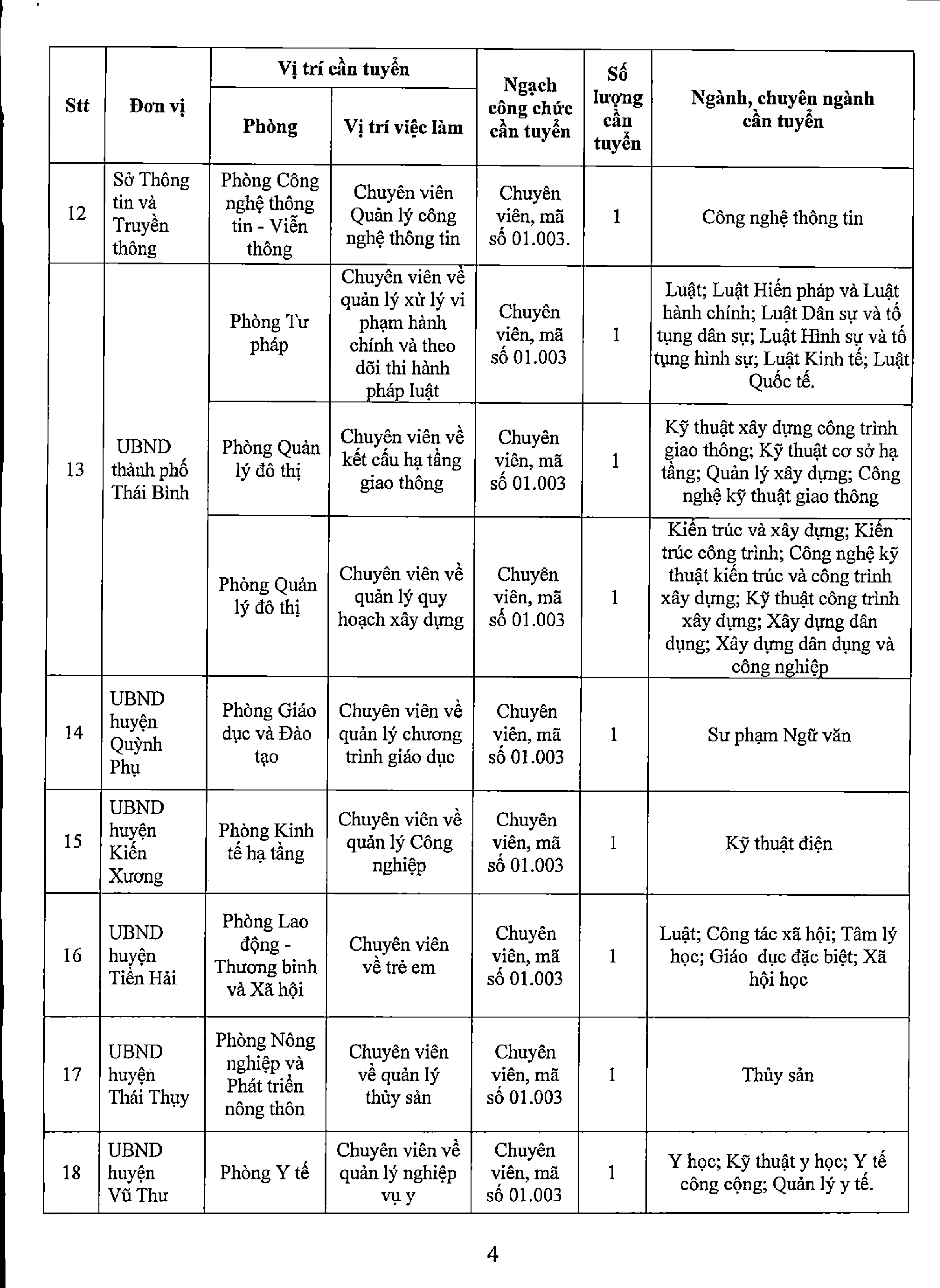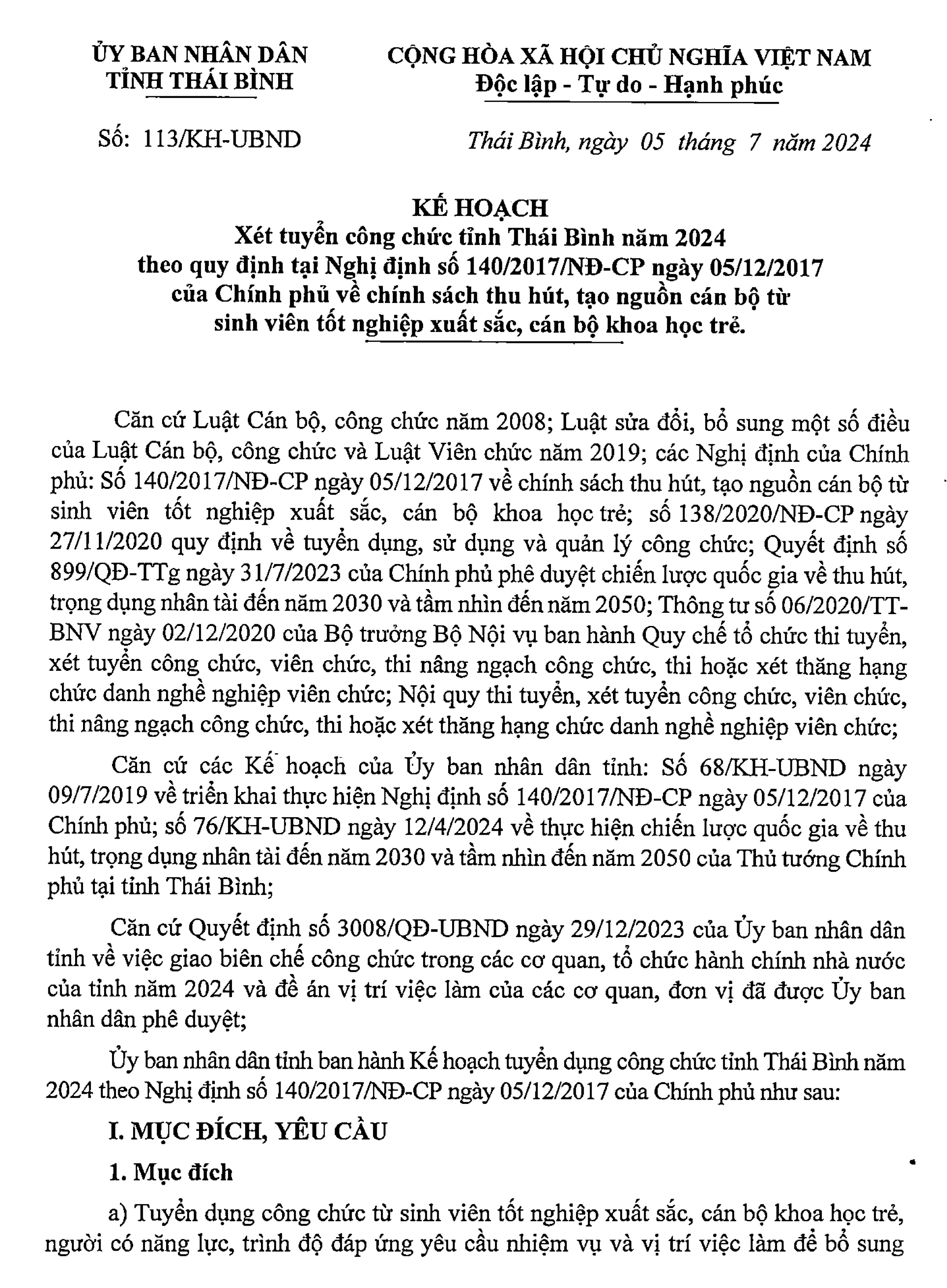 Kế hoạch xét tuyển công chức tỉnh Thái Bình năm 2024