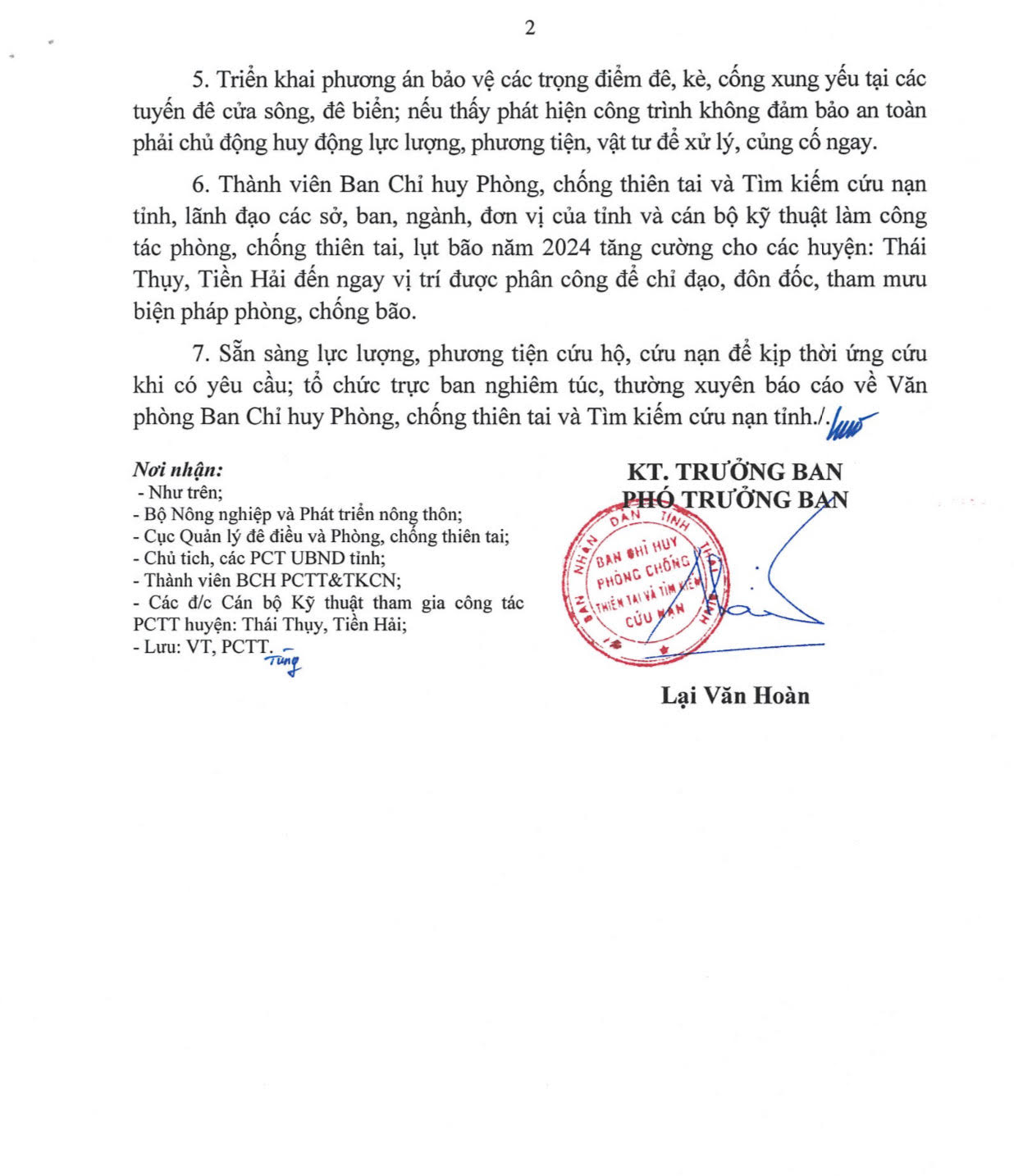 - Công điện khẩn số 10 của Ban chỉ huy PCTT và TKCN tỉnh Thái Bình điện Ban chỉ huy PCTT và TKCN các cấp, các ngành 03.09.2024 | 22:24 PM