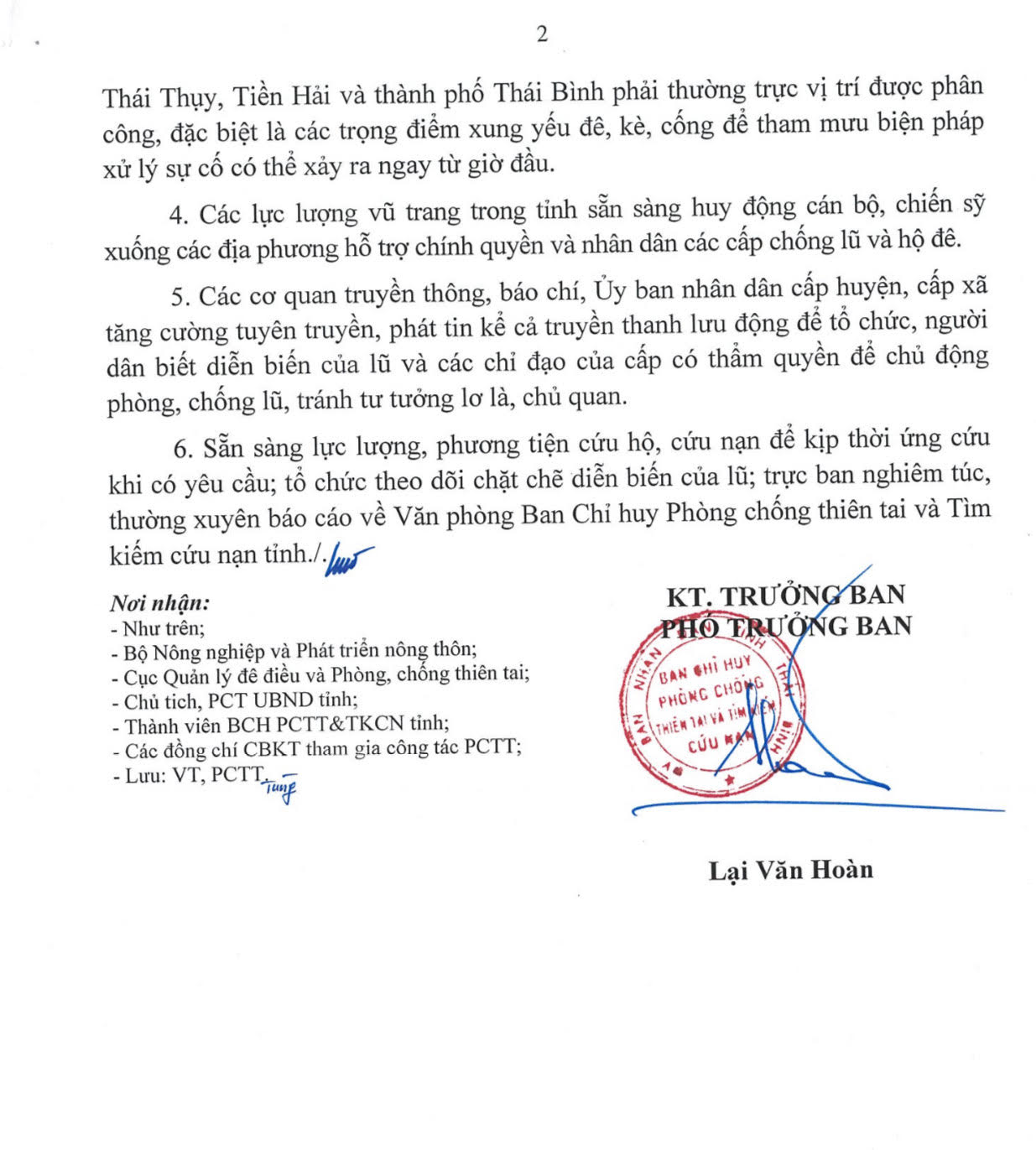 - Công điện khẩn số 10 của Ban chỉ huy PCTT và TKCN tỉnh Thái Bình điện Ban chỉ huy PCTT và TKCN các cấp, các ngành 03.09.2024 | 22:24 PM