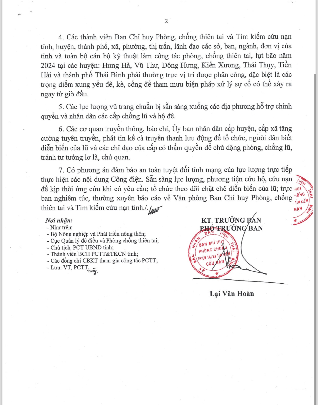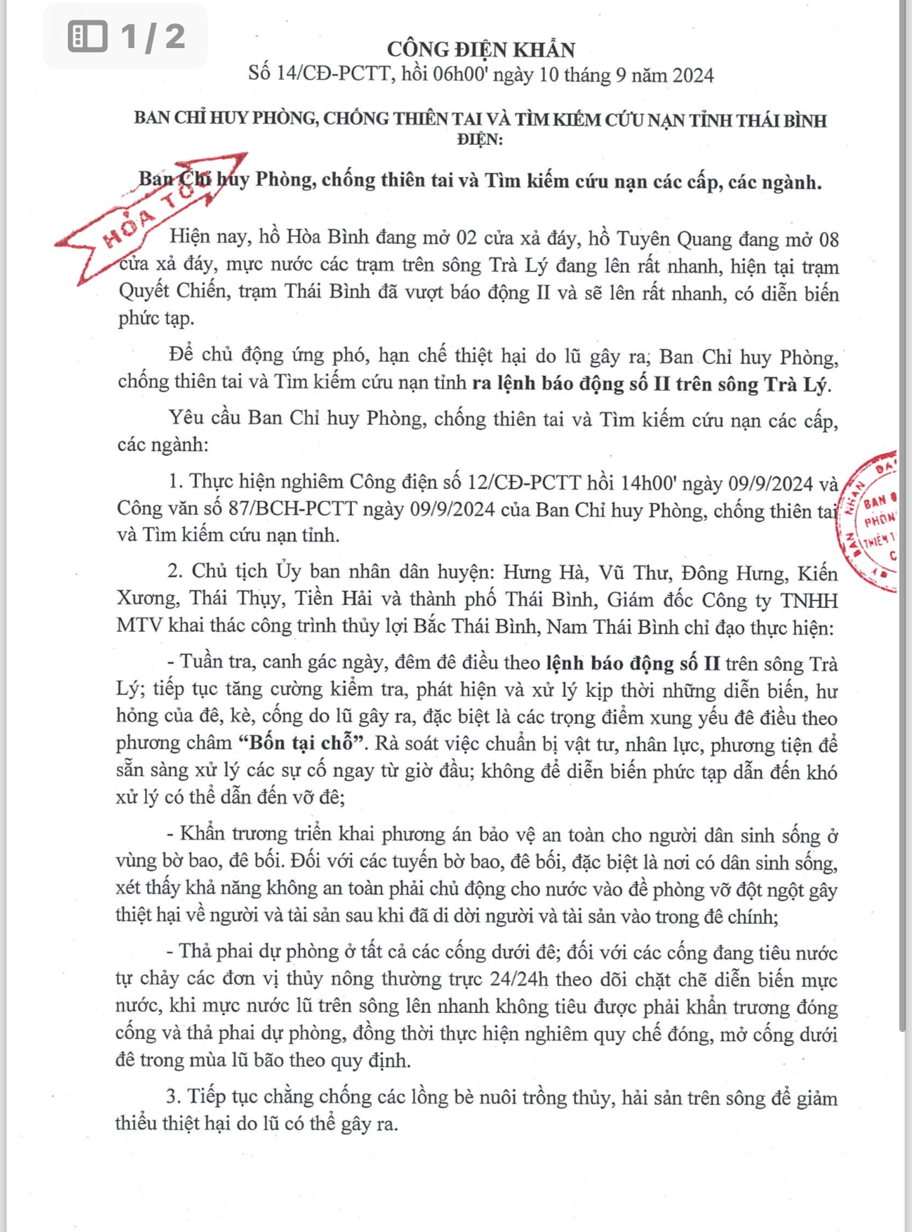 - Công điện khẩn số 10 của Ban chỉ huy PCTT và TKCN tỉnh Thái Bình điện Ban chỉ huy PCTT và TKCN các cấp, các ngành 03.09.2024 | 22:24 PM