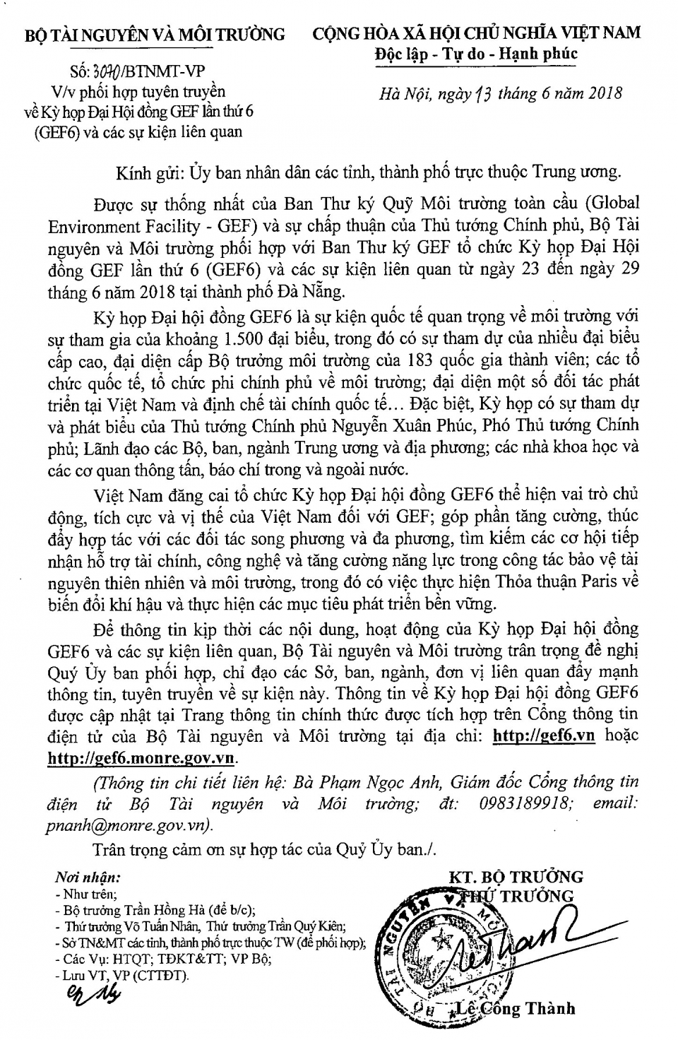 Công văn số 3070/BTNMT-VP của Bộ Tài nguyên và Môi trường: